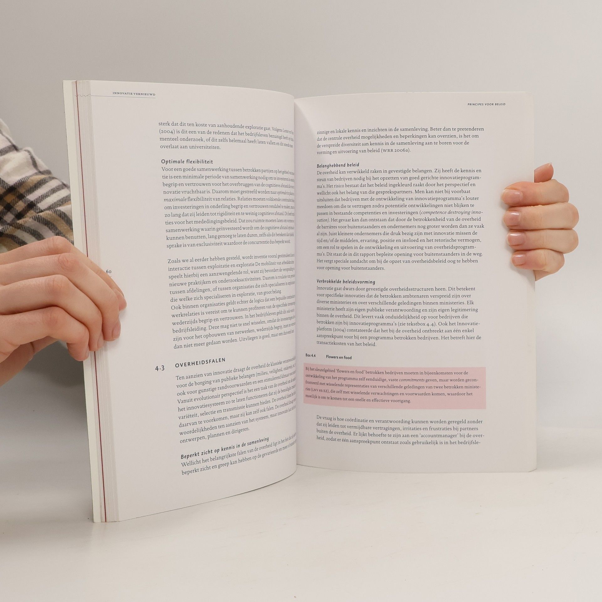 Innovation means more than having the right ideas and knowledge. It is also a matter of organization and skills. Dutch society is in need of a new, open innovation policy with special attention for social innovation. In this report the WRR does recommendations to improve the innovation policy in the Netherlands. The new policy it suggests gives space to surprises, to challenges and crosses borders. It stimulates cooperation between companies and institutions. It shows new ways of organizing that stimulates and gives room to the real innovators.