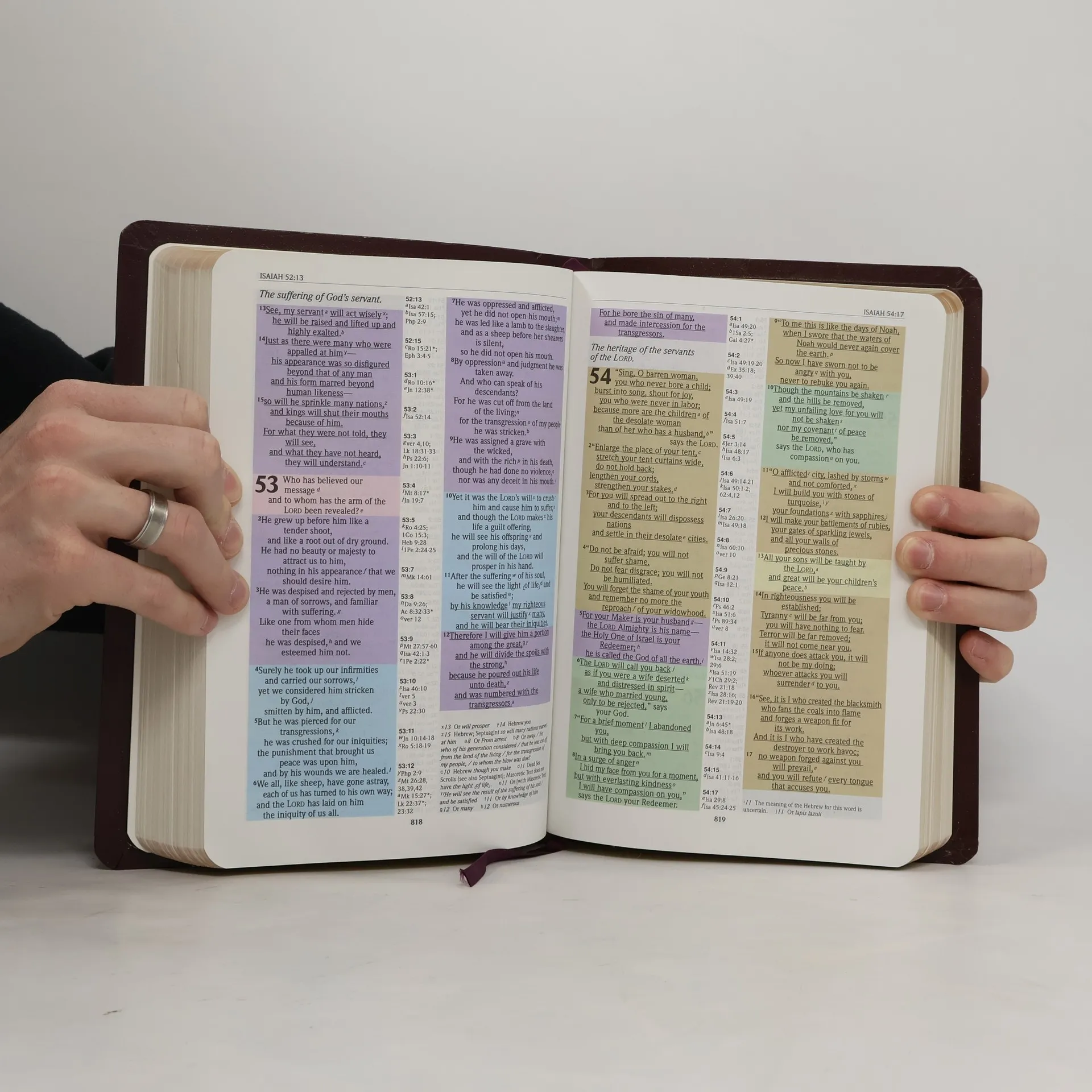 The NIV Rainbow Study Bible combines easy-to-use features with the number one Bible translation, the New International Version. Understand the Bible as never before Orange verses are about "Faith" -- Green verses are about "Love, " etc. Twelve colors for twelve themes. The Bold Line "RM" System distinguishes all spoken Words of the Trinity with bold underlining throughout the entire Bible Center column cross-references, footnotes, 75 in-text maps and many other helps.The Rainbow Study Bible is recommended by many of the country's most respected inspirational teachers and ministers of God's Word, including E.V. Hill, Bill R. Bright, Robert Schuller, Dr. D. James Kennedy, Cliff Barrows, the late Dale Evans Rogers and many others.
