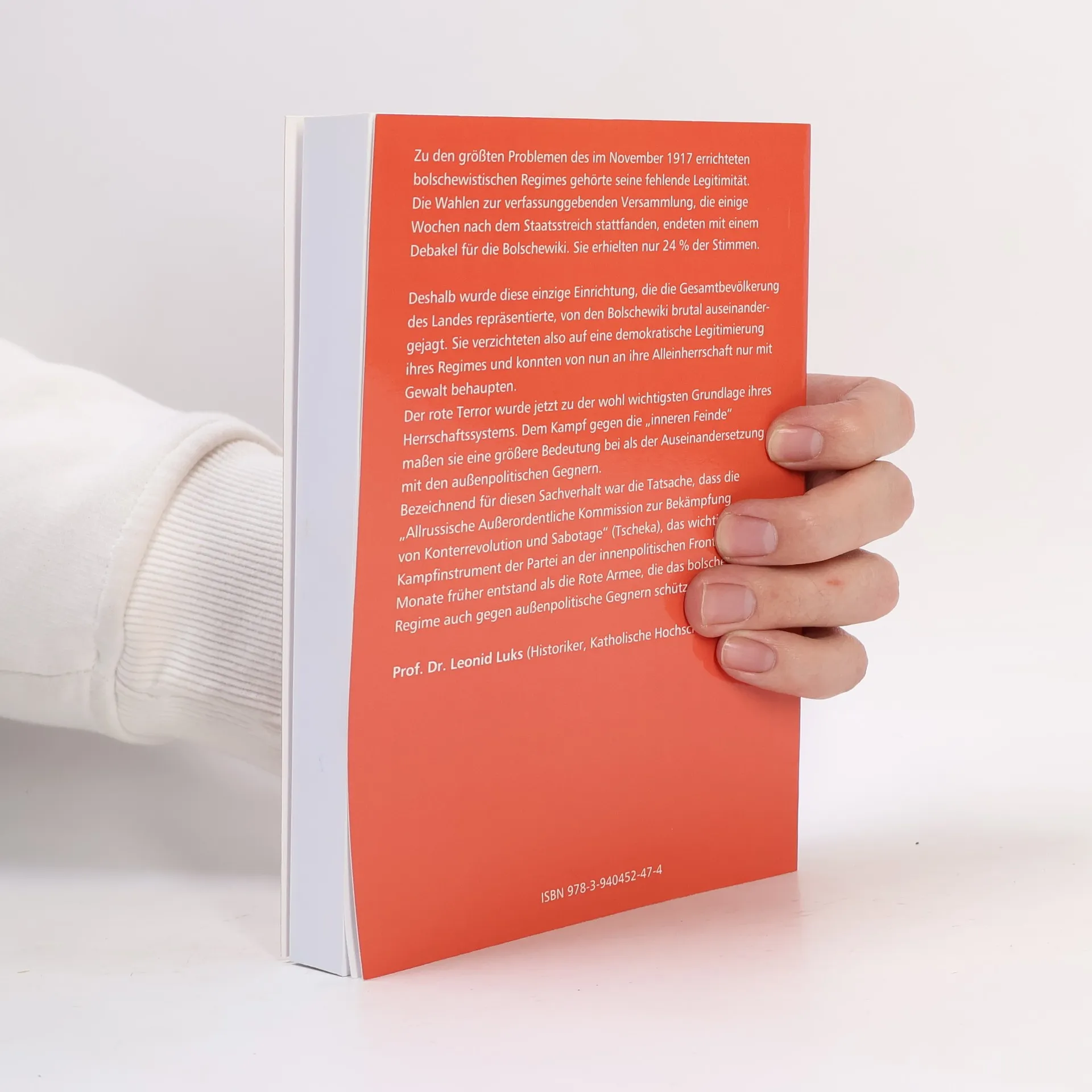 Zu den größten Problemen des im November 1917 errichteten bolschewistischen Regimes gehörte seine fehlende Legitimität. Die Wahlen zur verfassunggebenden Versammlung, die einige Wochen nach dem Staatsstreich stattfanden, endeten mit einem Debakel für die Bolschewiki. Sie erhielten nur 24% der Stimmen. Deshalb wurde diese einzige Einrichtung, die die Gesamtbevölkerung des Landes repräsentierte, von den Bolschewiki brutal auseinandergejagt, Sie verzichteten also auf eine demokratische Legitimierung ihres Regimes und konnten von nun an ihre Alleinherrschaft nur mit Gewalt behaupten. Als Historiker und regimekritischer Politiker des Zarenreiches gründete Sergej Melgunow 1907 die gemäßigte „Sozialistische Volkspartei“, die in den ideologisch aufgerauten Zeiten zu moderat und damit erfolglos blieb. Seine Monographie ist eine Anklage gegen die Brutalität der bolschewistischen Herrschaft nach der Oktoberrevolution, die zwischen Systematik und Willkür mithilfe unkontrollierbarer Gruppierungen wie der „Tscheka“ gegen „innere Feinde“ Schrecken verbreiteten. So sind Hunderttausende vermeintlich politische Oppositionelle ermordet worden, um das Machtmonopol der Bolschewiki durchzusetzen. Der selbst vom Tod bedrohte Melgunow flüchtete ins Exil und veröffentlichte erst auf russisch (1923), dann auf deutsch (1924) seine Beobachtungen und Erlebnisse, in der er der blutigen Spur, die die Diktatur zur Etablierung ihrer Macht hinterließ, nachgeht. Als ein überzeugter Sozialist, war er imstande die vermeintlich volksnahen Bestrebungen und Versprechungen der neuen Herrscher als hohle, ideologische Phrasen zu entlarven. Anhand ihrer Gräueltaten beweist Melgunow die wirklichen Absichten der illegitimen Machthaber: Ihre Etablierung durch Verbreitung von Angst und Terror.