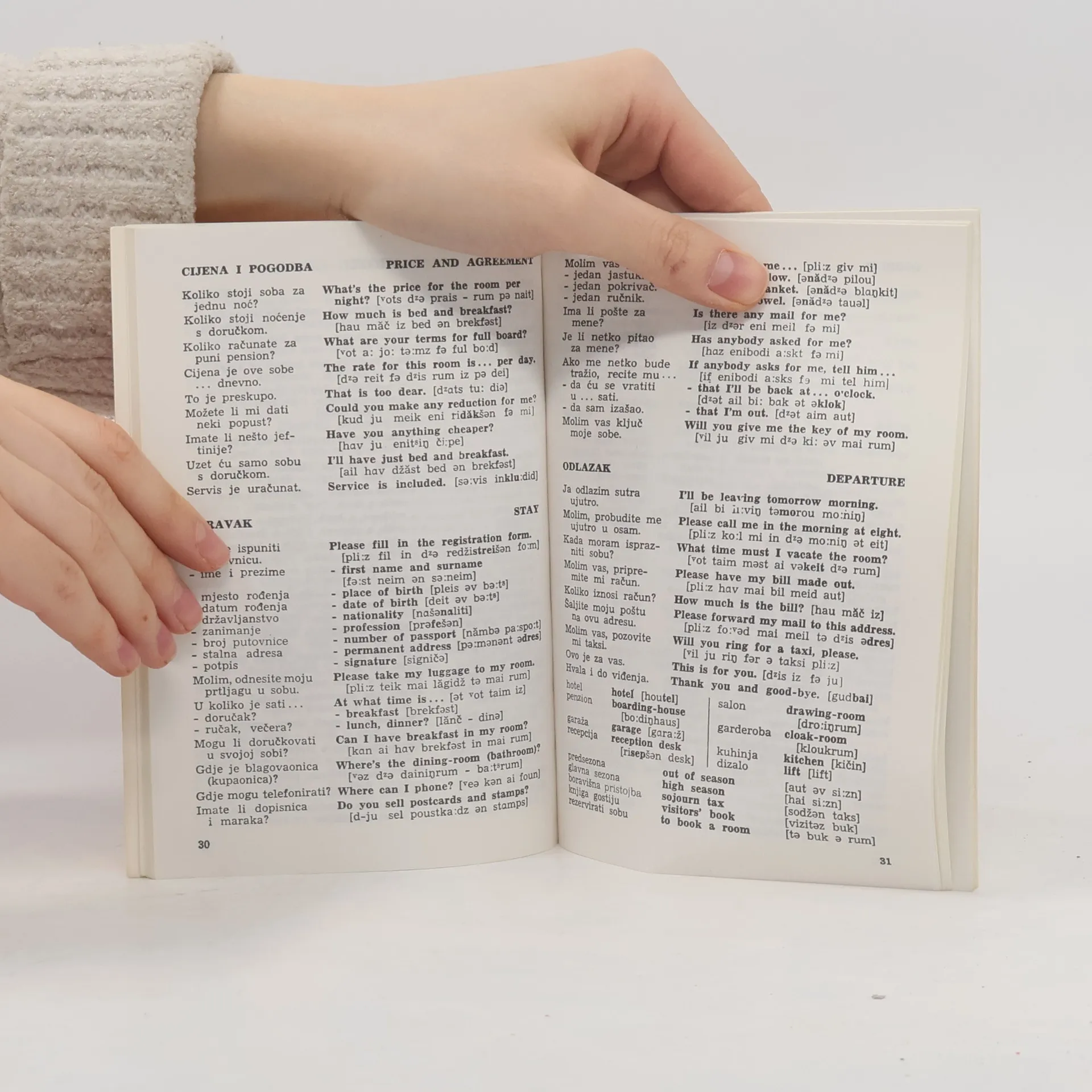 A pocket sized Croatian-English phrasebook with over 4000 entries arranged in thematic sections.