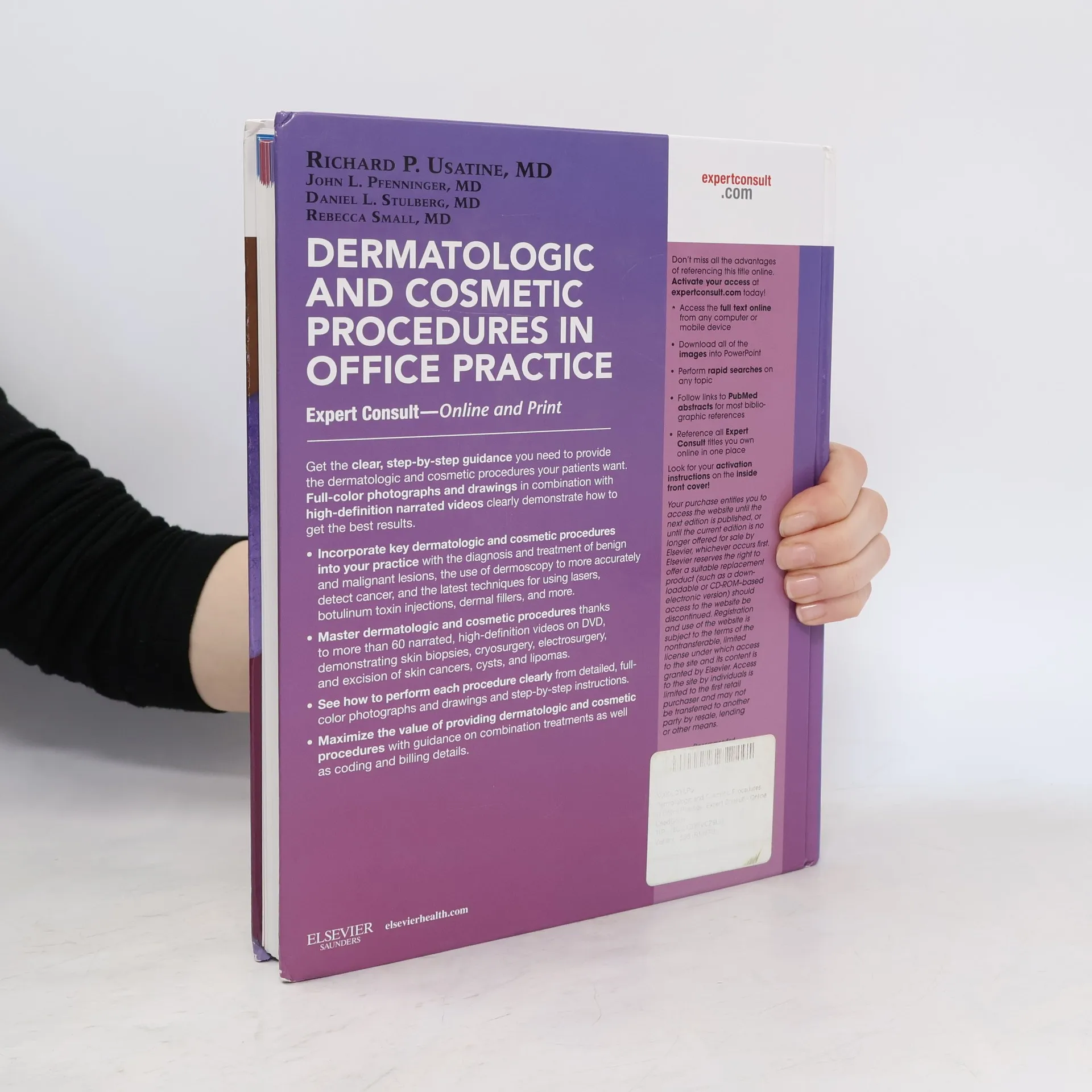 Dermatologic and Cosmetic Procedures in Office Practice, by Drs. Richard Usatine, John Pfenninger, Daniel Stulberg, and Rebecca Small, provides you with the clear, step-by-step guidance you need to provide these options to your patients. Full-color photographs and drawings in combination with high-definition narrated videos clearly demonstrate key procedures, including skin biopsies, cryosurgery, electrosurgery, botulinum toxin injections, and more. Access to the full text, and a downloadable image bank online at <a target="_blank" rel="noopener nofollow" href="http://www.expertconsult.com">www.expertconsult.com</a> make this an ideal reference for performing key dermatologic and cosmetic procedures in your practice. Access the fully searchable contents and downloadable image bank online at <a target="_blank" rel="noopener nofollow" href="http://www.expertconsult.com">www.expertconsult.com</a>. Incorporate key dermatologic and cosmetic procedures into your practice with coverage of using dermoscopy to more accurately detect skin cancer, the latest information on lasers, botulinum toxin injections and dermal fillers, the diagnosis and treatment of benign and malignant lesions, and more. Master dermatologic and cosmetic procedures thanks to more than 40 narrated, high-definition videos, on DVD, demonstrating skin biopsies, cryosurgery, electrosurgery, and excision of skin cancers, cysts, and lipomas. See how to perform each procedure clearly from detailed, full-color photographs and drawings and step-by-step instructions. Maximize the value of providing dermatologic and cosmetic procedures with guidance on combination treatments as well as coding and billing details. Enhance your practice with step-by-step guidance to perform virtually any skin procedure in the office setting