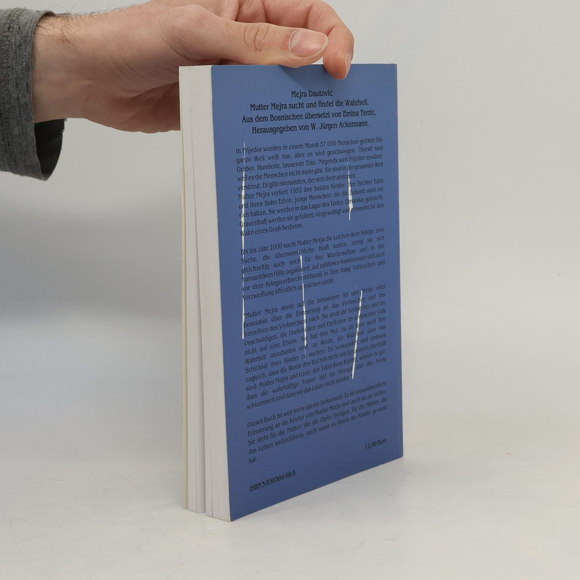 Dank des außergewöhnlichen Engagements von Herr W. Jürgen Ackermann, dem Leiter des Arbeitskreis ASYL in Remscheid, liegt dieses Buch von Mejra Dautovic, bekannt als ‚Mutter Mejra’, nun in deutscher Sprache vor. 1992 verliert sie ihre beiden Kinder, Edna und Edvin, die im Todeslager Omarska gefoltert und ermordet werden. Bis ins Jahr 2000 sucht sie verzweifelt nach ihren Leichnamen, während sie sich gleichzeitig für den Wiederaufbau und humanitäre Hilfe einsetzt. Auf zahlreichen Konferenzen und vor dem Kriegsverbrechertribunal in Den Haag macht sie die Verbrechen öffentlich. Mutter Mejra reflektiert auf besondere Weise über Erinnerung und Verzeihen, ohne die Verbrecher und Unschuldigen gleichzustellen. Sie bietet ihre Wahrheit an und sucht nach dem Schicksal ihrer Kinder. Überraschend sind ihre Worte nicht von übermäßigen Emotionen geprägt; sie und der Vater ihrer Kinder wissen, dass wahre Trauer tief im Herzen verborgen bleibt. Dieses Buch ist mehr als ein Dokument; es ist eine unauslöschliche Erinnerung an die Kinder und an alle Mütter, die trotz des Verlustes weiterleben. Es ist wichtig, über das Leben und den Kampf von Mutter Mejra zu berichten, denn nur Menschen wie sie können einer Nation eine Zukunft geben. Sie erkennt, dass diese Zukunft nur möglich ist, wenn die Verbrechen aufgedeckt und die Täter zur Verantwortung gezogen werden.