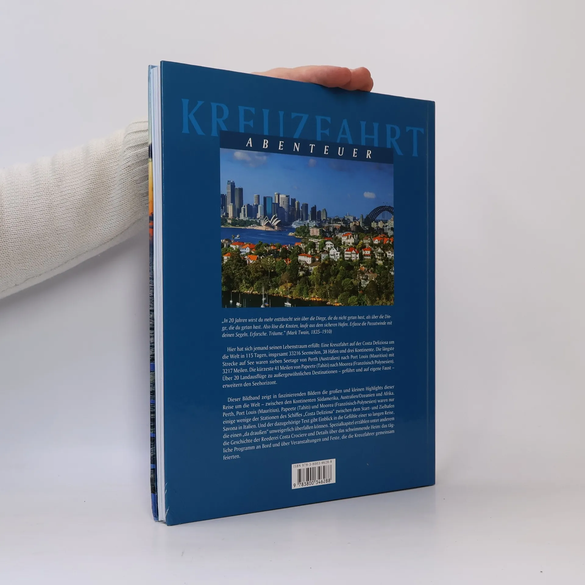 Klingende Namen · Rio de Janeiro, die Osterinseln, die Südsee, Sydney und Kapstadt sind Traumziele, die man von einer Kreuzfahrt um die Welt erwartet. Doch wie fühlt es sich an, vier Monate lang in einer 14 Quadratmeter großen Kabine zu wohnen? 115 Tage gemeinsam mit 2000 anderen Passagieren aus aller Welt auf engem Raum zusammen zu sein? Wie erträgt man als Kreuzfahrer 68 Seetage, wo nur Wasser um einen herum zu sehen ist? 33 216 Seemeilen. 38 Häfen … Dieser Bildband zeigt in faszinierenden Bildern die großen und kleinen Highlights dieser Reise um die Welt – zwischen den Kontinenten Südamerika, Australien/Ozeanien und Afrika: Perth, Port Louis (Mauritius), Papeete (Tahiti) und Moorea (Französisch-Polynesien), um hier nur einige der Stationen des Schiffes „Costa Deliziosa“ zwischen dem Start- und Zielhafen Savona in Italien zu nenne. Und der dazugehörige Text gibt Einblick in die Gefühle einer so langen Reise und die Emotionen, die einen „da draußen“ unweigerlich überfallen können. Das Spezialkapitel erzählt die Geschichte der Reederei Costa Crociere und Details über das schwimmende Heim: das tägliche Programm an Bord und über Veranstaltungen und Feste, die die Kreuzfahrer gemeinsam feierten. Sabrina Reulecke (Kreuzfahrtautorin) schreibt seit fünf Jahren unter dem Autorennamen Brina Stein. Sie wurde in Berlin geboren, ist in Lübeck aufgewachsen und lebt heute mit ihrem Mann im Taunus. Vor über fünfzehn Jahren hat sie die Kreuzfahrt für sich als ideale Urlaubsform entdeckt. Fasziniert von den Möglichkeiten, in einem Urlaub verschiedenste Länder zu entdecken, begann sie das Reisen mit dem Schreiben zu verbinden. Ihre Reiseerlebnisse wurden so zur Vorlage ihrer fiktiven Geschichten. In ihrer Buchreihe „Wellengeflüster“ sind bisher fünf Bücher erschienen. Ihren persönlichen Lebenstraum von einer Kreuzfahrt um die Welt erfüllte sie sich im Jahr 2015. Von Januar bis Mai umrundete sie die südliche Erdhalbkugel. "In 20 Jahren wirst du mehr enttäuscht sein über die Dinge, die du nicht getan hast, als über die Dinge, die du getan hast. Also löse die Knoten, laufe aus dem sicheren Hafen. Erfasse die Passatwinde mit deinen Segeln. Erforsche. Träume." - Mark Twain, 1835 – 1910 ABENTEUER... ist eine Reise-Bildband-Reihe, professionell fotografiert von renommierten Reisefotografen - - - Bis zu 300 Bilder auf 128 großformatigen Seiten - - - Alle wichtigen Sehenswürdigkeiten, grandiose Natur- und Tieraufnahmen - - - Spannende Erlebnisse zu Land und Leuten hautnah erzählt - - - Ausführliche Bildunterschriften - - - Farbige Übersichtskarte - - - Detailliertes Register.