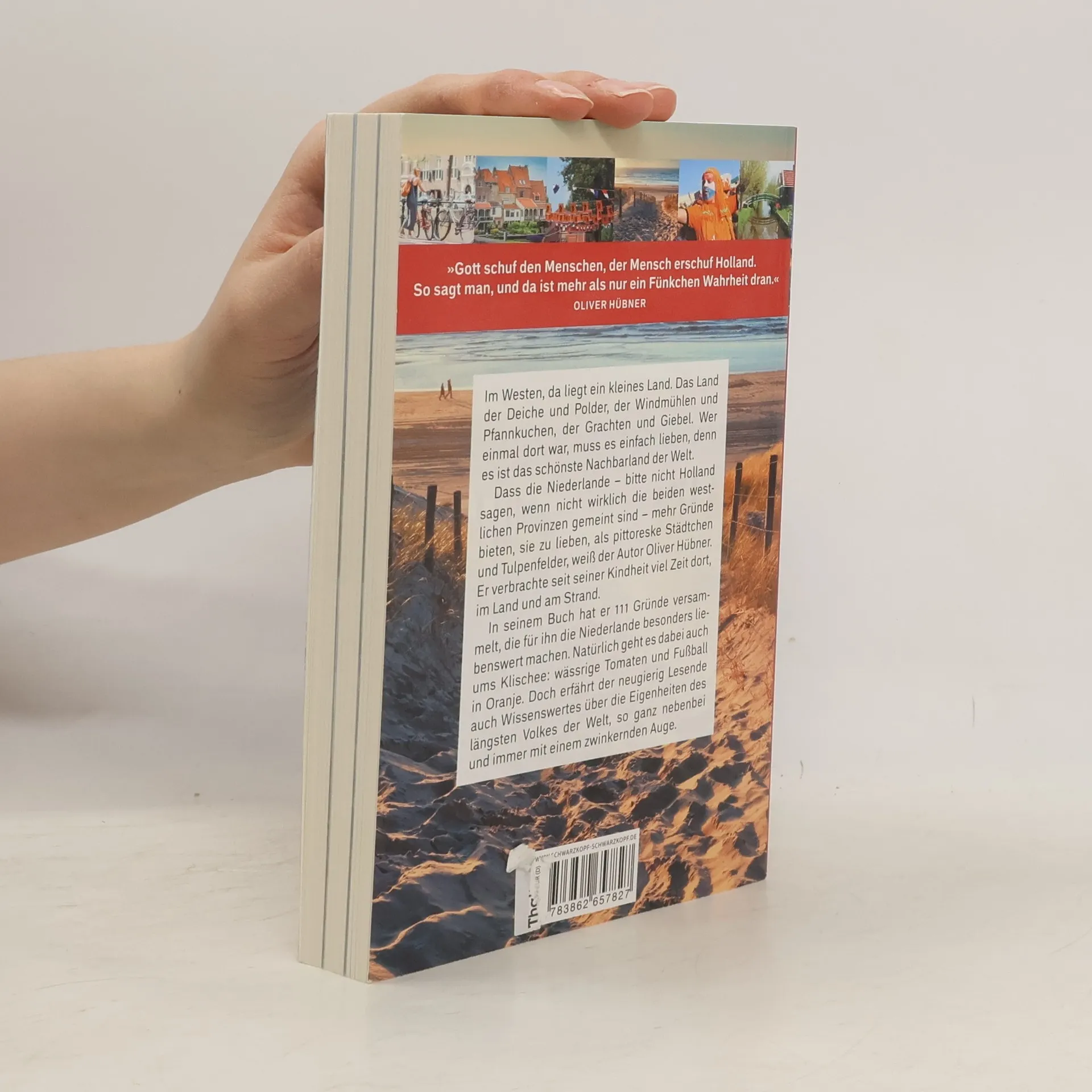 Im Westen, da liegt ein kleines Land. Das Land der Deiche und Polder, der Windmühlen und Pfannkuchen, der Grachten und Giebel. Wer einmal dort war, muss es einfach lieben, denn es ist das schönste Nachbarland der Welt. Dass die Niederlande – bitte nicht Holland sagen, wenn nicht wirklich die beiden westlichen Provinzen gemeint sind – mehr Gründe bieten, sie zu lieben, als pittoreske Städtchen und Tulpenfelder, weiß der Autor Oliver Hübner. Er verbrachte seit seiner Kindheit viel Zeit dort, im Land und am Strand. In seinem Buch hat er 111 Gründe versammelt, die für ihn die Niederlande besonders liebenswert machen. Natürlich geht es dabei auch ums Klischee: wässrige Tomaten und Fußball in Oranje. Doch erfährt der neugierig Lesende auch Wissenswertes über die Eigenheiten des längsten Volkes der Welt, so ganz nebenbei und immer mit einem zwinkernden Auge.