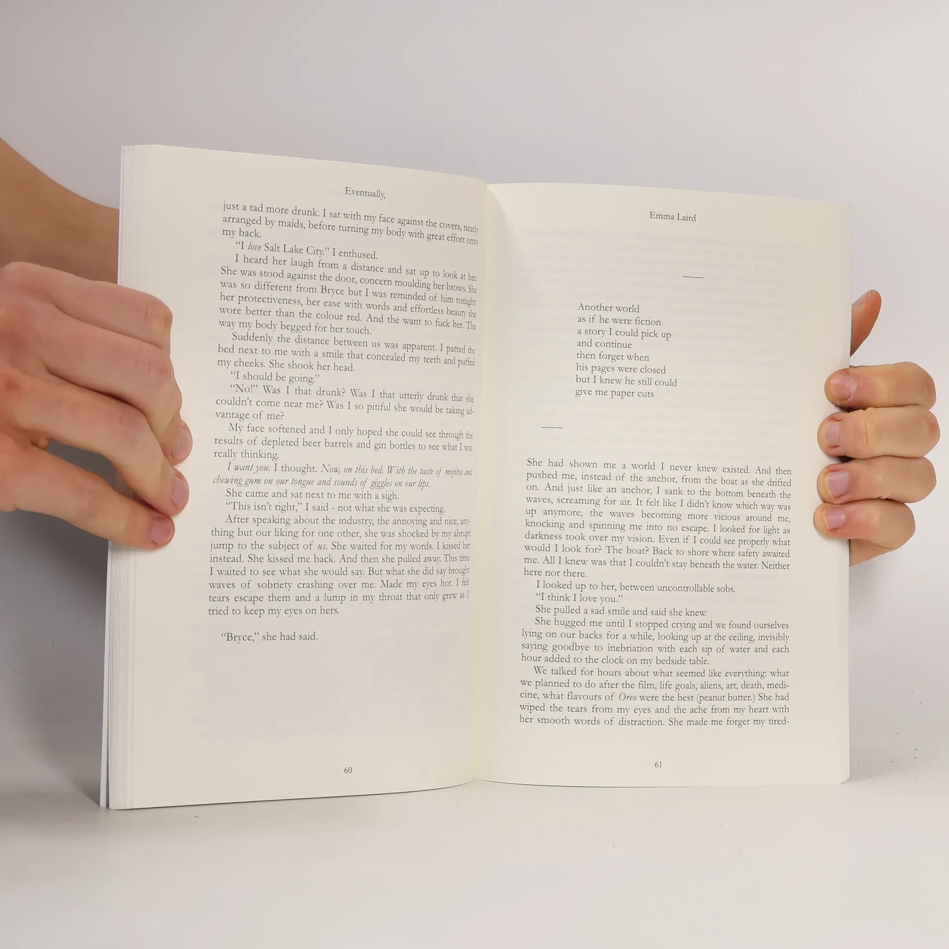 Kora radiates talent, passion and beauty, and has a heavy love for music and nature. When she falls madly for a musician in the sodden fields of an English music festival, she is faced with her biggest ultimatum. An ultimatum that soon sees her spiralling downwards, unhinging all that others perceive her to be.This is not a love story. Nor one of heartbreak. But a poetic telling of self discovery and acceptance through the eyes of a girl whose life is turned upside down by love.Eventually, is Emma's debut novel exploring the experiences of young love, falling in love with both boys and girls and coping with the mess that is often inside our heads. The book also features an extensive collection of poems written from Kora's perspective, but also from Emma's personal life. Both she and Kora hope you enjoy the book as much as she did creating it.