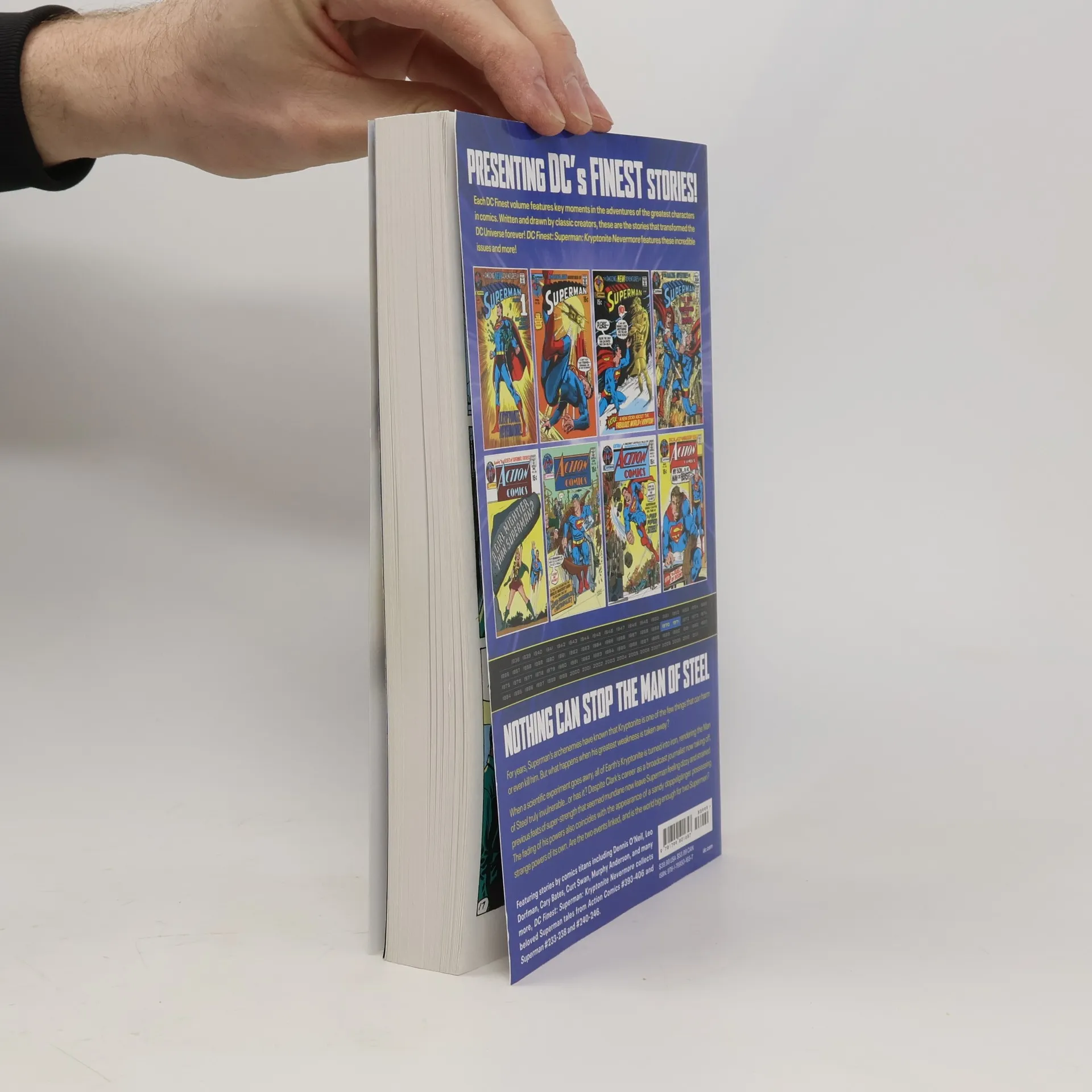 Kryptonite is gone, but the Man of Steel’s troubles have just begun in this collection of pivotal Superman stories from the 1970s!DC Finest presents comprehensive collections of the most in-demand and celebrated periods in DC Comics history, spanning genres, characters, and eras! Everyone knows Superman’s major weakness: Kryptonite. But what happens when that’s taken off the board, as a scientific experiment turns all the kryptonite on Earth to iron? Originally published in 1971, “Kryptonite Nevermore” turned the Man of Steel’s status quo on its head, as his powers slowly begin to fade and a doppelgänger Superman arrives on the scene with strange powers of its own—and any contact between the two might result in the destruction of the planet! Along with “Kryptonite Nevermore,” DC Finest: Superman: Kryptonite Nevermore includes further Bronze Age adventures by comics legends including Dennis O’Neil, Curt Swan, Cary Bates, and Len Wein! This volume collects stories from Action Comics #393-406; Superman #233-238, #240-246.
