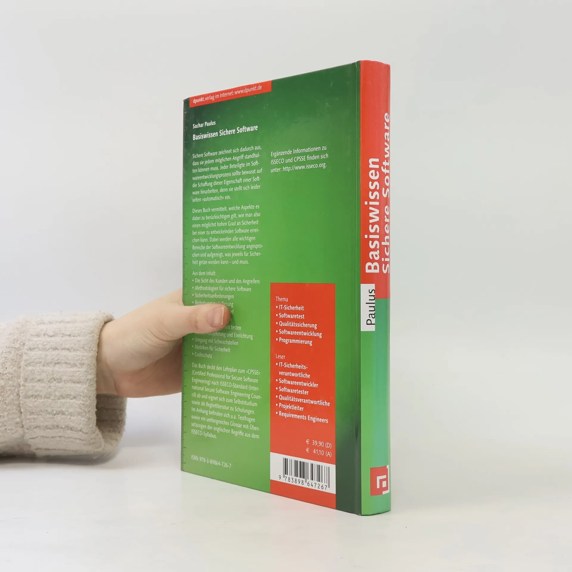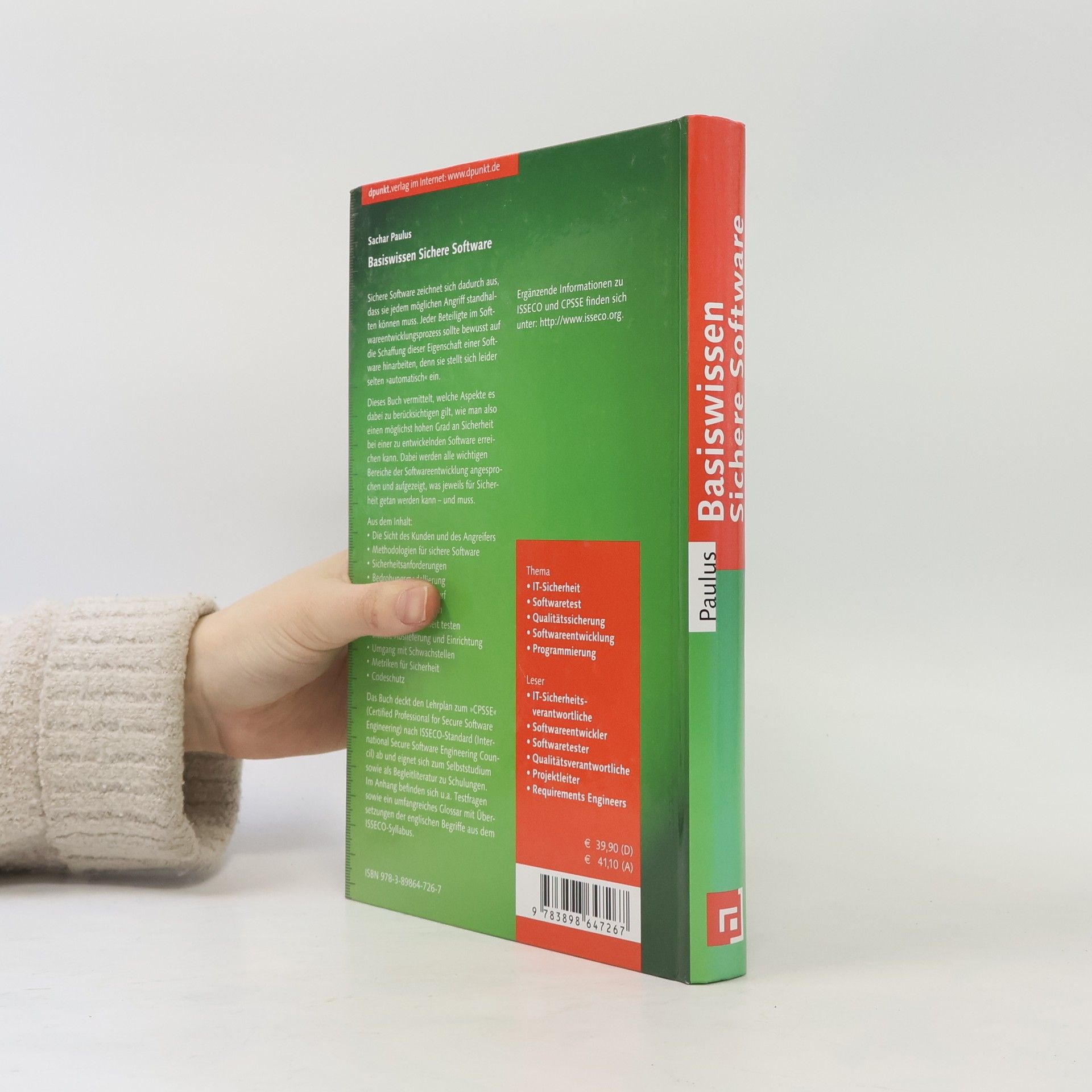 Sichere Software zeichnet sich dadurch aus, dass sie jedem möglichen Angriff standhalten können muss. Jeder Beteiligte im Softwareentwicklungsprozess sollte bewusst auf die Schaffung dieser Eigenschaft einer Software hinarbeiten, denn sie stellt sich leider selten>>automatisch< >CPSSE<<(Certified Professional for Secure Software Engineering) nach ISSECO-Standard (International Secure Software Engineering Council) ab und eignet sich zum Selbststudium sowie als Begleitliteratur zu Schulungen. Im Anhang befinden sich u.a. Testfragen sowie ein umfangreiches Glossar mit Übersetzungen der englischen Begriffe aus dem ISSECO-Syllabus. (Quelle: www.dpunktl.de)
