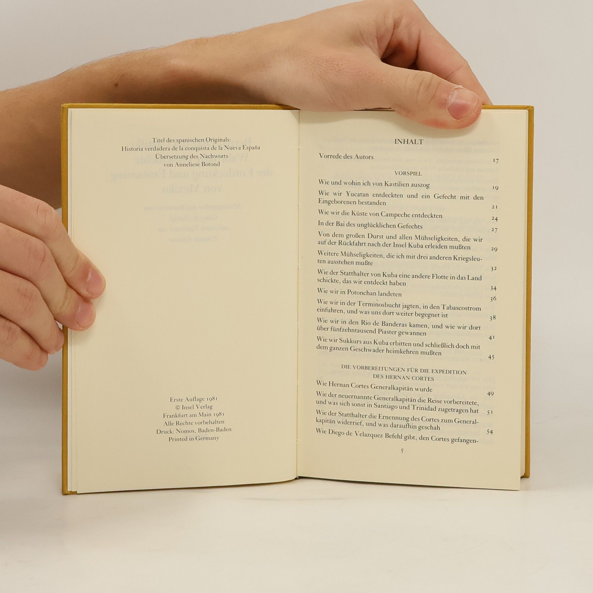 Diaz del Castillo berichtet von den Intrigen zwischen den Spaniern, ihrem Vorgehen mit Schwert und Kreuz gegen die Eingeborenen, den weiteren Feldzügen in Honduras auf der Suche nach noch mehr Schätzen, der ungleichen Aufteilung der Kriegsbeute durch Hernan Cortes, dem Unwillen der Soldaten, die sich zu Recht betrogen fühlen und doch stets aufs neue Cortes’ Faszination erliegen.