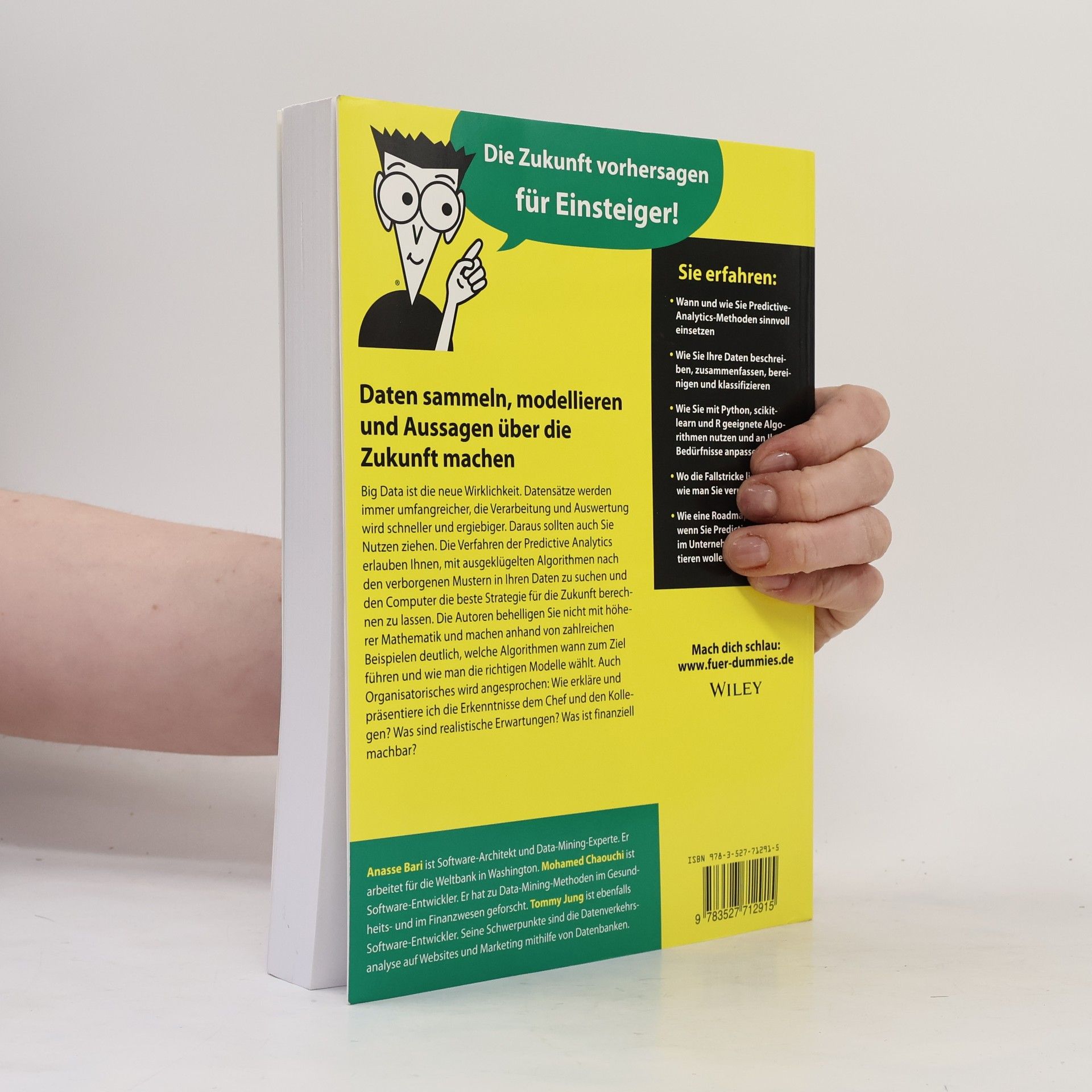 Sie möchten endlich wissen, was es mit Predictive Analytics auf sich hat und ob es vielleicht mathematische Verfahren gibt, die Ihnen die Prognose zukünftiger Entwicklungen erleichtern? Dieses Buch versetzt Sie mit den passenden Werkzeugen schnell in die Lage, Daten zu sammeln und zu analysieren und dann Vorhersagen zu machen. Die Autoren werden Sie nicht mit höherer Mathematik behelligen, sondern stattdessen anhand von zahlreichen Beispielen deutlich machen, welche Algorithmen wann zum Ziel führen und wie man die richtigen Modelle für die Zukunft wählt. Auch vermeintliche Randthemen werden angesprochen wie „Wie erkläre und präsentiere ich die Erkenntnisse den Kollegen?“, „Was sind realistische Ziele?“ und „Was kann ich mir finanziell leisten?“