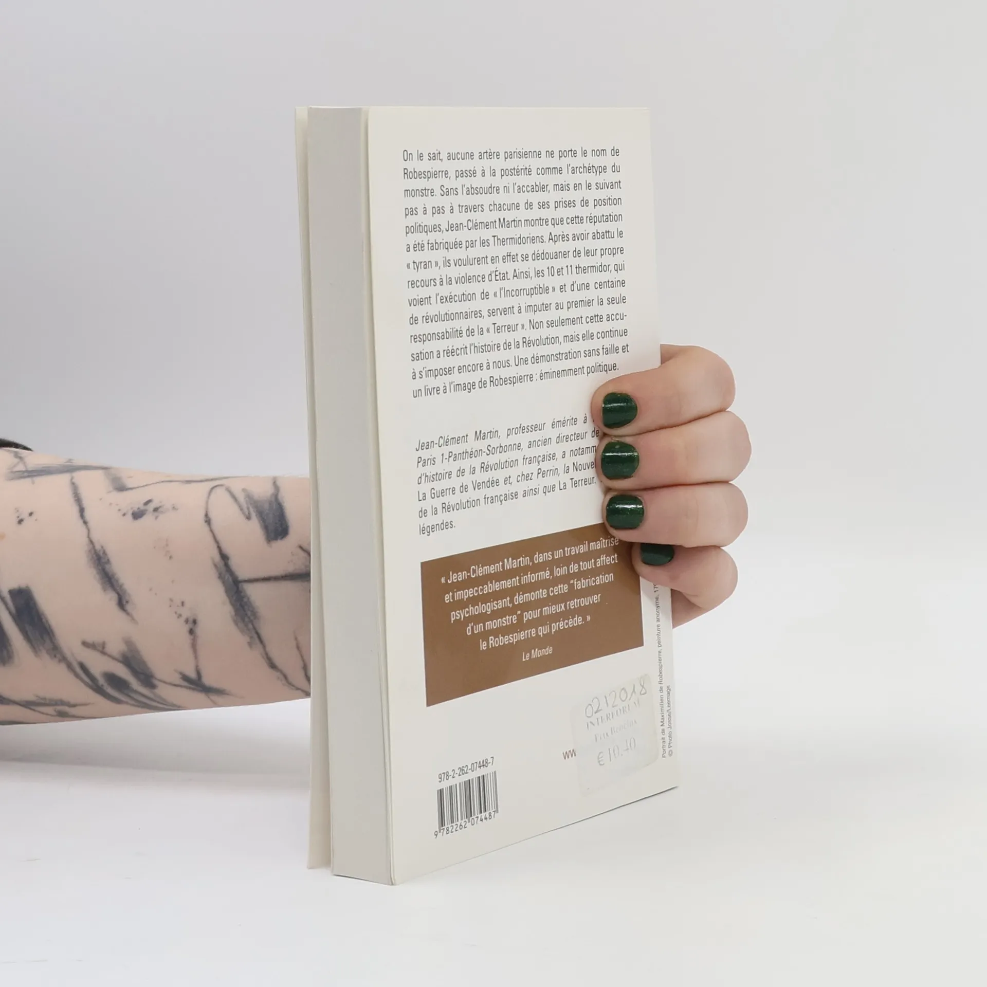 Comme l'on sait, aucune artère parisienne ne porte le nom de Robespierre, passé à la postérité comme l'archétype du monstre. Sans l'absoudre ni l'accabler, mais en le suivant pas à pas à travers chacune de ses prises de position politiques, Jean-Clément Martin montre que cette réputation a été fabriquée par les Thermidoriens. Après avoir abattu le " tyran ", ils voulurent en effet se dédouaner de leur propre recours à la violence d'État. Ainsi, les 10 et 11 thermidor, qui voient l'exécution de " l'Incorruptible " et d'une centaine de révolutionnaires, servent à imputer au premier la seule responsabilité de la " Terreur ". Non seulement cette accusation a réécrit l'histoire de la Révolution, mais elle continue à s'imposer encore à nous. Une démonstration sans faille et un livre à l'image de Robespierre : éminemment politique. Jean-Clément Martin, Professeur émérite à l'université Paris 1, Panthéon-Sorbonne, ancien directeur de l'Institut d'histoire de la Révolution française, a notamment publié La Guerre de Vendée , La Machine à fantasmes et, chez Perrin, la Nouvelle Histoire de la Révolution française."Jean-Clément Martin, dans un travail maîtrisé et impeccablement informé, loin de tout affect psychologisant, démontre cette ‟fabrication d'un monstre' pour mieux retrouver le Robespierre qui précède." Le Monde