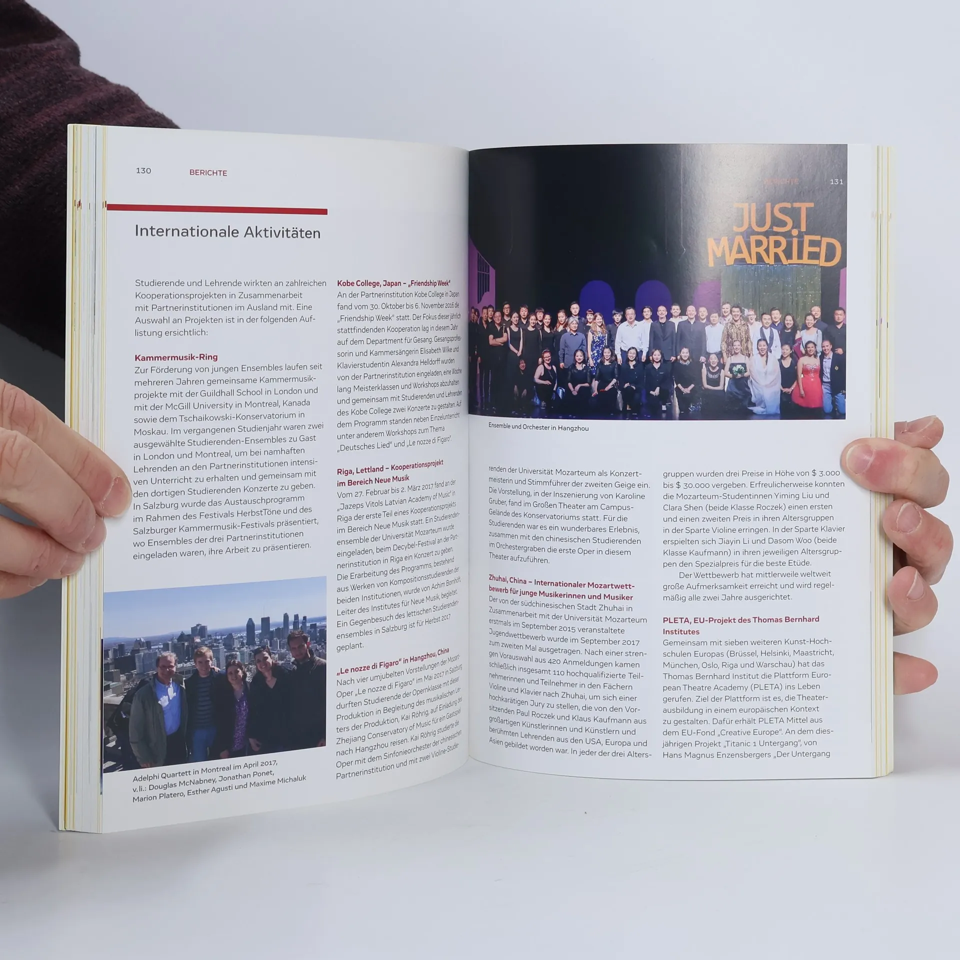Die Universität Mozarteum Salzburg ist ein Ort vielfältiger Begegnungen. Mit diesem Almanach zeigt sich der Aktivitätsradius der Universität während des Studienjahrs 2015/16. I. Entwicklung II. Organisation III. Veranstaltungen IV. Publikationen V. Berichte VI. Gespräche VII. Erfolge VIII. Standorte IX. Daten & Fakten X. Anhang