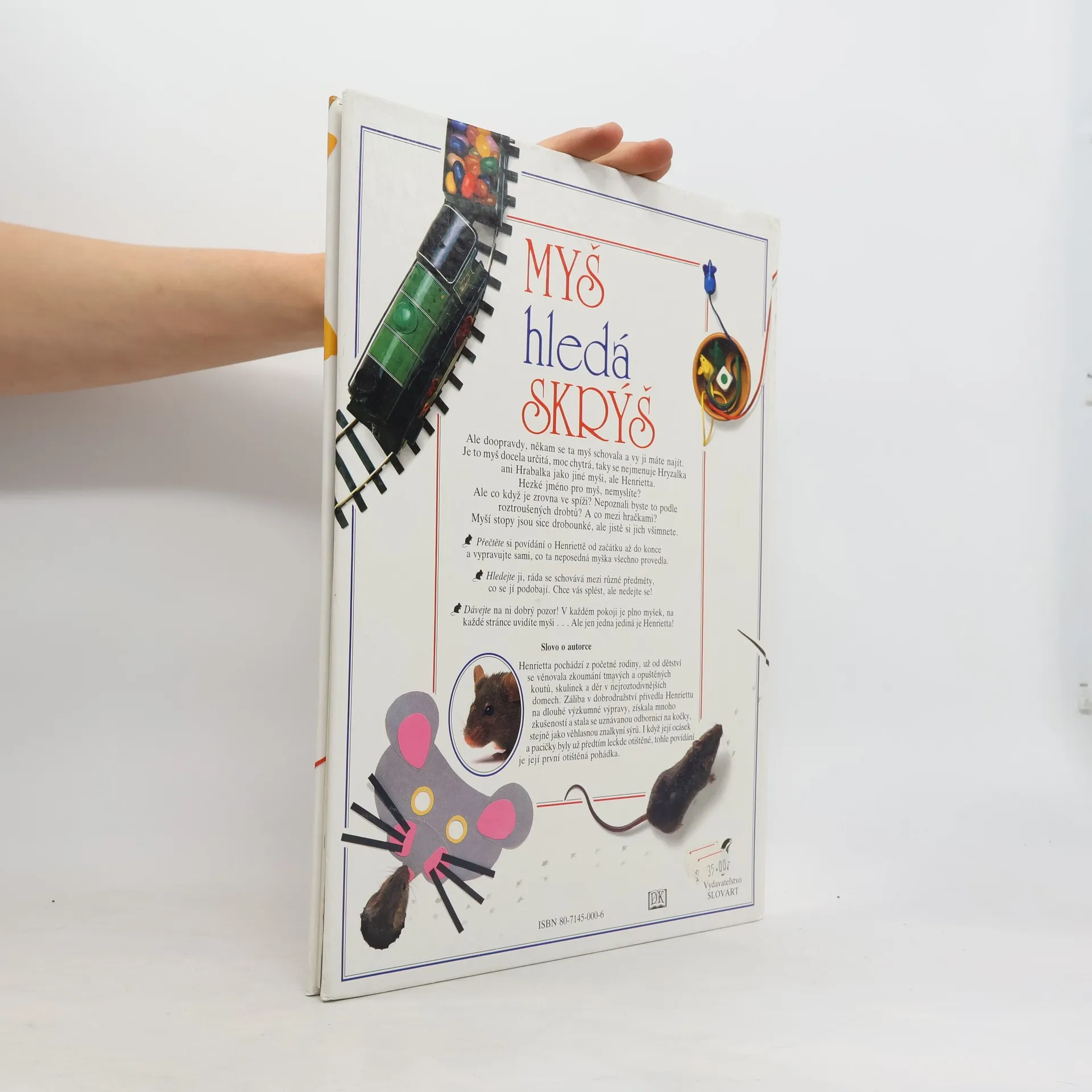 Ale doopravdy, někam se ta myš schovala a vy ji máte najít. Je to myš docela určitá, moc chytrá, taky se nejmenuje Hryzalka ani Hrabalka jako jiné myši, ale Henrietta. Hezké jméno pro myš, nemyslíte? Ale co když je zrovna ve spíži? Nepoznali byste to podle roztroušených drobtů? A co mezi hračkami? Myší stopy jsou sice drobounké, ale jistě si jich všimnete...