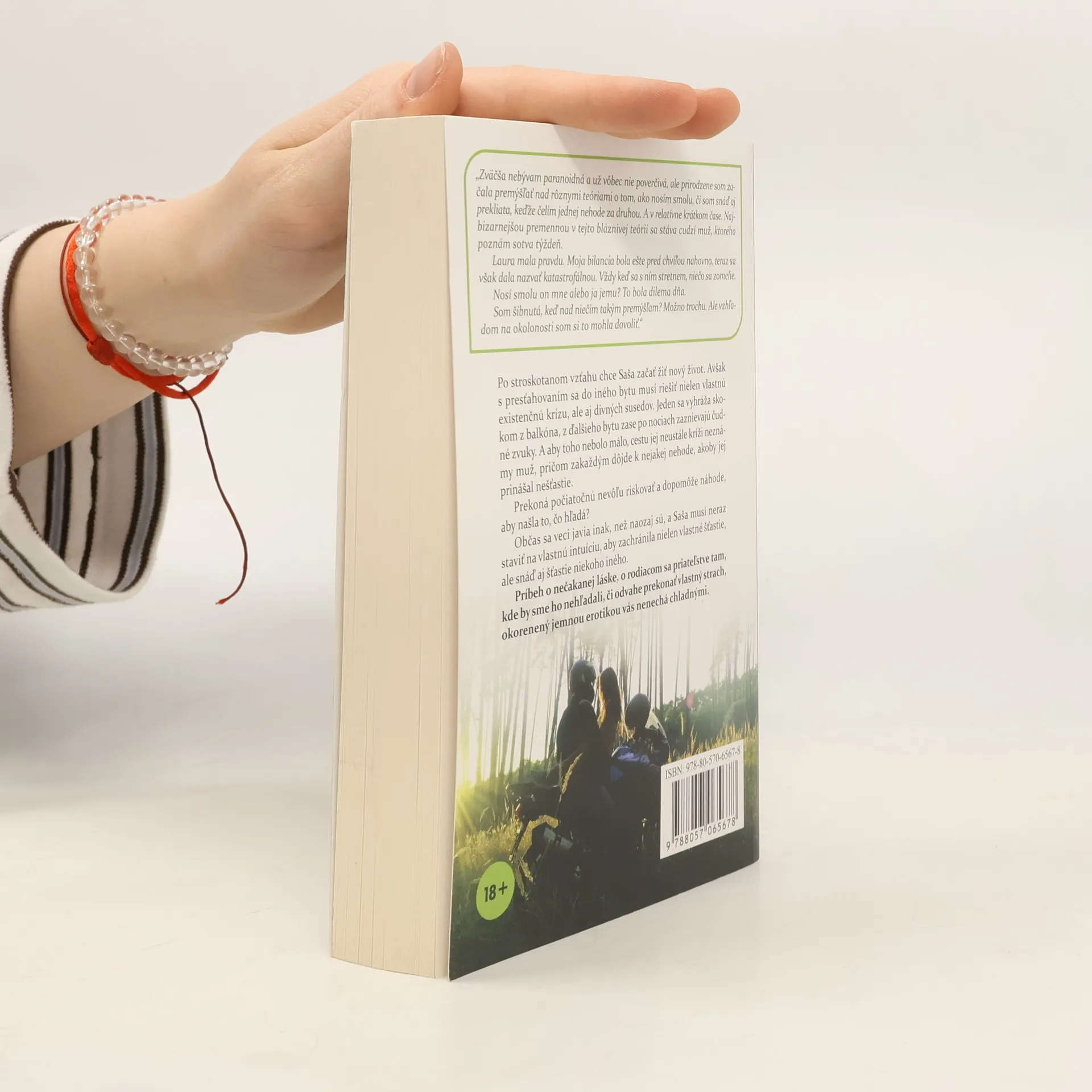 „Zväčša nebývam paranoidná a už vôbec nie poverčivá, ale prirodzene som začala premýšľať nad rôznymi teóriami o tom, ako nosím smolu, či som snáď aj prekliata, keďže čelím jednej nehode za druhou. A v relatívne krátkom čase. Najbizarnejšou premennou v tejto bláznivej teórii sa stáva cudzí muž, ktorého poznám sotva týždeň.Laura mala pravdu. Moja bilancia bola ešte pred chvíľou nahovno, teraz sa však dala nazvať katastrofálnou. Vždy keď sa s ním stretnem, niečo sa zomelie.Nosí smolu on mne alebo ja jemu? To bola dilema dňa.Som šibnutá, keď nad niečím takým premýšľam? Možno trochu. Ale vzhľadom na okolonosti som si to mohla dovoliť.“Po stroskotanom vzťahu chce Saša začať žiť nový život. Avšak s presťahovaním sa do iného bytu musí riešiť nielen vlastnú existenčnú krízu, ale aj divných susedov. Jeden sa vyhráža skokom z balkóna, z ďalšieho bytu zase po nociach zaznievajú čudné zvuky. A aby toho nebolo málo, cestu jej neustále kríži neznámy muž, pričom zakaždým dôjde k nejakej nehode, akoby jej prinášal nešťastie.Prekoná počiatočnú nevôľu riskovať a dopomôže náhode, aby našla to, čo hľadá?Občas sa veci javia inak, než naozaj sú, a Saša musí neraz staviť na vlastnú intuíciu, aby zachránila nielen vlastné šťastie, ale snáď aj šťastie niekoho iného.Príbeh o nečakanej láske, o rodiacom sa priateľstve tam, kde by sme ho nehľadali, či odvahe prekonať vlastný strach, okorenený jemnou erotikou vás nenechá chladnými.