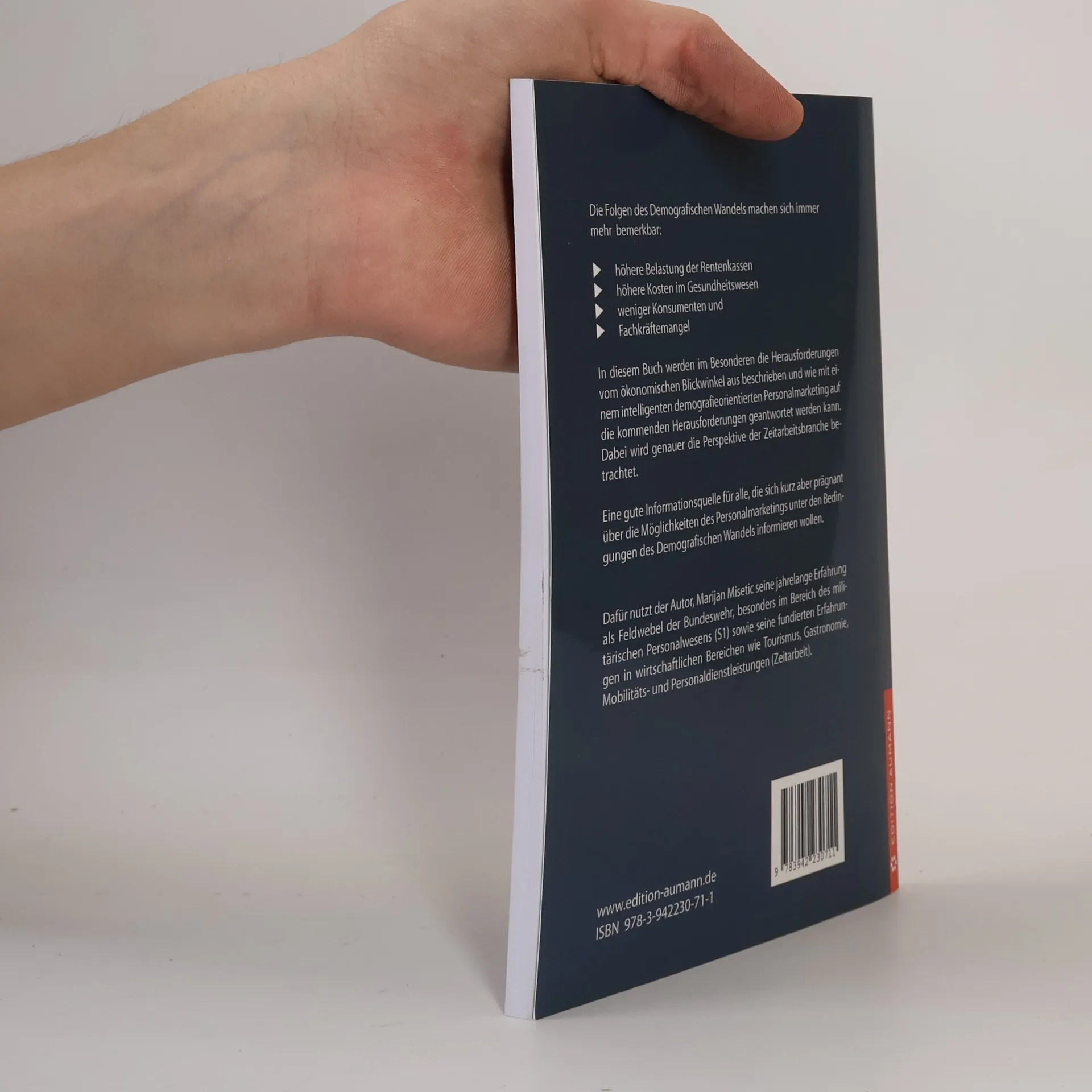 Die Folgen des Demografischen Wandels machen sich immer mehr bemerkbar: - höhere Belastung der Rentenkassen - höhere Kosten im Gesundheitswesen - weniger Konsumenten und - Fachkräftemangel In diesem Buch werden im Besonderen die Herausforderungen vom ökonomischen Blickwinkel aus beschrieben und wie mit einem intelligenten demografieorientierten Personalmarketing auf die kommenden Herausforderungen geantwortet werden kann. Dabei wird genauer die Perspektive der Zeitarbeitsbranche betrachtet. Eine gute Informationsquelle für alle, die sich kurz aber prägnant über die Möglichkeiten des Personalmarketings unter den Bedingungen des Demografischen Wandels informieren wollen. Dafür nutzt der Autor, Marijan Misetic seine jahrelange Erfahrung als Feldwebel der Bundeswehr, besonders im Bereich des militärischen Personalwesens (S1) sowie seine fundierten Erfahrungen in wirtschaftlichen Bereichen wie Tourismus, Gastronomie, Mobilitäts- und Personaldienstleistungen (Zeitarbeit).