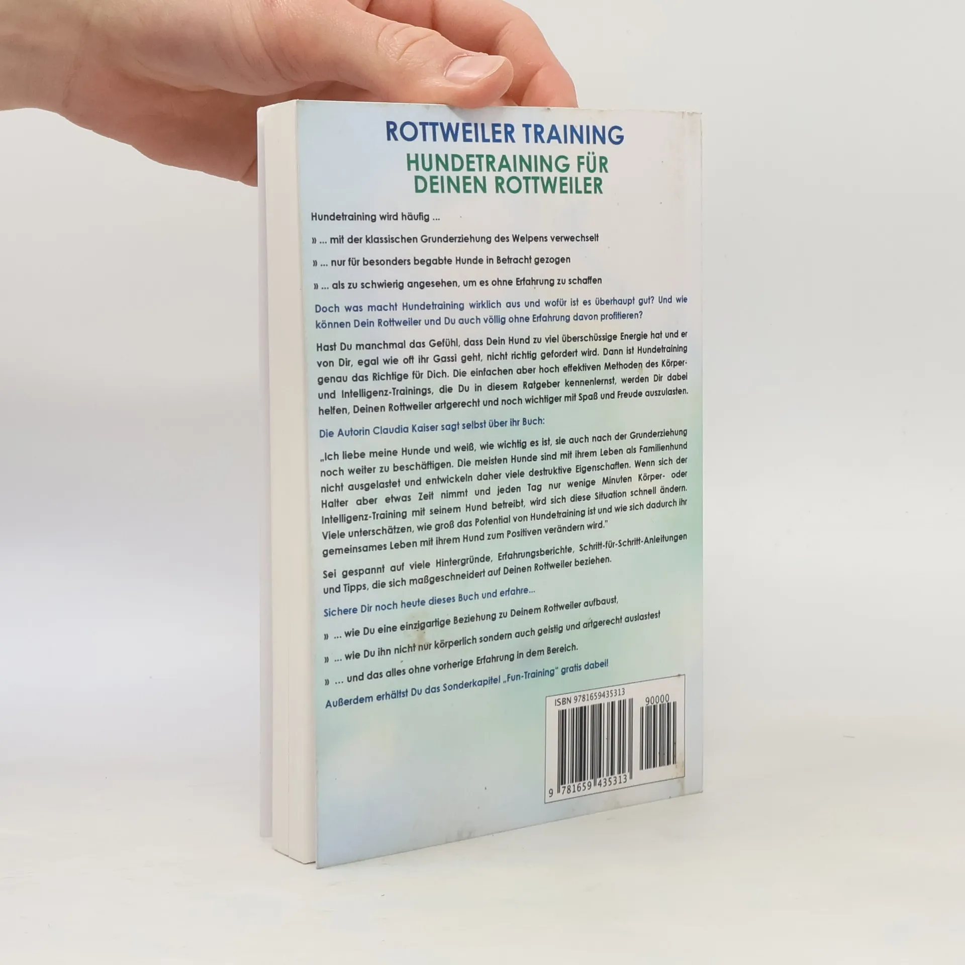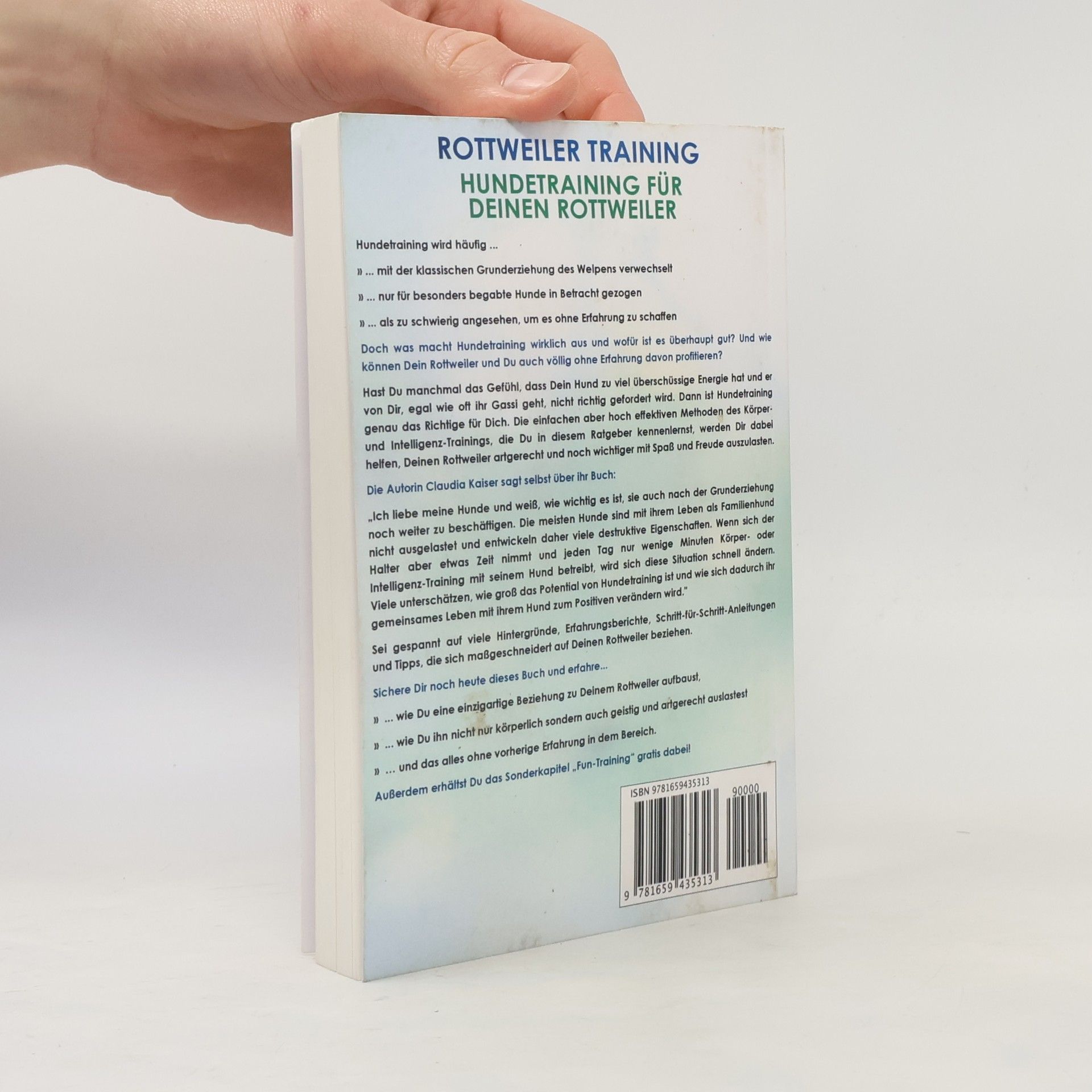 Rottweiler Training – Hundetraining für Deinen Rottweiler bietet eine Anleitung, um eine einzigartige Beziehung zu Deinem Rottweiler aufzubauen. Oft wird Hundetraining mit der Grundausbildung von Welpen verwechselt oder als zu schwierig angesehen. Doch Hundetraining ist für jeden Hund, unabhängig von Erfahrung, von Vorteil. Wenn Du das Gefühl hast, dass Dein Hund überschüssige Energie hat und nicht ausreichend gefordert wird, sind die im Ratgeber vorgestellten einfachen, aber effektiven Methoden des Körper- und Intelligenz-Trainings genau das Richtige für Dich. Dieser Ratgeber ist der zweite Teil der Rottweiler-Erziehungsreihe. Der erste Teil für Welpen und der dritte Teil zur Pflege sind ebenfalls erhältlich. Die Autorin, Claudia Kaiser, betont die Wichtigkeit, Hunde auch nach der Grundausbildung weiter zu beschäftigen, um destruktives Verhalten zu vermeiden. Mit nur wenigen Minuten Training pro Tag kann sich das Leben mit Deinem Hund erheblich verbessern. Freue Dich auf wertvolle Informationen, Erfahrungsberichte, Schritt-für-Schritt-Anleitungen und Tipps, die speziell auf Deinen Rottweiler zugeschnitten sind. Sichere Dir das Buch, um zu erfahren, wie Du eine besondere Beziehung zu Deinem Rottweiler aufbaust und ihn sowohl körperlich als auch geistig artgerecht auslastest – alles ohne vorherige Erfahrung. Zudem erhältst Du ein kostenloses Sonderkapitel „Fun-Training“.