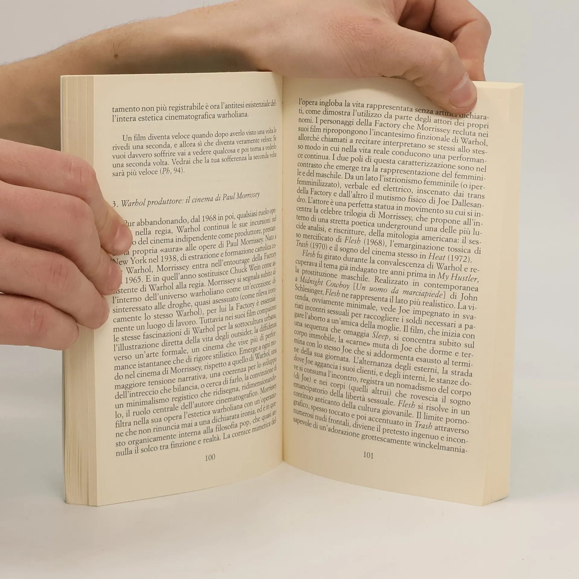 Dai feticci industriali all’indagine sul divismo hollywoodiano, dal tema della morte al travestitismo, dal cinema underground all’arte commerciale, l’estetica warholiana rivela una continua sovrapposizione mimetica con la sua fonte iconica principale, l’America, metafora assoluta di una contemporaneità ridotta a superficie.