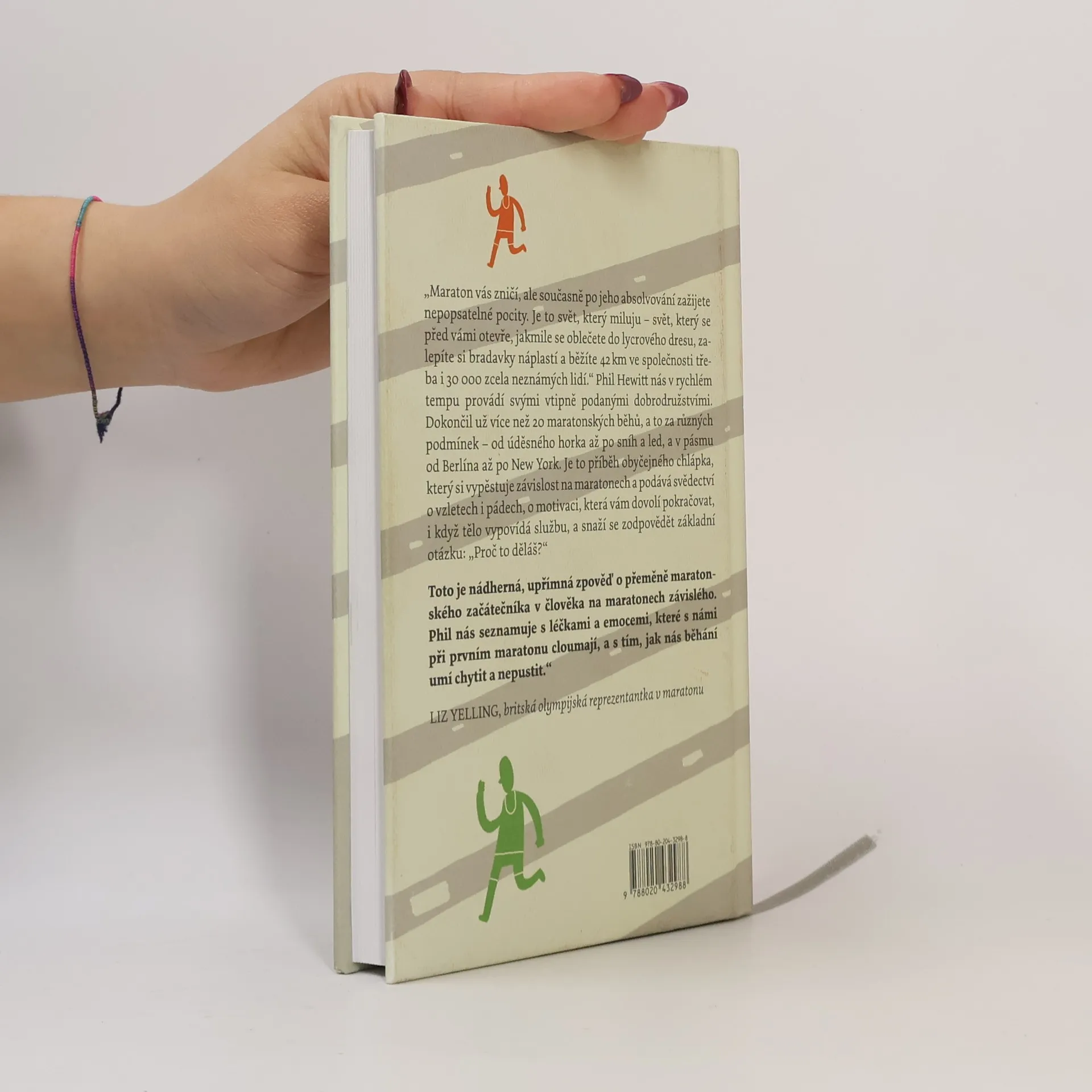 Vzlety a pády maratonského závisláka. Maraton vás zničí, ale současně po jeho absolvování zažijete nepopsatelné pocity. Je to svět, který miluju – svět, který se před vámi otevře, jakmile se oblečete do lycrového dresu, zalepíte si bradavky náplastí a běžíte 42 km ve společnosti třeba i 30 000 zcela neznámých lidí - Phil Hewitt nás v rychlém tempu provádí svými lehce podanými dobrodružstvími na cestě. Dokončil už více než 20 maratonských běhů, a to za různých podmínek – od úděsného horka až po sníh a led, a v pásmu od Berlína až po New York. Je to příběh obyčejného chlápka, který si vypěstuje závislost na maratonech, a podává svědectví o vzletech i pádech, o motivaci, která vás dovolí pokračovat, i když tělo vypovídá službu, a snaží se zodpovědět základní otázku: proč to děláš? Toto je nádherná, upřímná zpoveď o přeměně maratonského začátečníka v člověka na maratonech závislého. Phil nás seznamuje s léčkami a emocemi, které s námi při prvním maratonu cloumají, a s tím, jak nás běhání umí chytit a nepustit. - Liz Yelling, britská olympijská reprezentantka v maratonu První vydání.