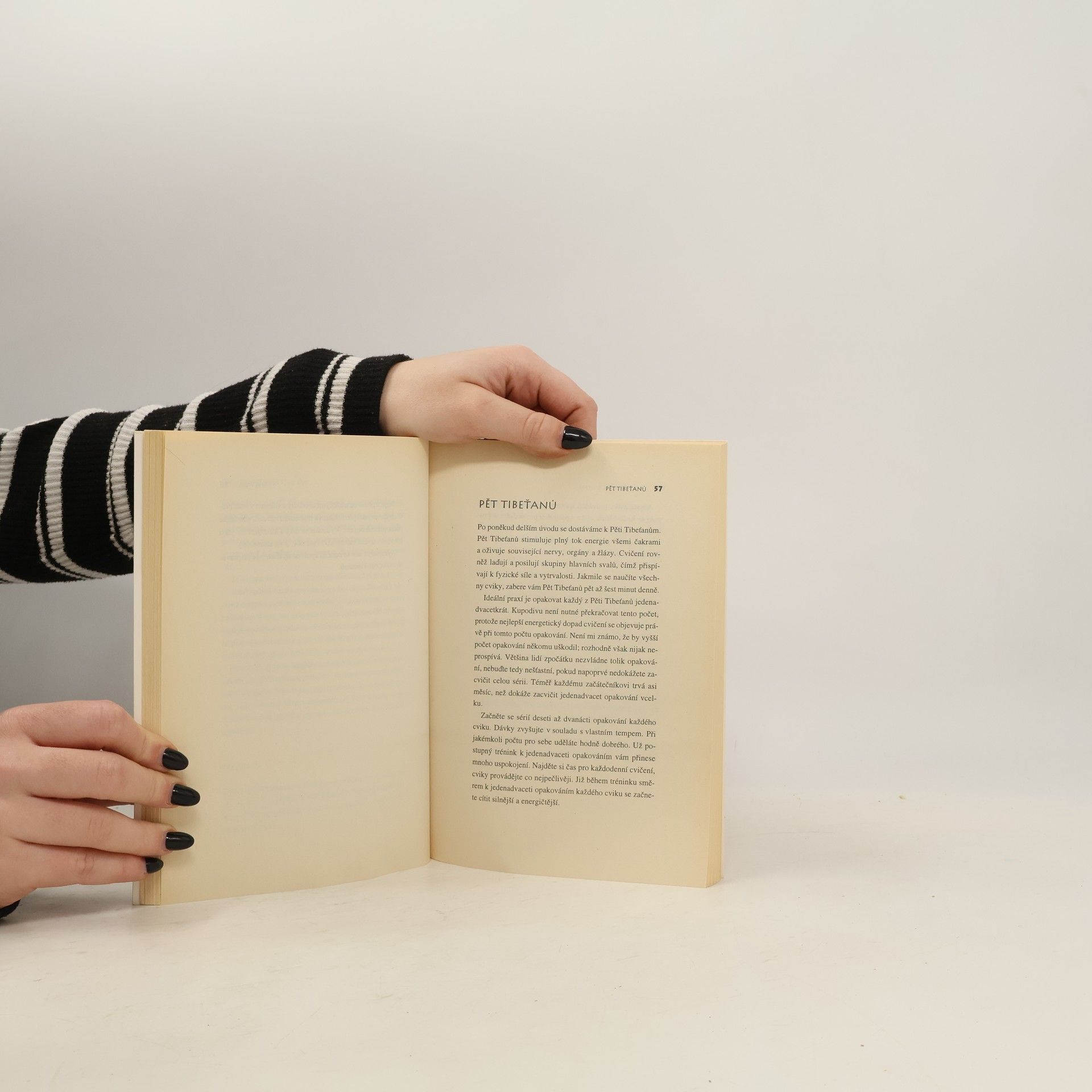 Pět dynamických cviků, které posílí zdraví, dodají energii a životní sílu. Pět Tibeťanů je jogínský systém jednoduchých, časově i fyzicky nenáročných, ale velmi účinných cviků, které se autor před více než třiceti lety naučil v tibetském klášteře v pohoří Himálaje a posléze je představil západní civilizaci. Pravidelné cvičení Pěti Tibeťanů podstatně zvyšuje pružnost těla i duševní sílu, odstraňuje psychické i svalové napětí, oživuje naše smysly, zlepšuje dýchání a trávení, blahodárně působí na oběhovou soustavu, navozuje klid a celkovou pohodu.