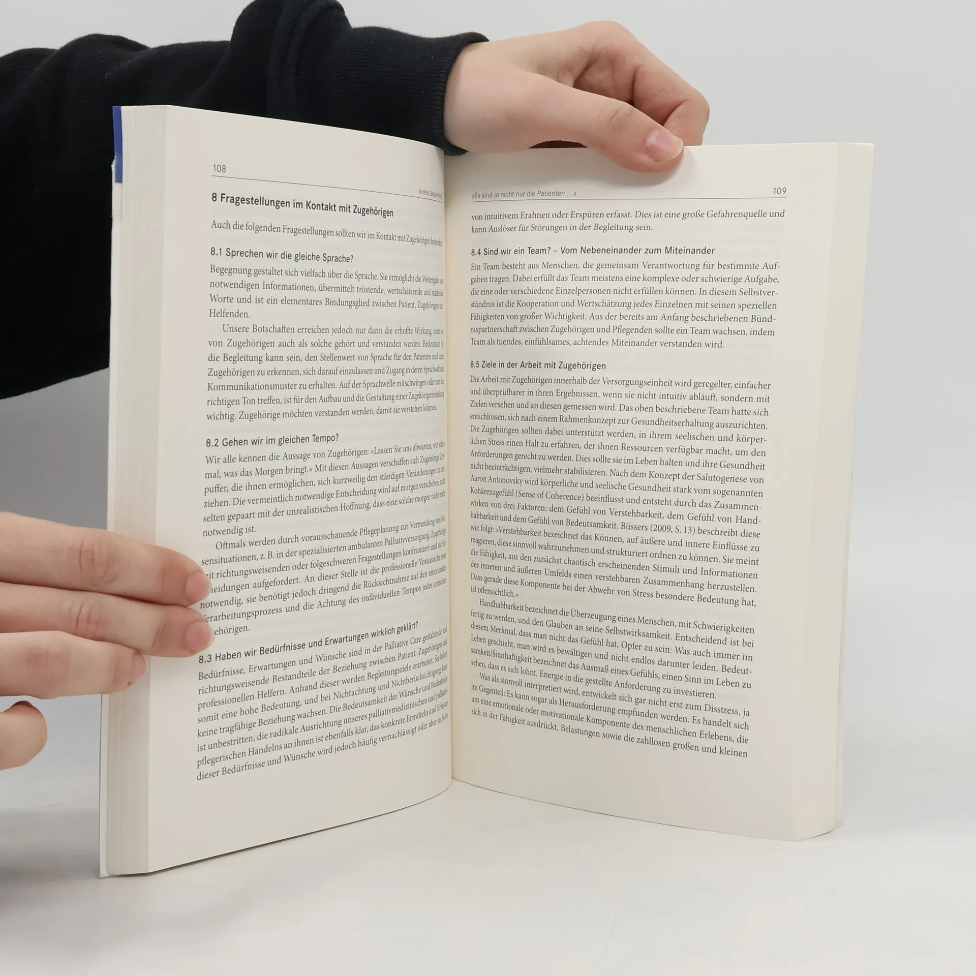 English summary: In palliative care both the patients and their caretakers are focused on the endpoint of life. But how much death and sorrow can any one team tolerate? In both hospices and palliative care units patients are being treated and accompanied; their illnesses are generally well advanced and the end of their life is foreseeable. Death is ever present in such institutions, something the caretakers have to learn to live with, too. Authors from the various disciplines involved address the question of how this work can best be done without becoming ill oneself. The book also refers to the forces and factors that can shield the caretaker from harm, and shows how valuable their work in this existential field truly is. German description: In den Hospizen und Palliativstationen werden ausschliesslich Patienten behandelt und begleitet, deren schwere Erkrankung weit fortgeschritten ist, weiter fortschreitet und deren Lebenserwartung absehbar begrenzt ist. Die Ziele palliativer Versorgung sind die Linderung aller Leiden und Sorgen und die Erhaltung bzw. Wiederherstellung von Lebensqualitat. Im gesamten Tun ist das nahende Sterben standiges Thema, um das sich - ausgesprochen oder nicht - alles dreht. Der Tod geht immer mit, muss bearbeitet und ausgehalten werden. Die Fokussierung auf das Lebensende gilt sowohl fur die Patienten wie auch fur die dort Arbeitenden. Die in diesem Feld arbeitenden haupt- und ehrenamtlich Tatigen sind sich bewusst, dass sie sich in einem vom Tod kontaminierten sozialen Raum bewegen. Die Autoren dieses Bandes gehen der Frage nach, wie viel Auseinandersetzung mit Sterben, Tod und Trauer ertraglich, vertraglich ist. Es geht sicher nicht darum, ob das Thema bekommlich ist, sondern, wie man, ohne Schaden zu nehmen, tagtaglich darin arbeitet. Das Buch mochte Denkangebote geben, mit den besonderen Belastungen vielleicht neu und anders umzugehen. Es geht dabei manchmal nur um ein Umdenken, ein Umbenennen, um das Einnehmen einer anderen Perspektive oder auch um konkrete Handlungsoptionen. Gleichzeitig weist es auf die Kraftfelder und Schutzfaktoren hin und macht die Kostbarkeit der Arbeit in diesem existentiellen Feld deutlich.