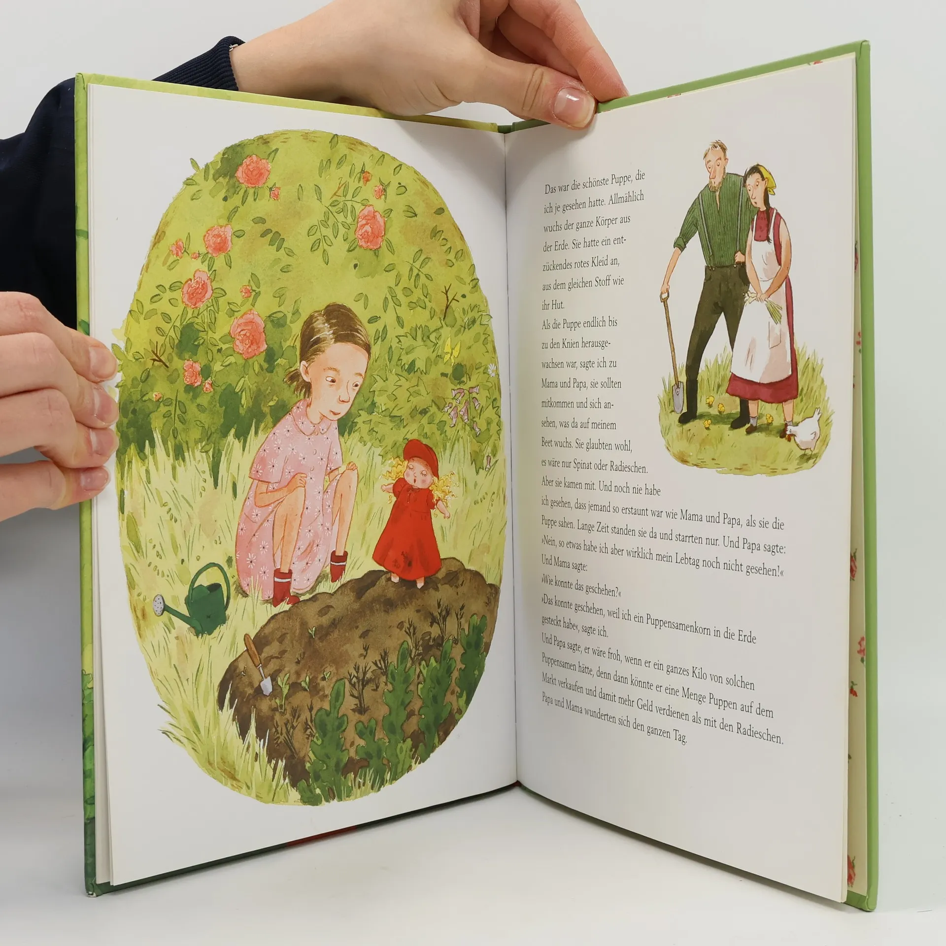 Astrid Lindgrens „Die Puppe Mirabell“ erzählt die bezaubernde Geschichte von Britta-Kajsa, einem Mädchen, das sich sehnlichst eine eigene Puppe wünscht. Ihr Traum wird wahr, als ein geheimnisvoller kleiner Mann ihr ein leuchtend goldenes Samenkorn schenkt. Nach dem Einpflanzen des Korns entsteht nicht eine Blume, sondern die außergewöhnliche Puppe Mirabell, das Ergebnis eines Wunders. Die einfühlsamen Illustrationen der schwedischen Künstlerin Pija Lindenbaum erwecken die Magie von Lindgrens Erzählung zum Leben und machen sie für Kinder ab vier Jahren zugänglich. Lindgrens Talent, eine Welt voller Magie und Wunder zu schaffen, verzaubert in dieser herzerwärmenden Erzählung über Träume, Hoffnung und den Glauben an das Unmögliche. Pija Lindenbaums Bilder verleihen dem Märchen besondere Tiefe und Atmosphäre, ohne zu süßlich zu wirken. Ihre Kunstwerke ergänzen den Text perfekt und schaffen ein visuelles Erlebnis. „Die Puppe Mirabell“ vermittelt subtil, dass Kinder aktiv werden müssen, um ihre Träume zu verwirklichen, und ermutigt sie, an Wunder zu glauben, während sie auch die Notwendigkeit eigener Anstrengungen verstehen. Dieses Bilderbuch ist eine wunderbare Einführung in die Welt der Literatur und die zeitlosen Geschichten Astrid Lindgrens für junge Leserinnen und Leser ab vier Jahren.