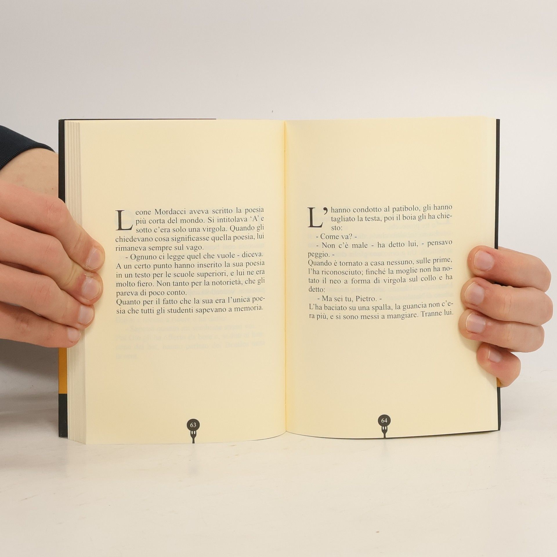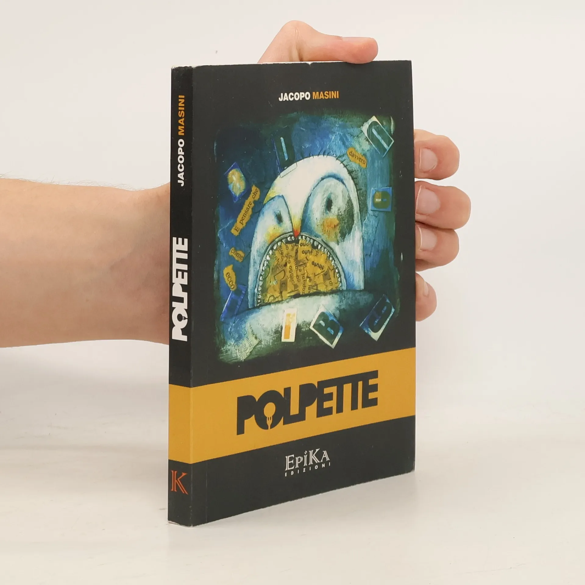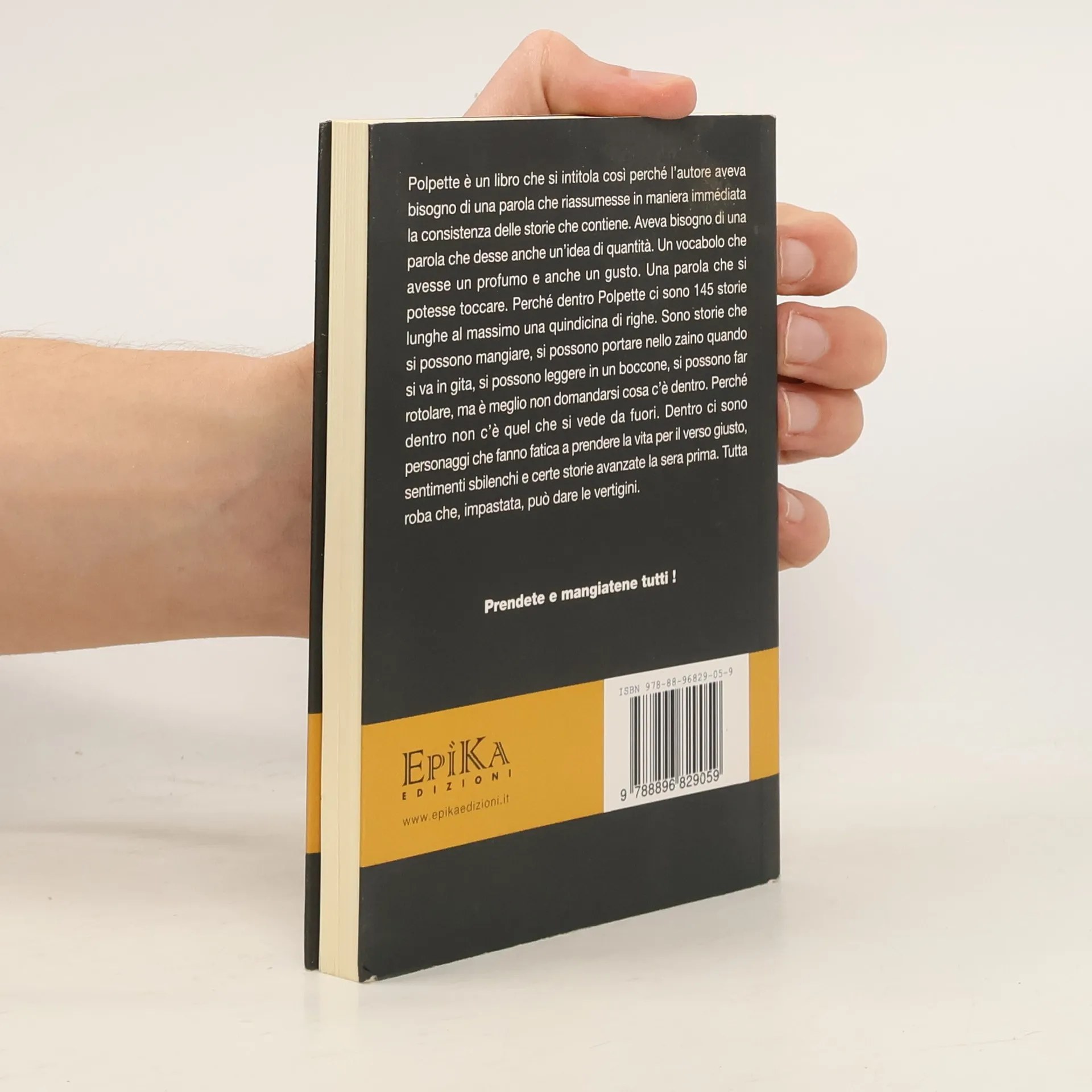 Castello di Serravalle, 2010; br., pp. 184, ill. b/n, cm 11x16,5 "'Polpette' è un libro che si intitola così perché l'autore aveva bisogno di una parola che riassumesse in maniera immediata la consistenza delle storie che contiene. Aveva bisogno di una parola che desse anche un'idea di quantità. Un vocabolo che avesse un profumo e anche un gusto. Una parola che si potesse toccare. Perché dentro 'Polpette' ci sono 145 storie lunghe al massimo una quindicina di righe. Sono storie che si possono mangiare, si possono portare nello zaino quando si va in gita, si possono leggere in un boccone, si possono far rotolare, ma è meglio non domandarsi cosa c'è dentro. Perché dentro non c'è quel che si vede da fuori. Dentro ci sono personaggi che fanno fatica a prendere la vita per il verso giusto, sentimenti sbilenchi e certe storie avanzate la sera prima. Tutta roba che, impastata, può dare le vertigini." (Jacopo Masini)
