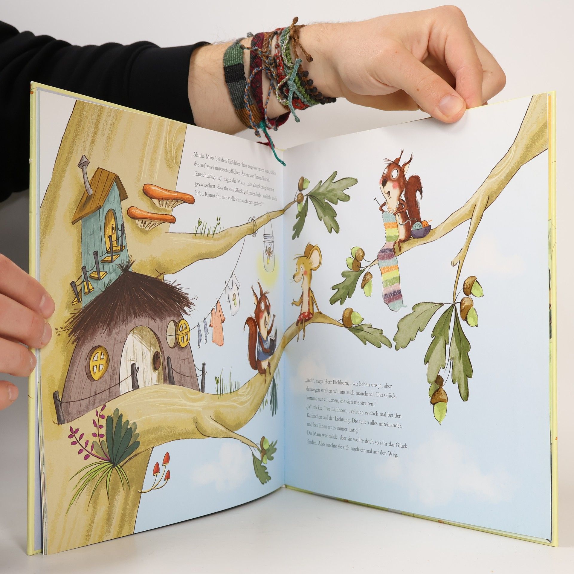 Was ist Glück? Die kleine Maus zieht in die Welt, um das herauszufinden. Denn wenn damit wirklich alles besser ist, dann will sie für sich und den Maulwurf auch davon abhaben. Ob der reiche Fuchs Glück hat? Oder der mächtige Bär? Auch beim schönen Waschbären, dem berühmten Zaunkönig und den verliebten Eichhörnchen sucht die Maus das Glück. Doch erst beim Maulwurf zu Hause erkennt sie, was ihr ganz und gar eigenes Glück ist.