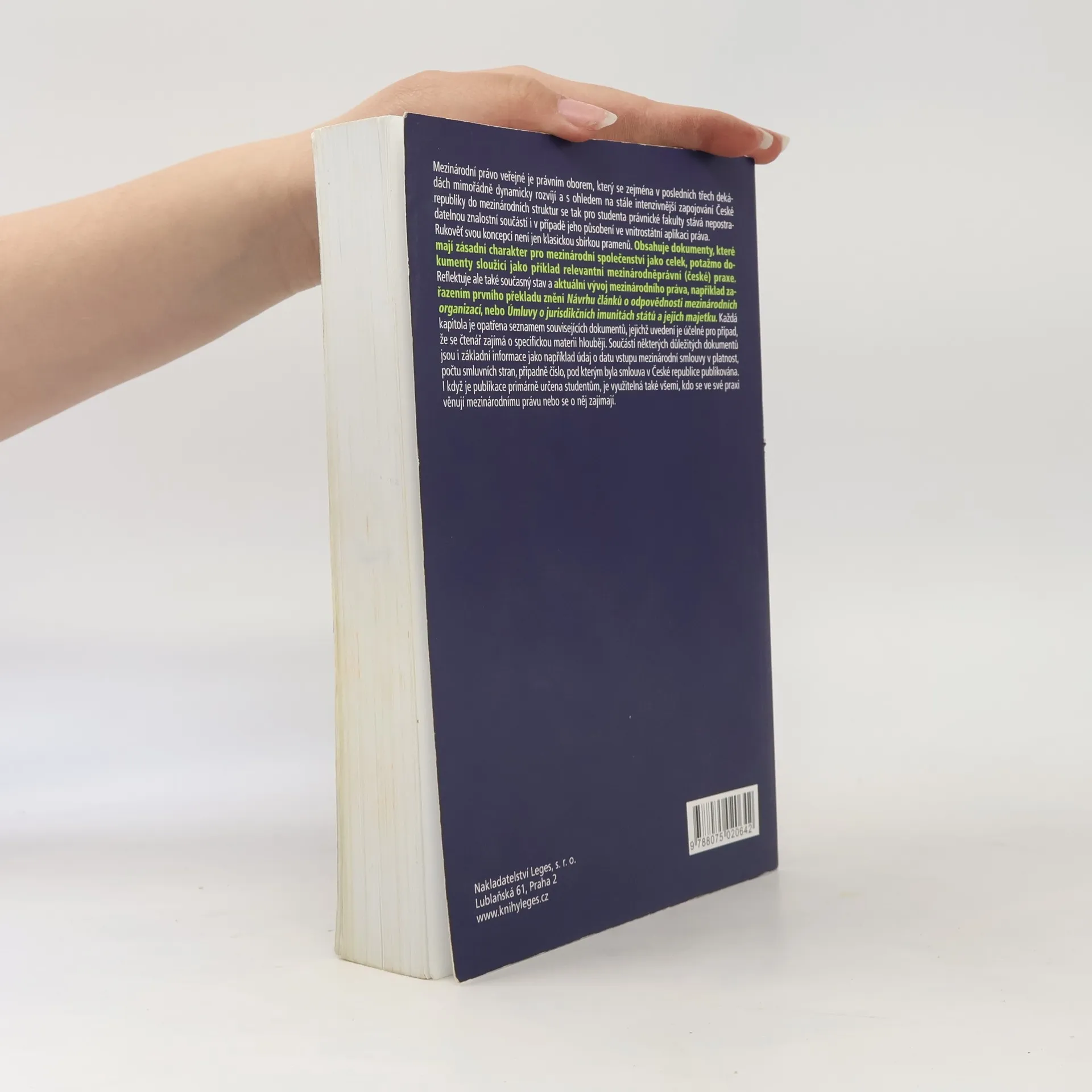 Rukověť je učební pomůckou pro studium mezinárodního práva. Obsahuje primární prameny a další zásadní dokumenty mezinárodního práva, některé v originálním autorském překladu. I když je publikace primárně určena studentům, je využitelná také všemi, kdo se ve své praxi věnují mezinárodnímu právu nebo se o něj zajímají.