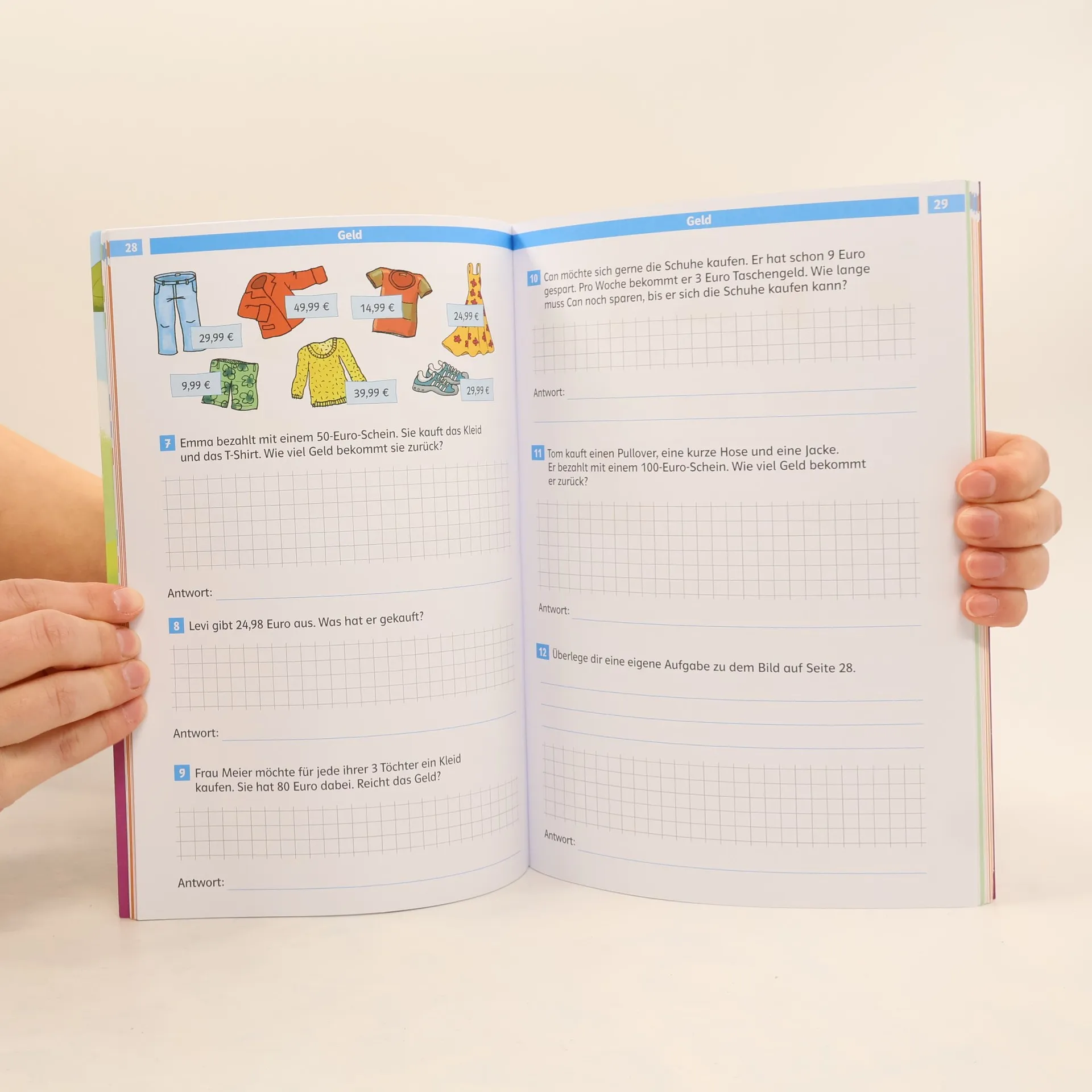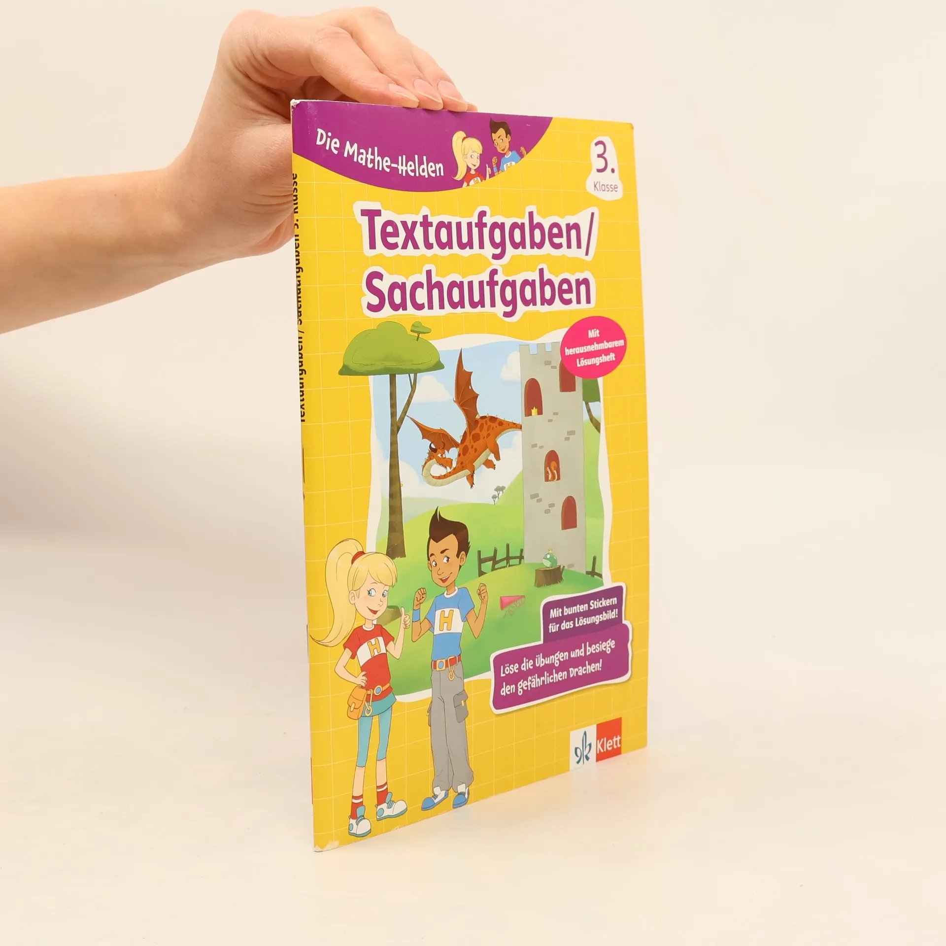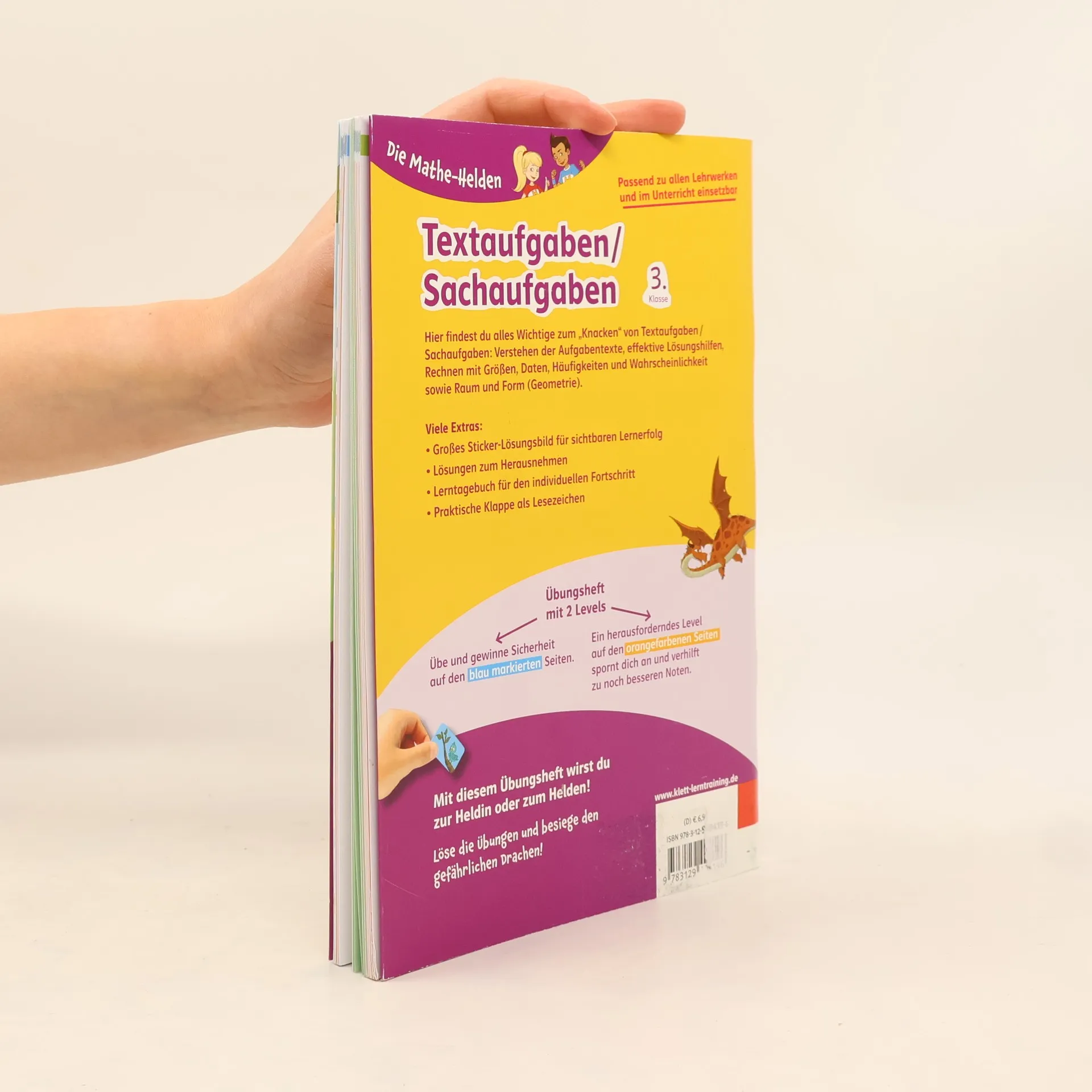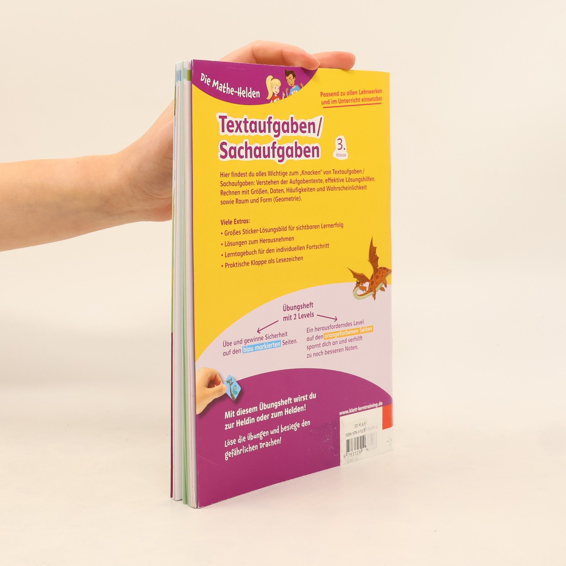 So wirst du zum Helden in Mathe: In jedem Heft gibt es ein spannendes Abenteuer! Du kannst üben, üben, üben und wirst so zum Meister: für richtige Aufgaben gibt es Belohnungs-Sticker, diese verraten dir am Schluss durch das große Lösungsbild, wie das Abenteuer ausgeht. Alles Hilfreiche zum „Knacken“ von Textaufgaben: Verstehen der Aufgabentexte, effektive Lösungshilfen, Rechnen mit Größen, Daten, Häufigkeiten und Wahrscheinlichkeit sowie Raum und Form (Geometrie) Richtig viel üben, auch auf zwei Levels: Basis- und Forderseiten für individuellen Lernfortschritt. Extra: Mit großem Sticker-Lösungsbild für den sichtbaren Lernerfolg.