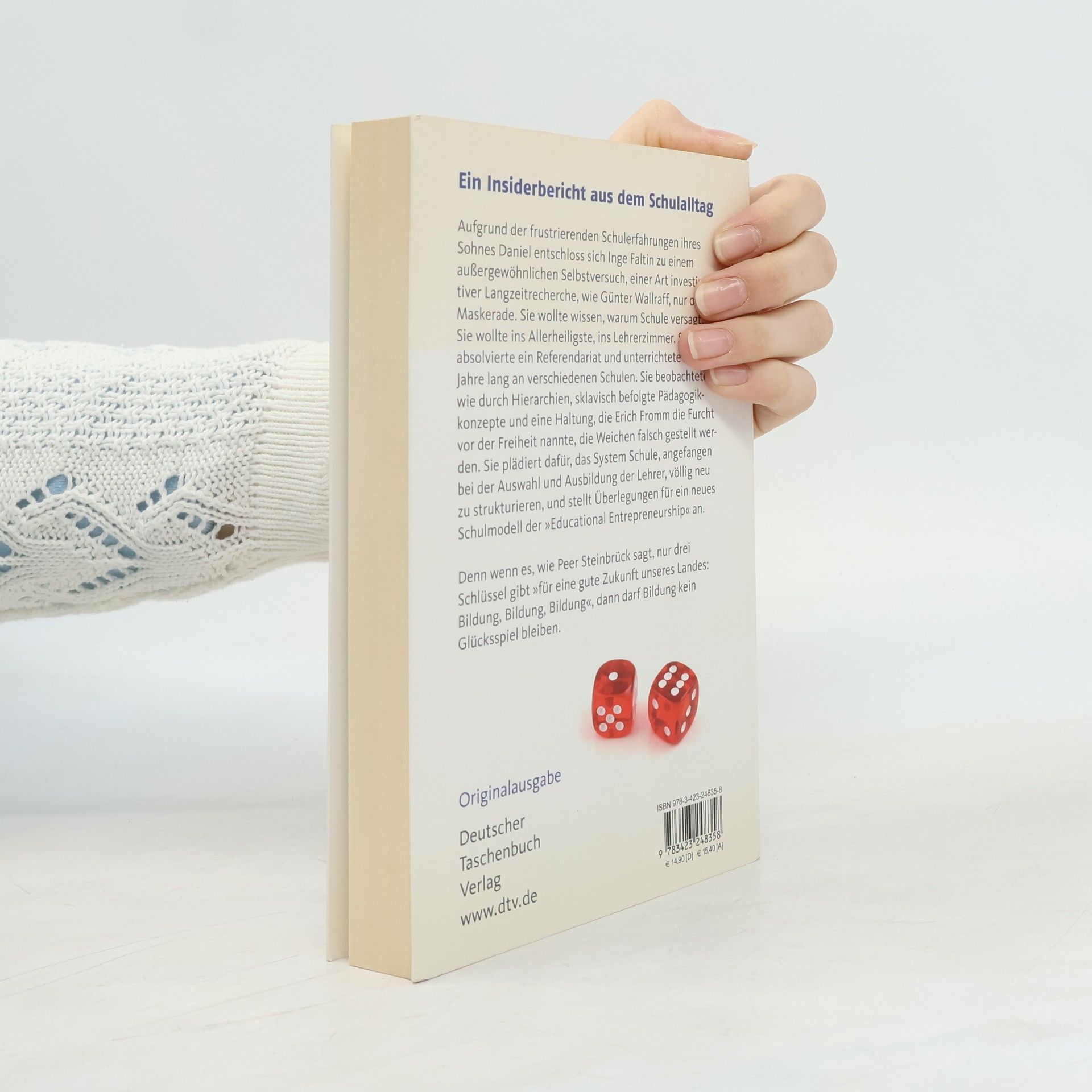 Ein Insiderbericht aus dem Schulalltag Fast immer fühlte Daniel Faltin sich der Schule ausgeliefert, in Jahren, die von Langeweile und dem Gefühl der Ungerechtigkeit und Willkür geprägt waren. Erst während eines Highschool-Jahres in den USA stellte er fest, dass Lernen Spaß machen kann, vorausgesetzt, man wird ernst genommen und ermutigt. Seine Mutter Inge Faltin entschloss sich zu einem ungewöhnlichen Selbstversuch, einer Art investigativer Langzeitrecherche, wie Günter Wallraff, nur ohne Maskerade. Sie absolvierte ein Referendariat und unterrichtete zehn Jahre lang an verschiedenen Schulen. Von Anfang an beobachtete sie, wie durch Hierarchien, sklavisch befolgte Pädagogikkonzepte und eine Haltung, die Erich Fromm die Furcht vor der Freiheit nennt, die Weichen falsch gestellt werden. Sie plädiert dafür, das System Schule, angefangen bei der Auswahl und Ausbildung der Lehrer, völlig neu zu denken. Sie fordert unter anderem: Kein »Referendariat« Kein Beamtenstatus Keine Unkündbarkeit Mehr Quereinsteiger Mehr Leadership Mehr Eigenverantwortung für alle