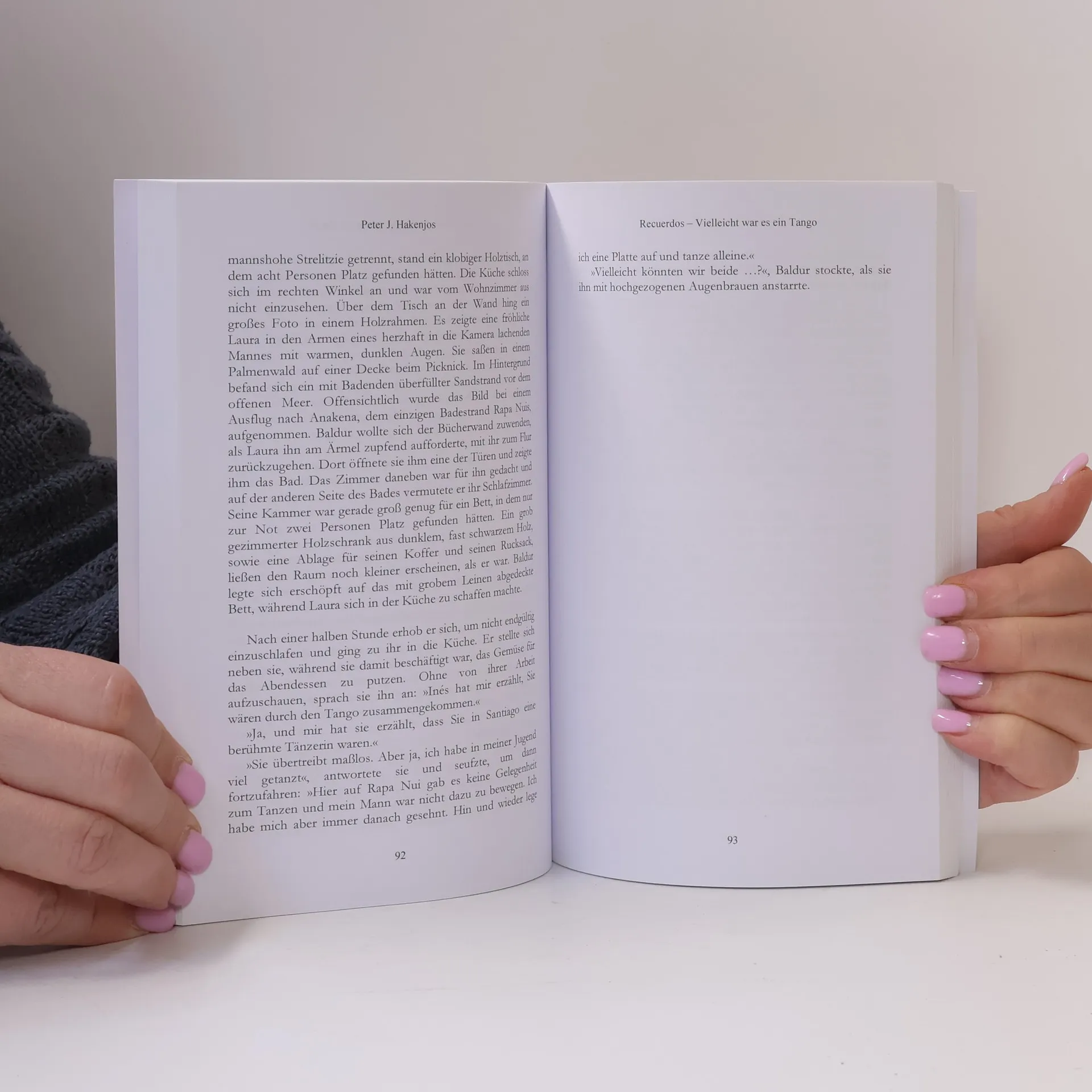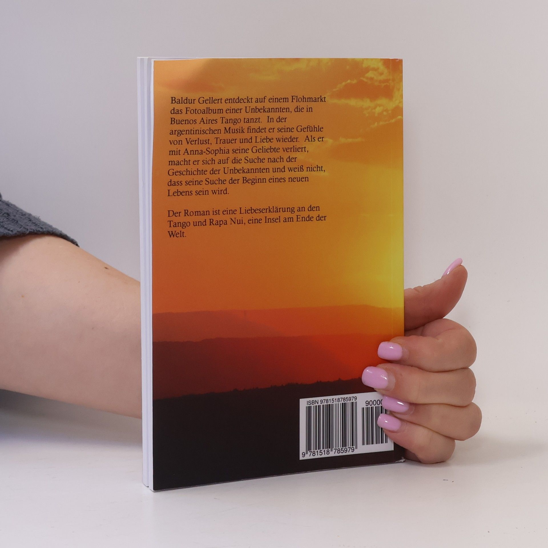 Baldur Gellert entdeckt auf einem Flohmarkt das Fotoalbum einer Unbekannten, die in Buenos Aires Tango tanzt. In der argentinischen Musik findet er seine Gefuhle von Verlust, Trauer und Liebe wieder. Als er mit Anna-Sophia seine Geliebte verliert, macht er sich auf die Suche nach der Geschichte der Unbekannten und weiss nicht, dass seine Suche der Beginn eines neuen Lebens sein wird. Der Roman ist eine Liebeserklarung an den Tango und Rapa Nui, eine Insel am Ende der Welt."