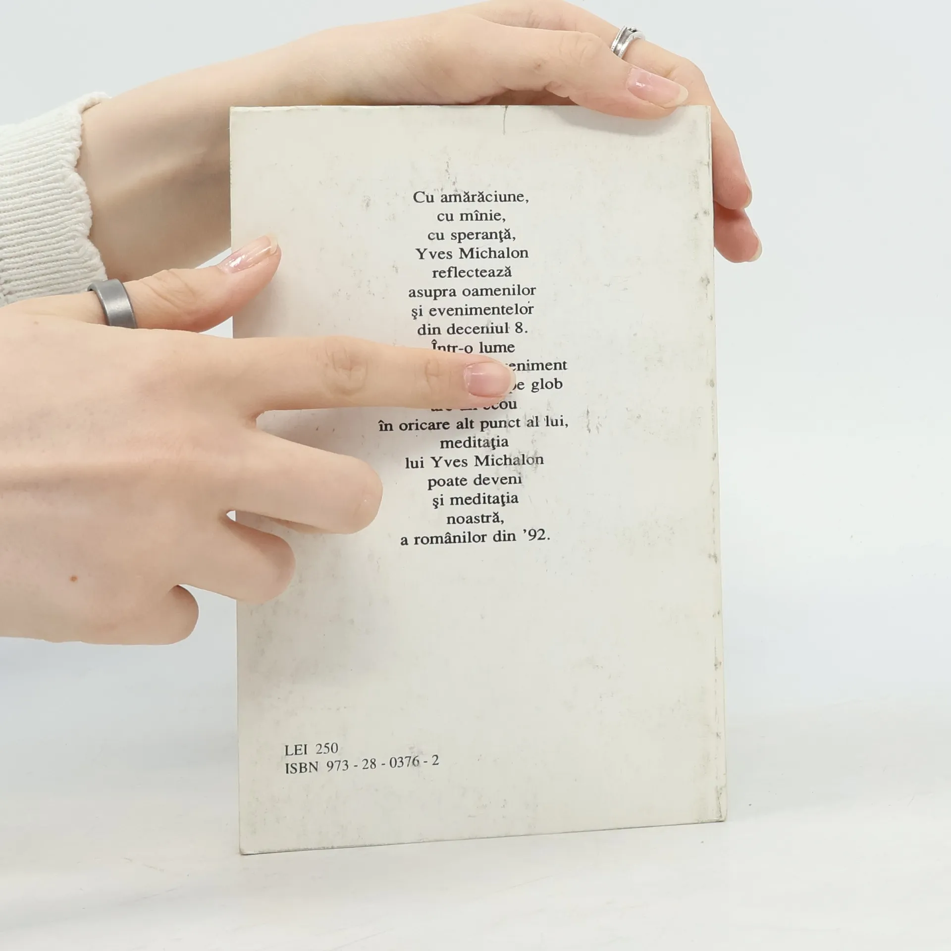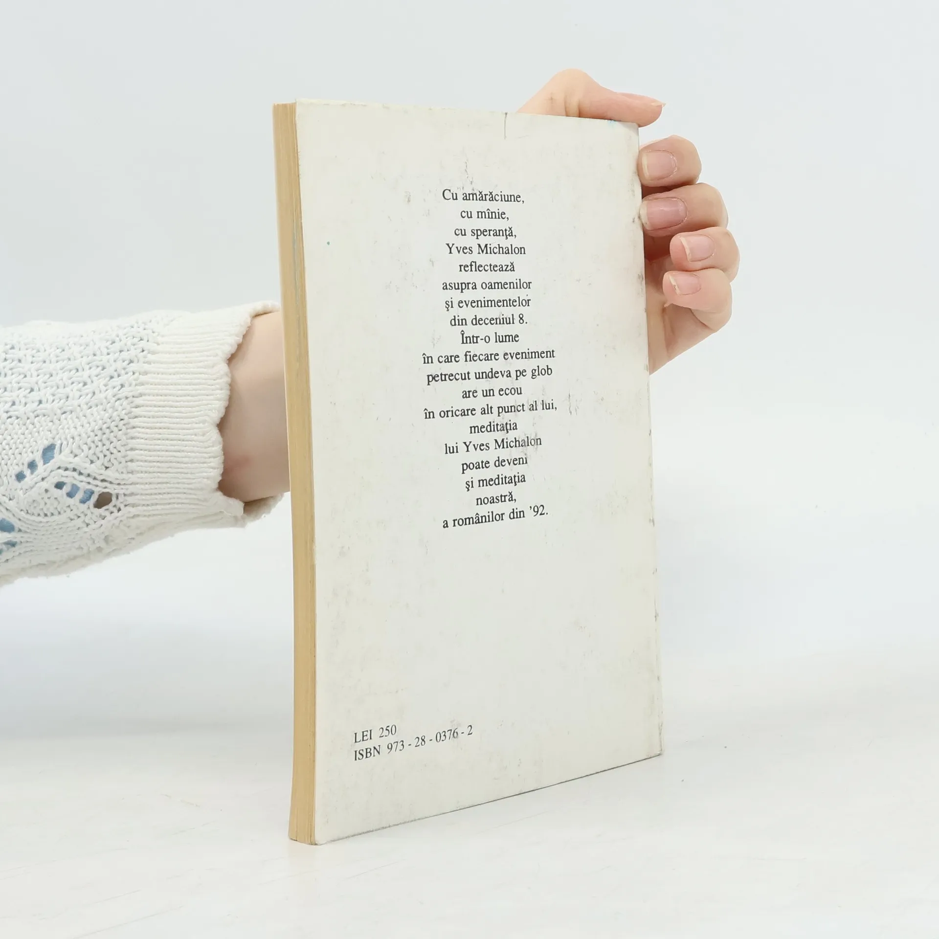 Cu amaraciune, cu manie, cu speranta, Yves Michalon reflecteaza asupra oamenilor si evenimentelor din deceniul 8. Intr-o lume in care fiecare eveniment petrecut undeva pe glob are un ecou in oricare alt punct al lui, meditatia lui Yves Michalon poate deveni si meditatia noastra, a romanilor.