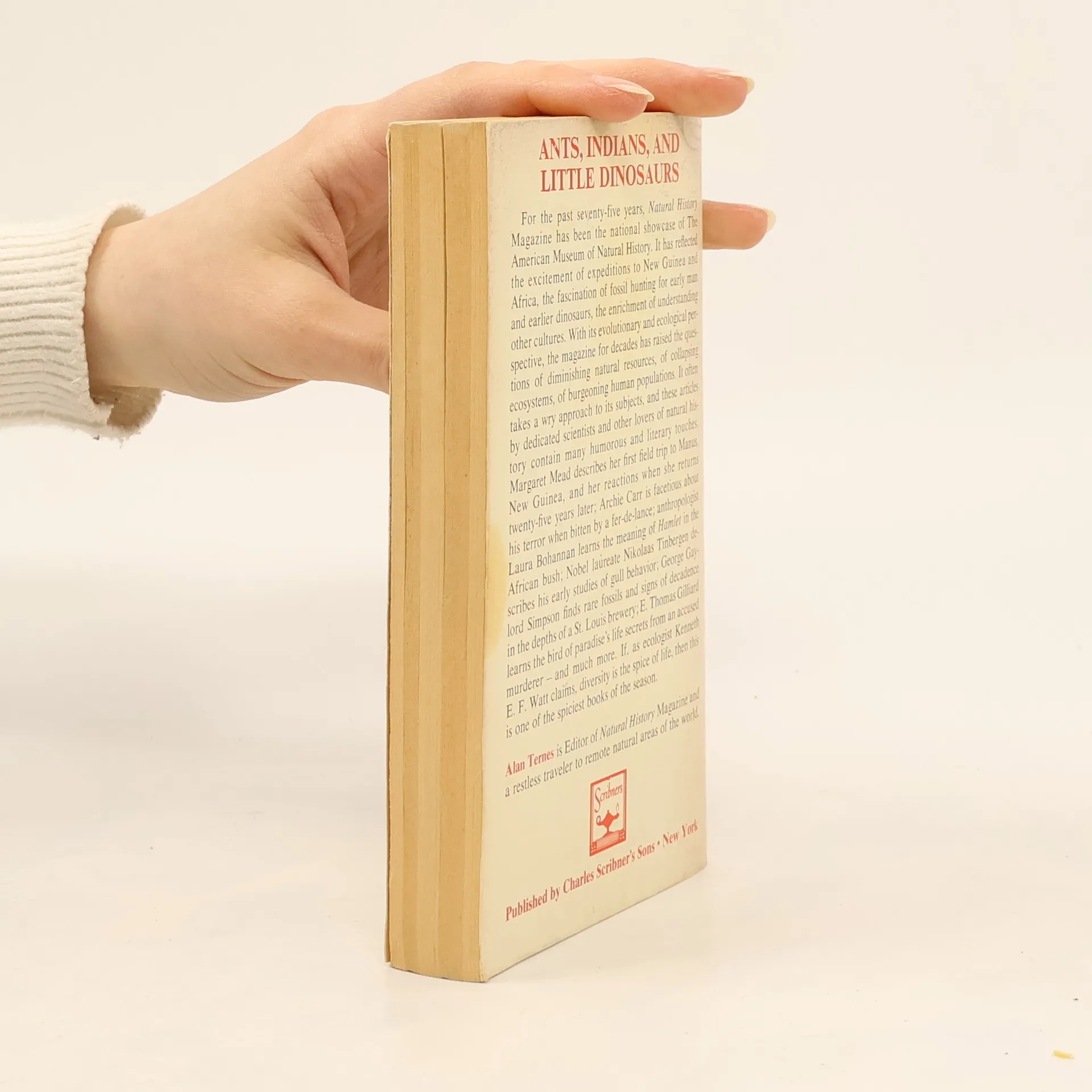 Ants, Indians, and Little Dinosaurs, Alan Ternes, Marston Bates, Archie Carr, J. Frank Dobie, Joseph Wood Krutch, Pierre Teilhard de Chardin, Margaret Mead, Paul R. Ehrlich, Theodore Roosevelt, Oliver La Farge, George Schaller, Victor B. Scheffer, Colin Macmillan Turnbull, Kenneth E. F. Watt, Edwin H. Colbert