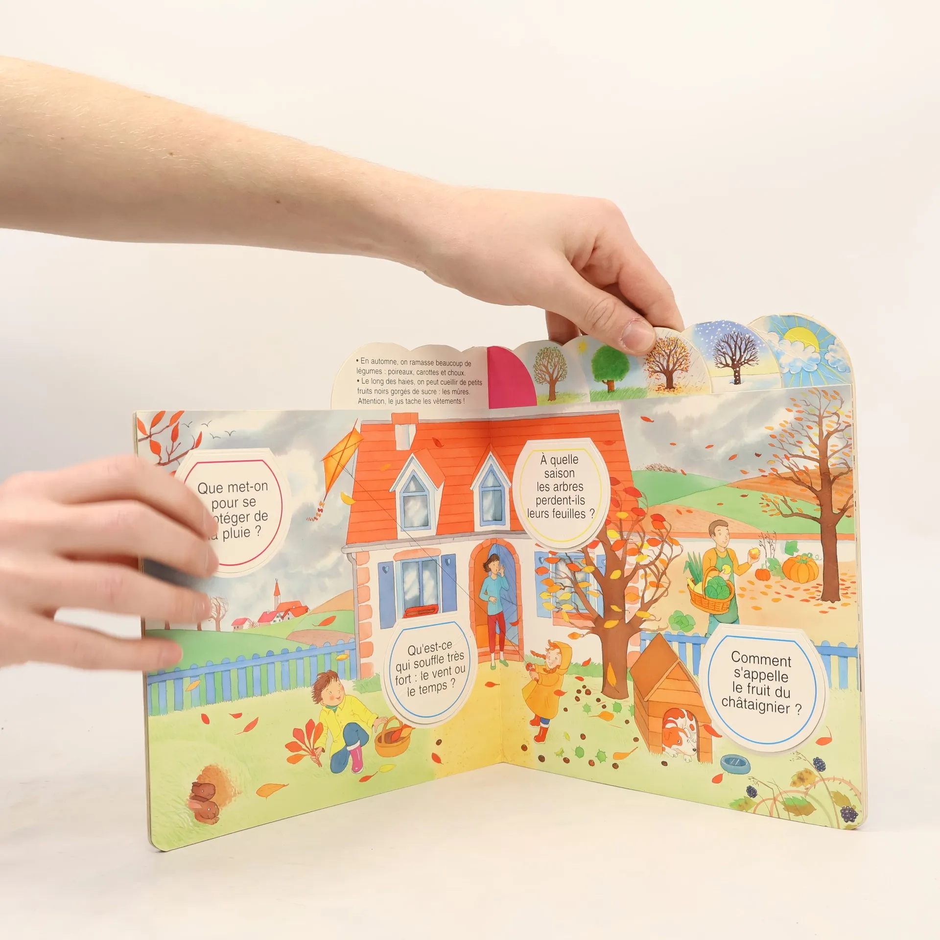Les petits secrets des saisons est un livre didactique et ludique à la fois. A chaque page, l'enfant participe activement : il doit répondre à des questions et vérifier sa réponse en soulevant un cache. Il découvre ainsi les saisons tout en s'amusant.