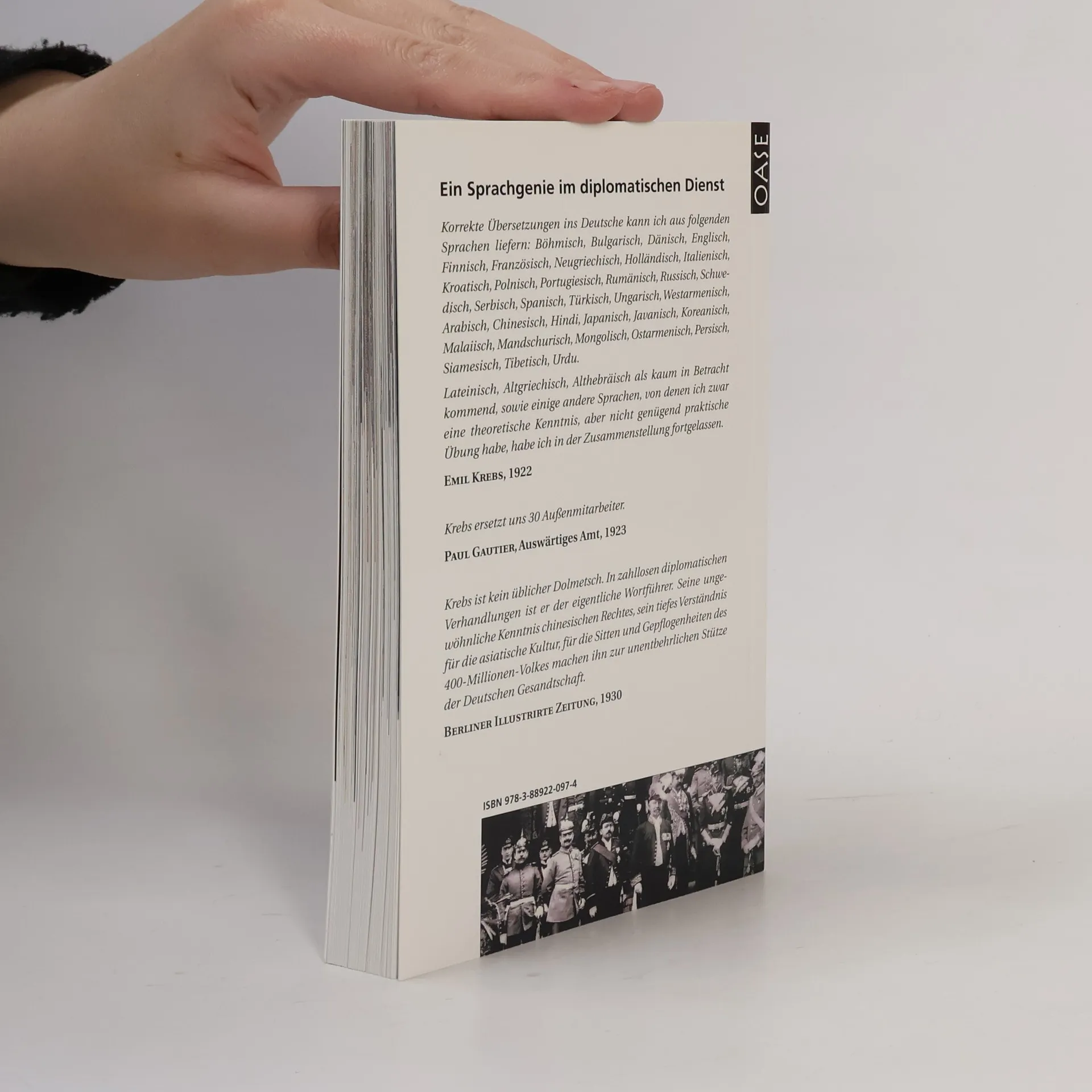 Im Zentrum des vorliegenden Bandes steht Emil Krebs, ein Mitarbeiter des Auswärtigen Amts, der zwischen 1893 und 1930 durch seine außergewöhnlichen Sprachkenntnisse herausragte. Er beherrschte nachweislich mehr als 60 Sprachen, wobei seine Leidenschaft für Sprachen nicht dem Streben nach Ruhm oder Rekorden galt, sondern dem Verständnis der menschlichen Sprache. Krebs wollte nicht nur kommunizieren, sondern auch die Struktur und „Philosophie hinter der Sprache“ erfassen. Kommunikation ist bis heute die Grundlage aller Diplomatie, und Sprachkenntnisse sind eine Schlüsselqualifikation im Auswärtigen Dienst. Bereits 1887 erkannte das Auswärtige Amt die Bedeutung von Dolmetschern und Übersetzern und gründete ein Seminar für Orientalische Sprachen. Mit der Einrichtung eines organisierten Sprachendienstes 1921 wurde die Dolmetsch- und Übersetzungskunst zunehmend professionalisiert, unterstützt durch Studiengänge an Hochschulen. Herausgeber Peter Hahn hat ein historisch und inhaltlich relevantes Buch zusammengestellt, während Eckhard Hoffmann, der Großneffe von Emil Krebs, umfangreiche Materialien und eigene Forschungen beigesteuert hat. Zudem hat er Kollegen des Sprachendienstes zu weiteren Untersuchungen angeregt, die zu Ausstellungen über das Sprachgenie Krebs und zu diesem Buch führten.