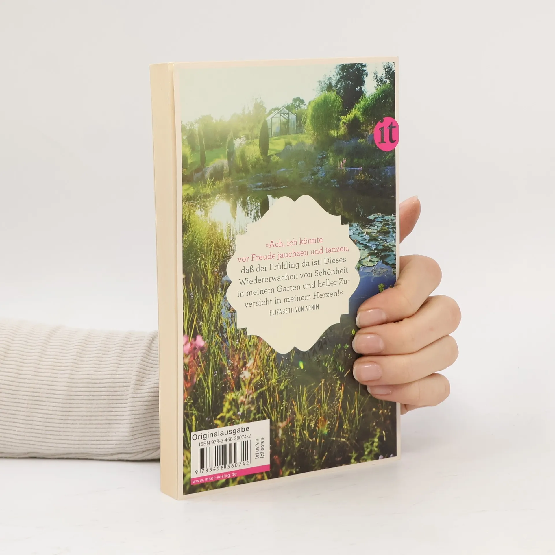 Ach, ich könnte vor Freude jauchzen und tanzen, dass der Frühling da ist! Dieses Wiedererwachen von Schönheit in meinem Garten und heller Zuversicht in meinem Herzen! Ihr Garten machte Elizabeth von Arnim glücklich, sie frönte der herrlichen Pracht der Blüten und feierte die Sinnesfreuden der Natur. Dabei ist der Garten für sie auch eine große Spielwiese: Der grüne Daumen übernimmt die Regie, die Hände graben emsig in der Erde, es werden Rabatten bepflanzt und Beete gejätet. Genau so sehr aber schätzt sie ihn als Ruhestatt und Rückzugsort, um sich vor ungeliebten Mitmenschen, übellaunigen Ehemännern, kauzigen Bekannten und eitlen Besuchern in Sicherheit zu bringen – und sich allein der Schönheit des Lebens hinzugeben … »Was bin ich doch für eine glückliche Frau, dass ich in einem Garten lebe, mit Büchern, Kindern, Vögeln und Blumen und reichlich Muße, all das zu genießen!«