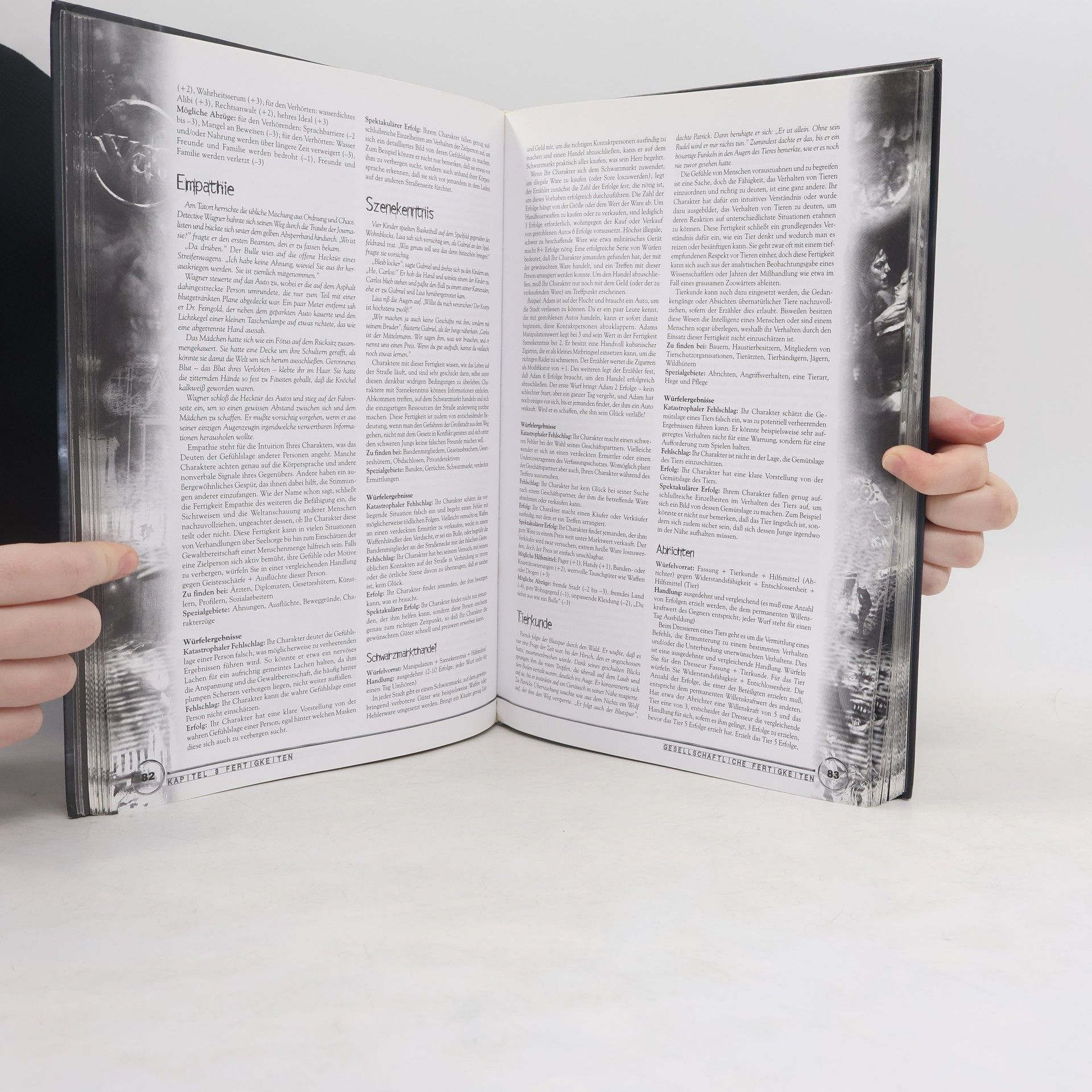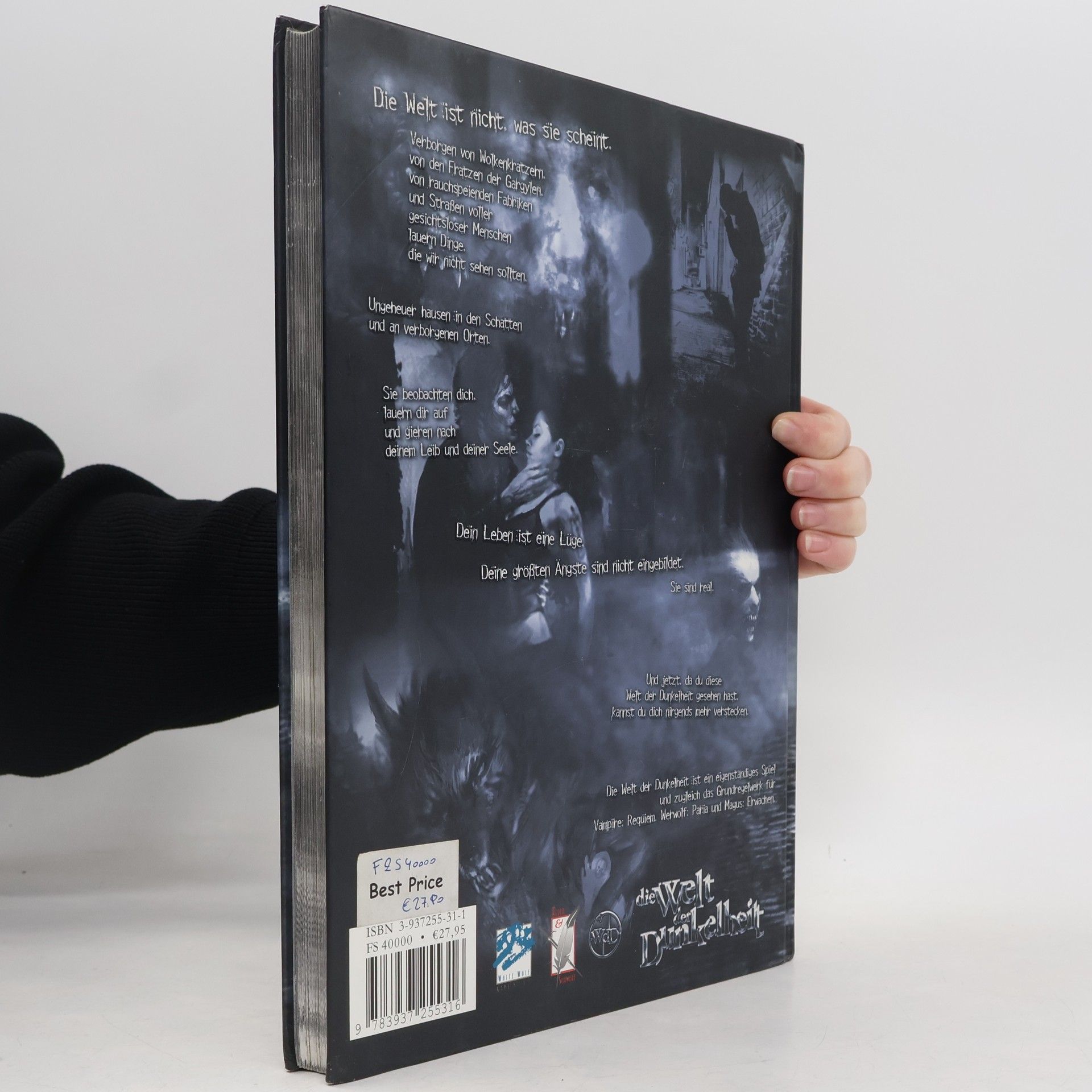Dies ist das Grundregelwerk für "Die Welt der Dunkelheit". Auf ihm basieren die Spiele "Vampire: Requiem", "Werwolf: Paria" und "Magus: Erwachen". Was man zur Erschaffung eines normalen Menschen in der Welt der Dunkelheit benötigt findet man hier. Sämtliche Werte, Regelerklärungen und die komplette Charaktererschaffung sind für Neueinsteiger leicht verständlich dargestellt.