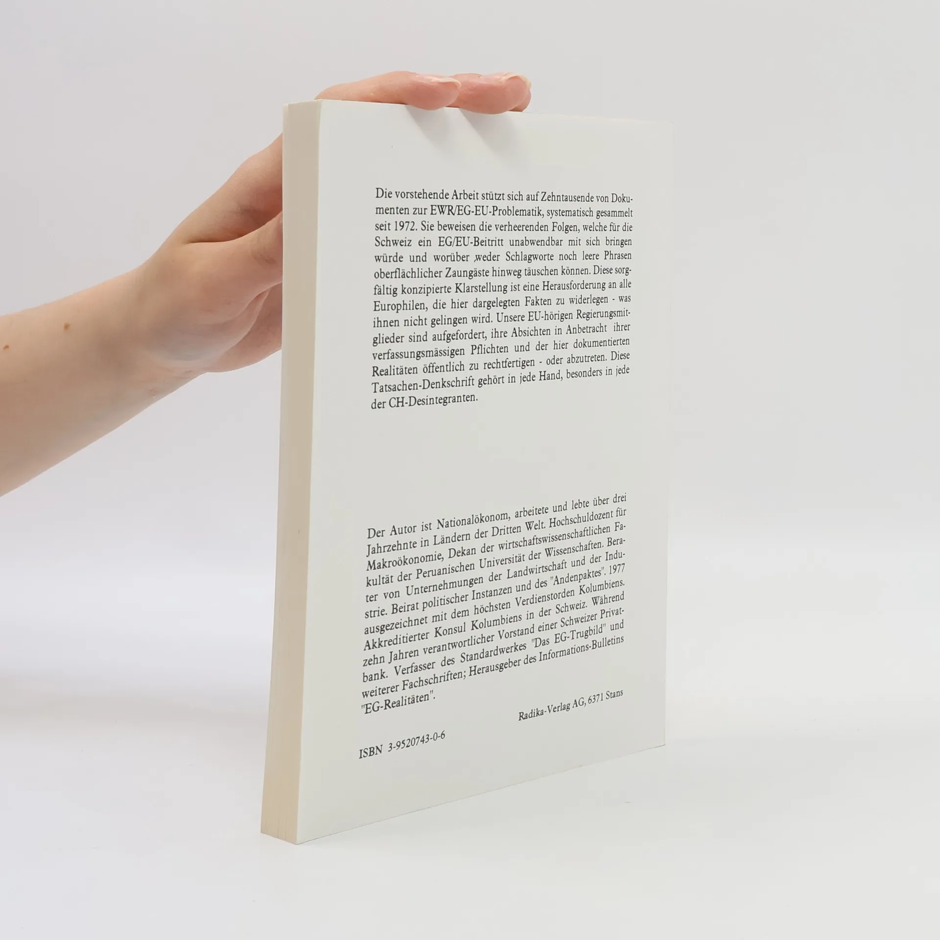 Die vorstehende Arbeit stützt sich auf Zehntausende von Dokumenten zur EWR/EG-EU-Problematik, systematisch gesammelt seit 1972
