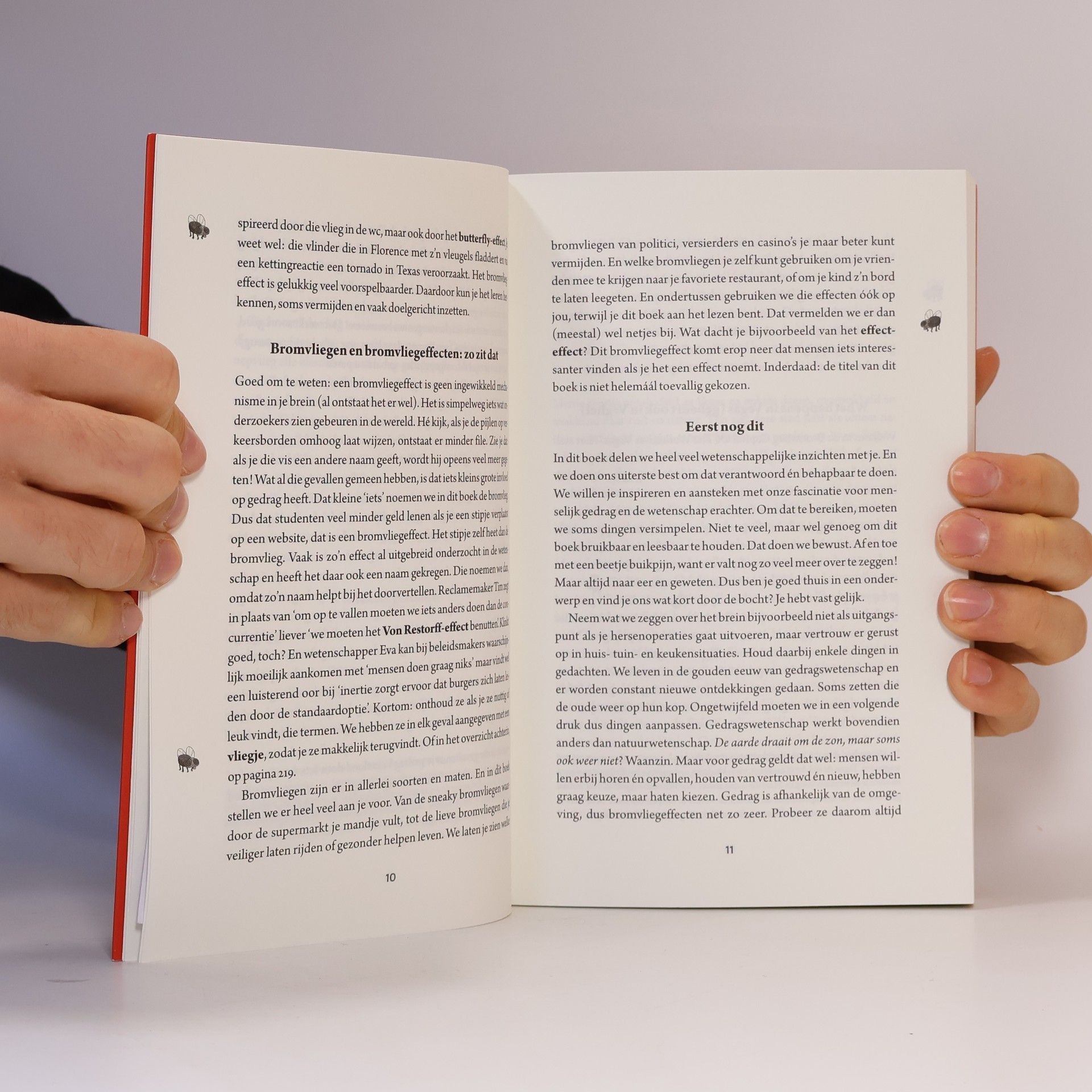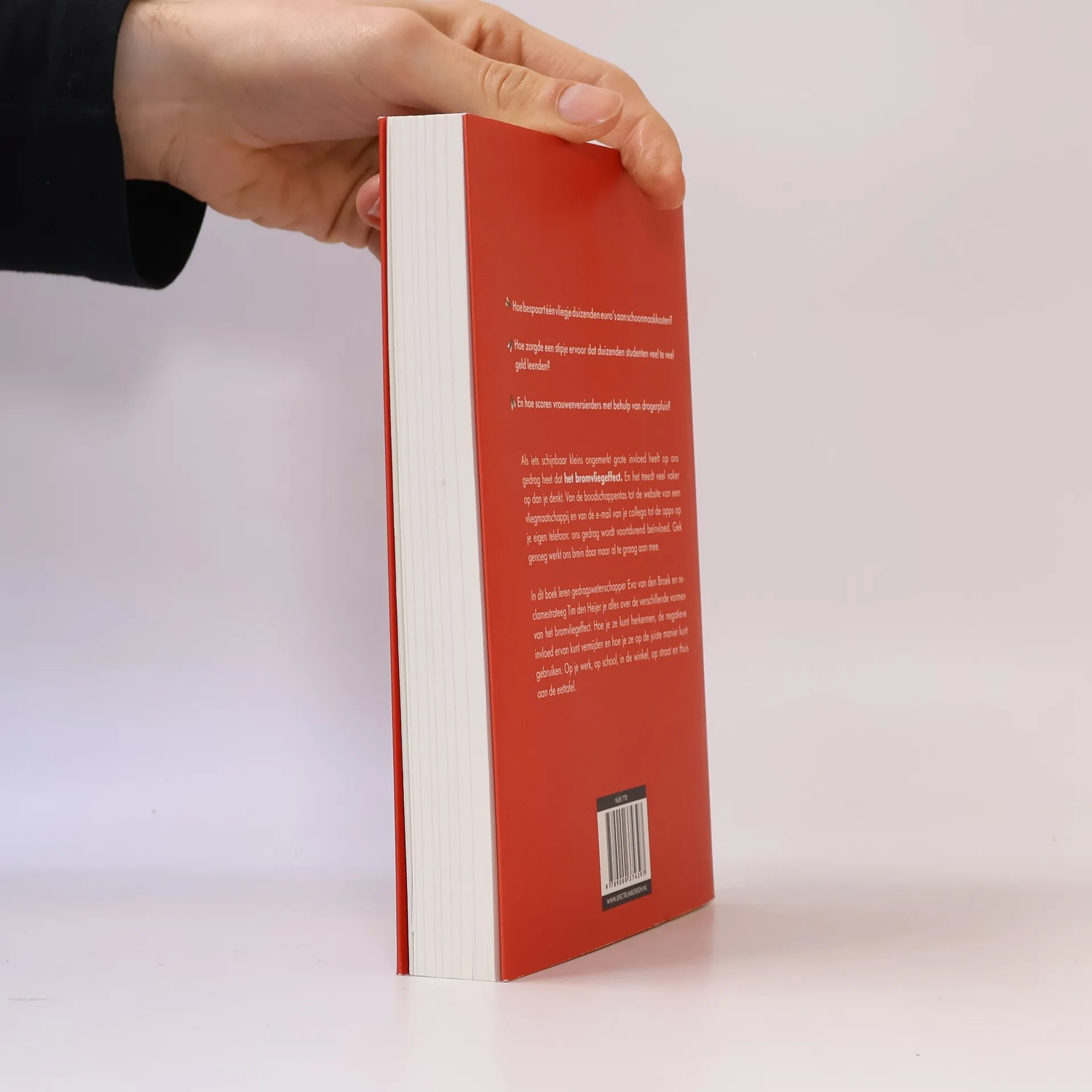 Het bromvliegeffect: kleine dingen met grote invloed op onze keuzes• Hoe bespaart een vliegje in een wc duizenden euro’s aan schoonmaakkosten?• Hoe zorgde een stipje ervoor dat duizenden Nederlandse studenten veel te veel geld leenden?• En hoe scoren vrouwenversierders met behulp van drogerpluis?Als iets schijnbaar kleins ongemerkt grote invloed heeft op ons gedrag heet dat het bromvliegeffect. En het treedt veel vaker op dan je denkt.Gedragswetenschapper Eva van den Broek en reclamestrateeg Tim den Heijer leren je de verschillende vormen van het bromvliegeffect te herkennen, de negatieve invloed ervan te vermijden en het op een goede manier te gebruiken. Op je werk, op school, in de winkel, op straat én thuis.