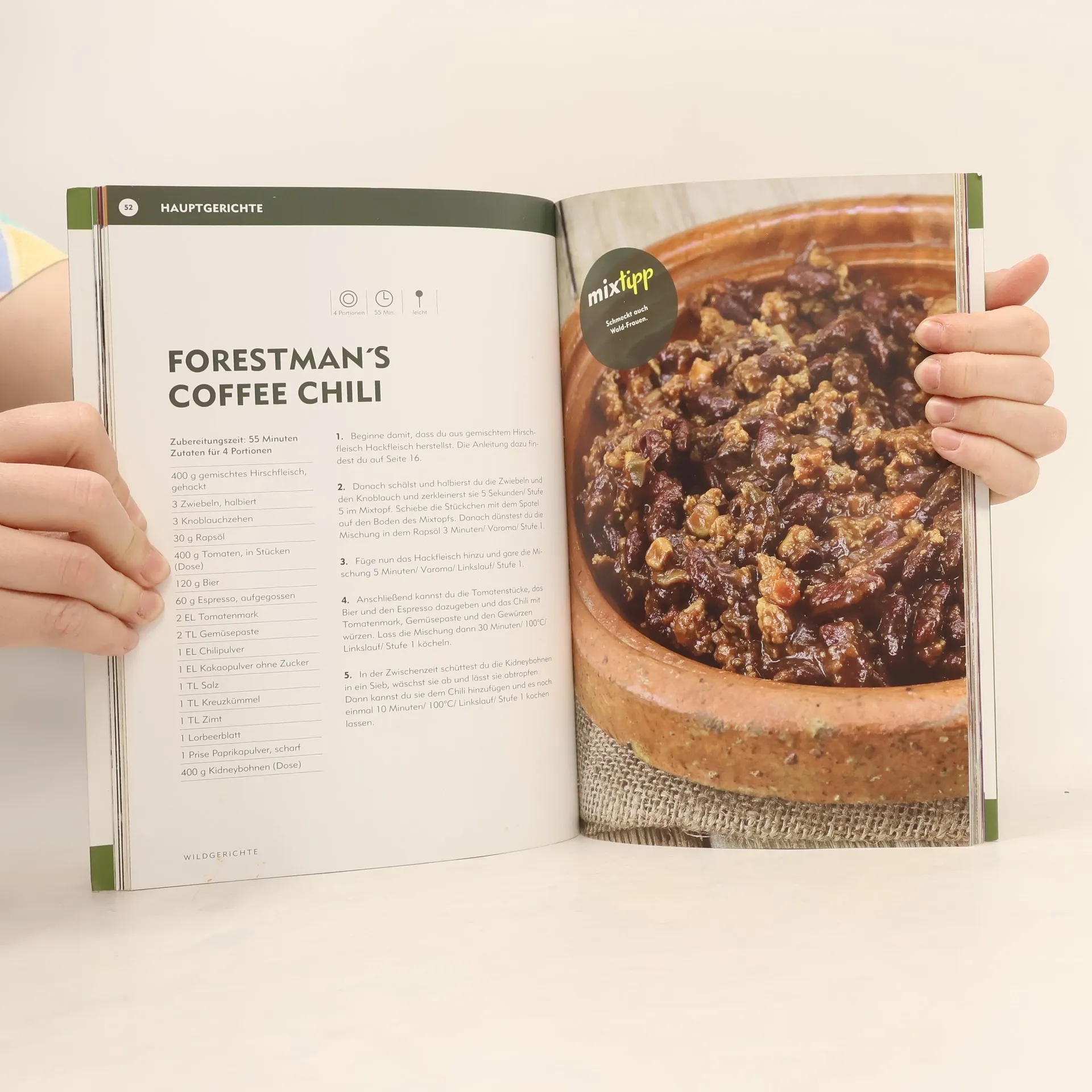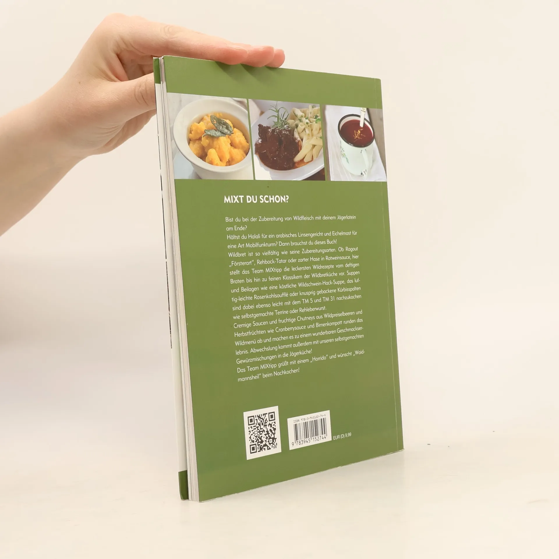 Bist du bei der Zubereitung von Wildfleisch mit deinem Jägerlatein am Ende? Hältst du Halali für ein arabisches Linsengericht und Eichelmast für eine Art Mobilfunkturm? Dann brauchst du dieses Buch! Wildbret ist so vielfältig wie seine Zubereitungsarten. Ob Ragout "Försterart", Rehbock-Tatar oder zarter Hase in Rotweinsauce, hier stellt das Team MIXtipp die leckersten Wildrezepte vom deftigen Braten bis hin zu feinen Klassikern der Wildbretküche vor. Suppen und Beilagen wie eine köstliche Wildschwein-Hack-Suppe, das luftig-leichte Rosenkohlsoufflé oder knusprig gebackene Kürbisspalten sind dabei ebenso leicht mit dem TM 5 und TM 31 nachzukochen wie selbstgemachte Terrine oder Rehleberwurst. Cremige Saucen und fruchtige Chutneys aus Wildpreiselbeeren und Herbstfrüchten wie Cranberrysauce und Birnenkompott runden das Wildmenü ab und machen es zu einem wunderbaren Geschmackserlebnis. Abwechslung kommt außerdem mit unseren selbstgemachten Gewürzmischungen in der Jägerküche! Das Team MIXtipp grüßt mit einem "Horrido" und wünscht "Waidmannsheil" beim Nachkochen!l