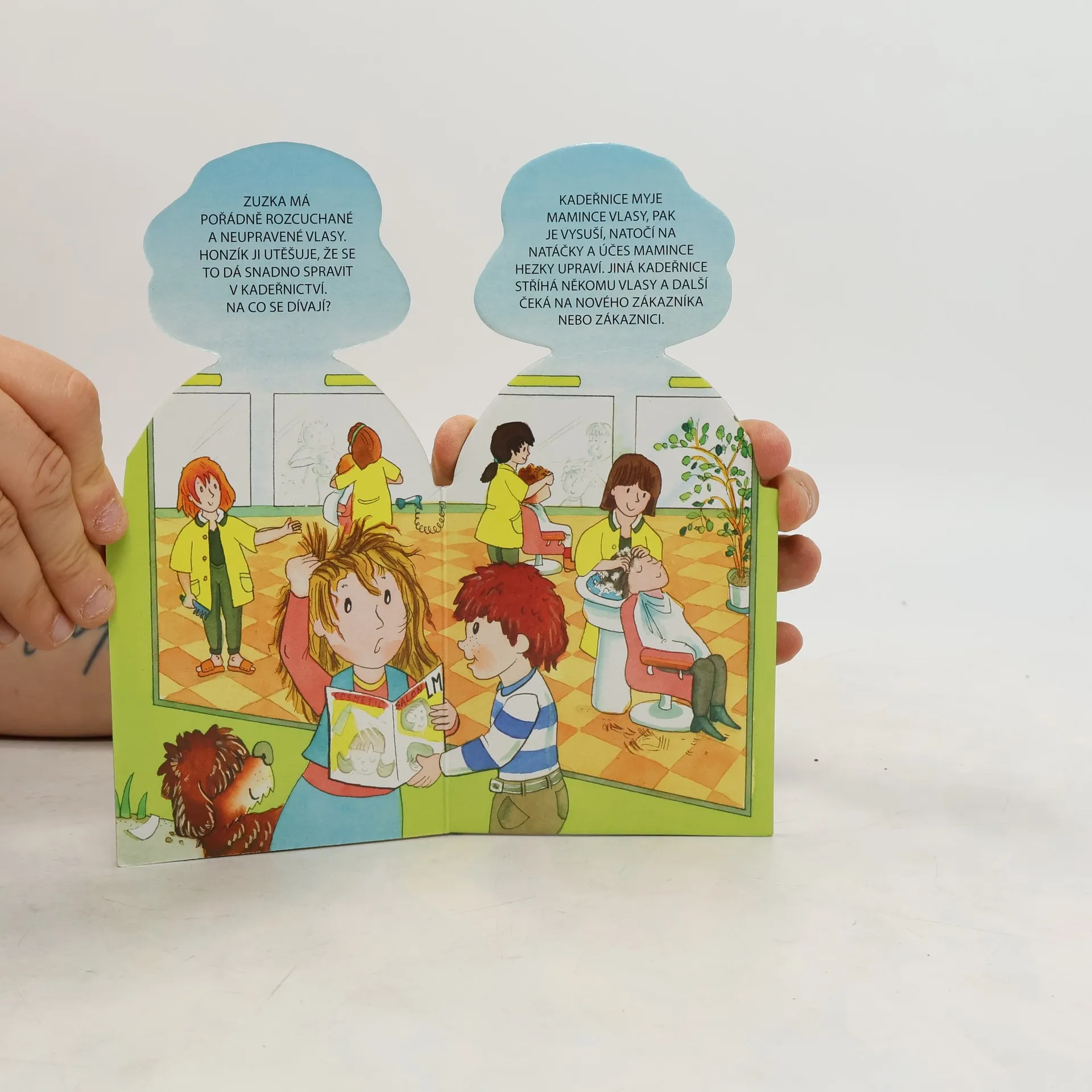 Nové leporelo knížkového formátu s motivem povolání vyseknuté do tvaru postavy.V knize najdete popis věcí, s kterými kadeřnice pracuje i popis její činnosti.
