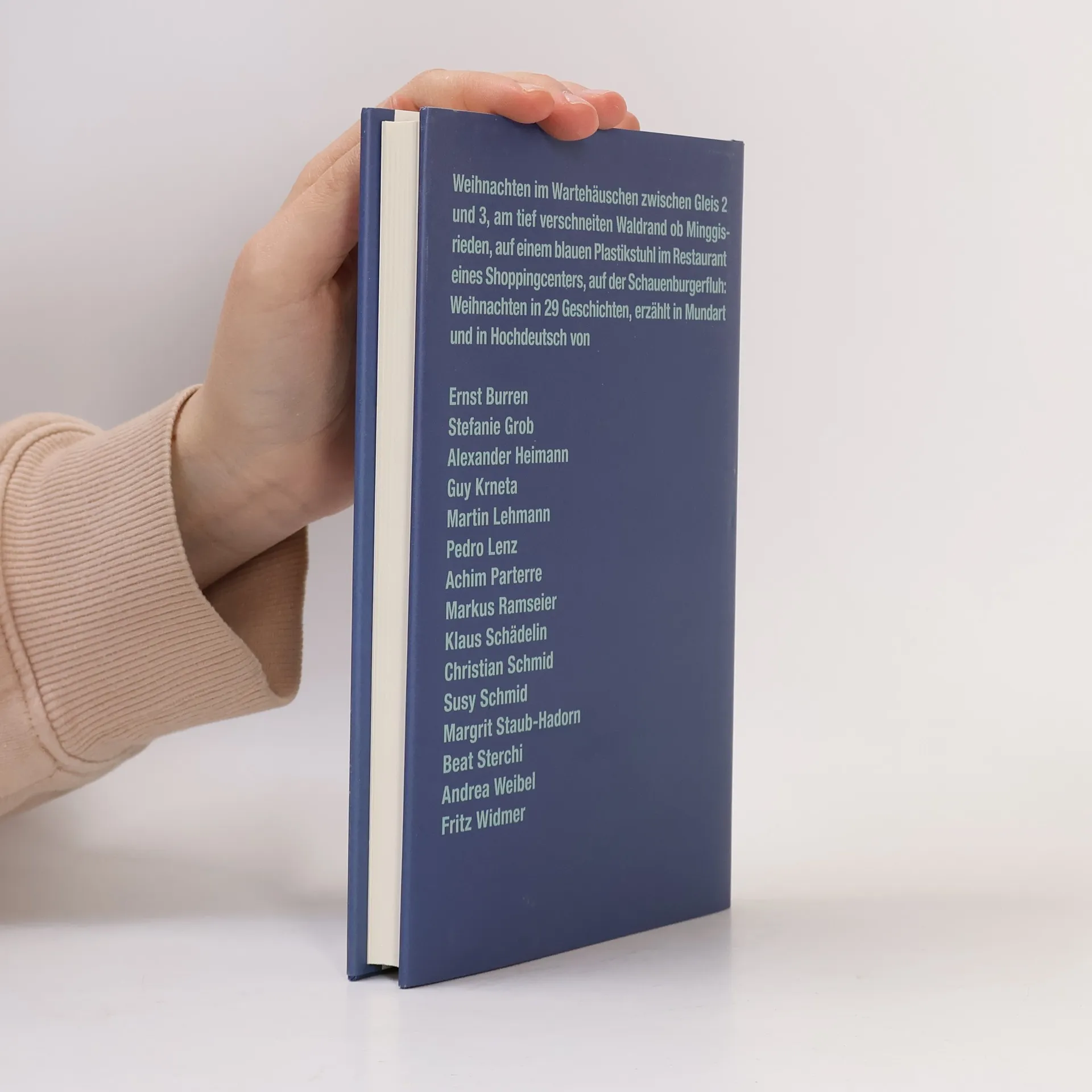 Haben Sie auf dem Weg zur Familienfeier den Zug verpasst? Dann setzen Sie sich zum Mann im Wartehäuschen. Das mag kein besonders schöner Ort sein, um Weihnachten zu feiern, aber die Hirten von Bethlehem wussten auch nicht, dass das Fest in einem Stall stattfindet. Und vergessen Sie die Uhrzeit. Hirten lassen sich nicht von Taktfahrplänen unter Druck setzen. Weihnachten im Wartehäuschen zwischen Gleis 2 und 3, am tief verschneiten Waldrand ob Minggisrieden, auf einem blauen Plastikstuhl im Restaurant eines Shoppingcenters, auf der Schauenburgerfluh: Weihnachten in 29 Geschichten, erzählt in Mundart und in Hochdeutsch von 15 Schweizer Autorinnen und Autoren: Ernst Burren, Stefanie Grob, Alexander Heimann, Guy Krneta, Martin Lehmann, Pedro Lenz, Achim Parterre, Markus Ramseier, Klaus Schädelin, Christian Schmid, Susy Schmid, Margrit Staub-Hadorn, Beat Sterchi, Andrea Weibel, Fritz Widmer. Nachdruck im September 2024