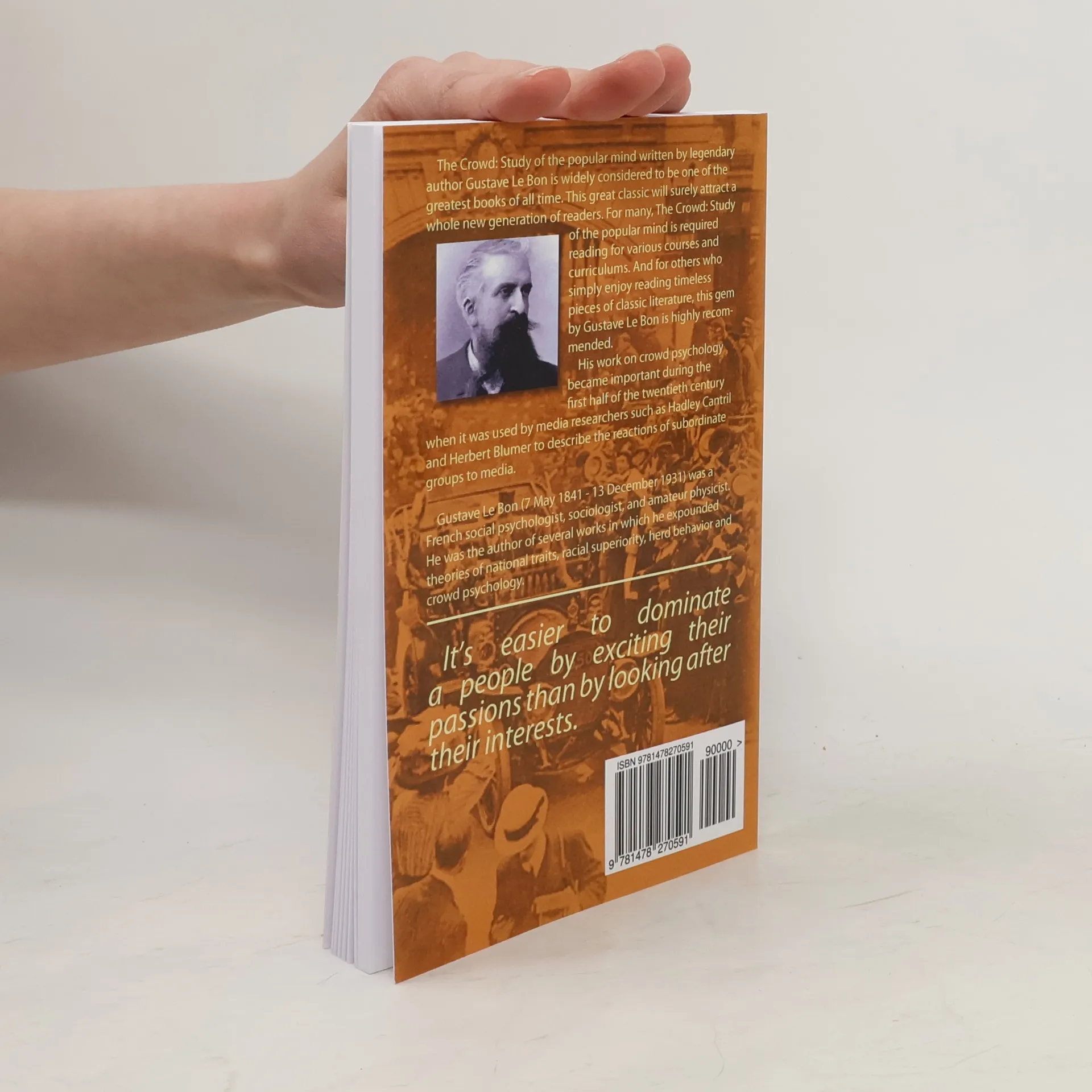 The Crowd: Study of the popular mind written by legendary author Gustave Le Bon is widely considered to be one of the greatest books of all time. This great classic will surely attract a whole new generation of readers. For many, The Crowd: Study of the popular mind is required reading for various courses and curriculums. And for others who simply enjoy reading timeless pieces of classic literature, this gem by Gustave Le Bon is highly recommended. His work on crowd psychology became important during the first half of the twentieth century when it was used by media researchers such as Hadley Cantril and Herbert Blumer to describe the reactions of subordinate groups to media.
