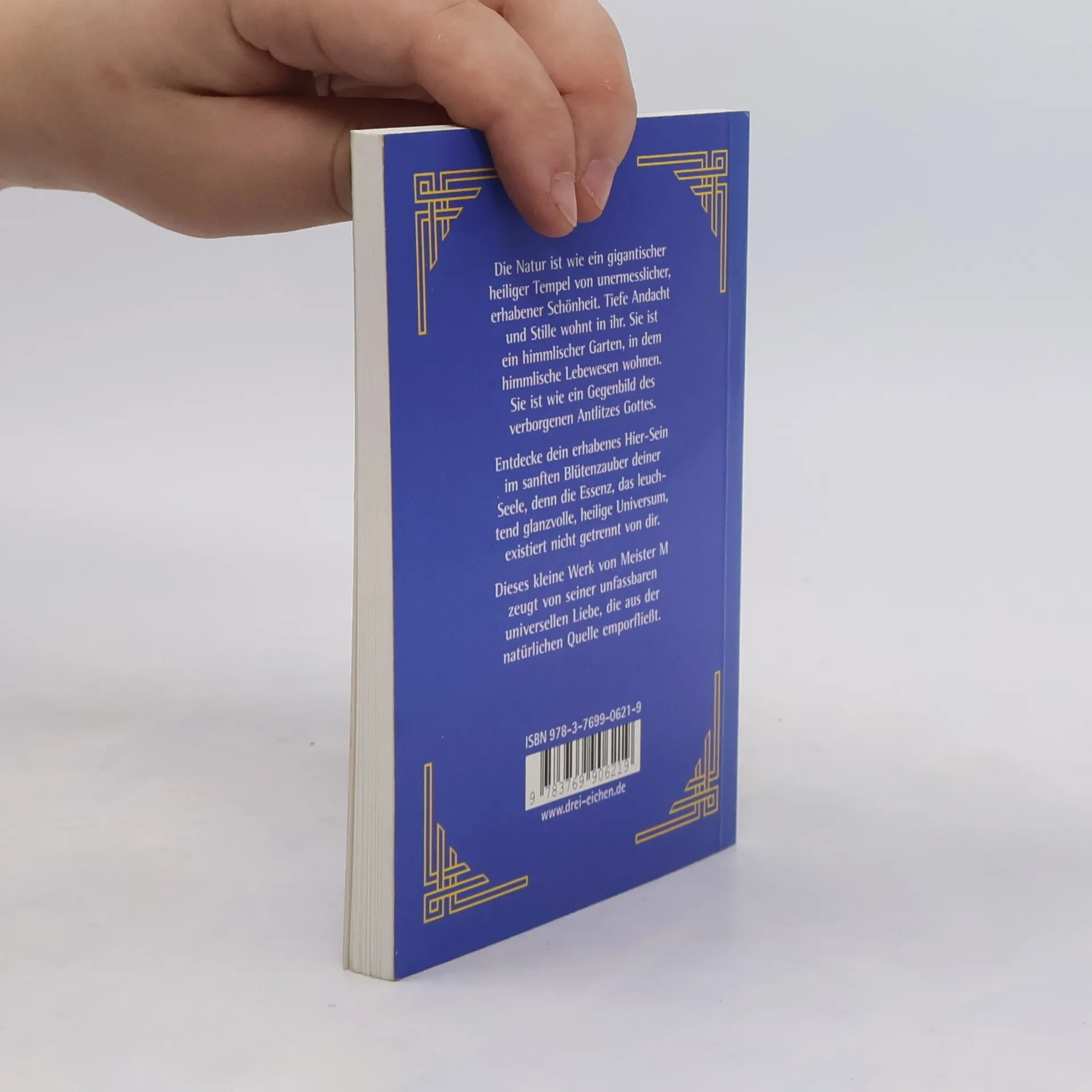 Die Natur ist wie ein gigantischer heiliger Tempel von unermesslicher, erhabener Schönheit. Tiefe Andacht und Stille wohnt in ihr. Sie ist ein himmlischer Garten, in dem himmlische Lebewesen wohnen. Sie ist wie ein Gegenbild des verborgenen Antlitzes Gottes. Entdecke dein erhabenes Hier-Sein im sanften Blütenzauber deiner Seele, denn die Essenz, das leuchtend glanz- volle, heilige Universum, existiert nicht getrennt von dir. Dieses kleine Werk von Meister M zeugt von seiner unfassbaren universellen Liebe, die aus der natürlichen Quelle emporfließt.