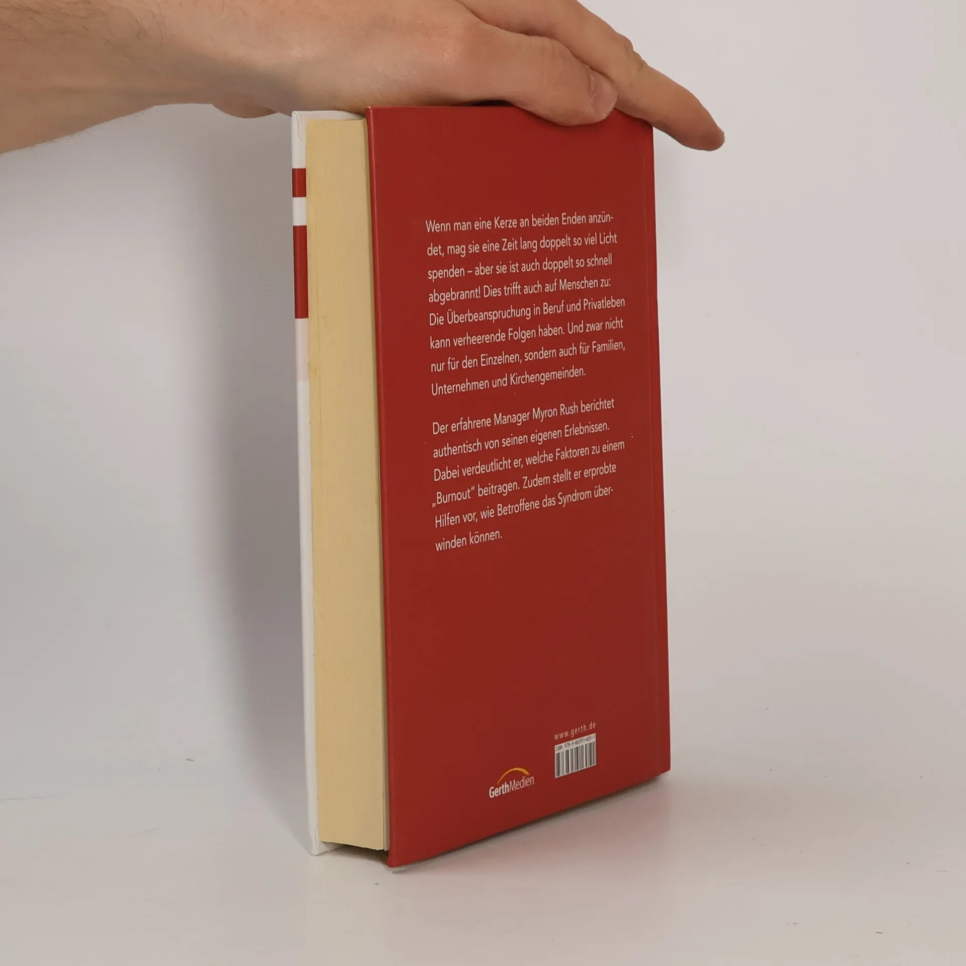 Wenn man eine Kerze an beiden Enden anzündet, mag sie eine Zeit lang doppelt so viel Licht spenden - aber sie ist auch doppelt so schnell abgebrannt! Dies trifft auch auf Menschen zu: Die Überbeanspruchung in Beruf und Privatleben kann verheerende Folgen haben. Und zwar nicht nur für den Einzelnen, sondern auch für Familien, Unternehmen und Kirchengemeinden. Der erfahrene Manager Myron Rush berichtet authentisch von seinen eigenen Erlebnissen. Dabei verdeutlicht er, welche Faktoren zu einem solchen „Burnout“ beitragen. Zudem stellt erprobte Hilfen vor, wie Betroffene das Syndrom überwinden können.