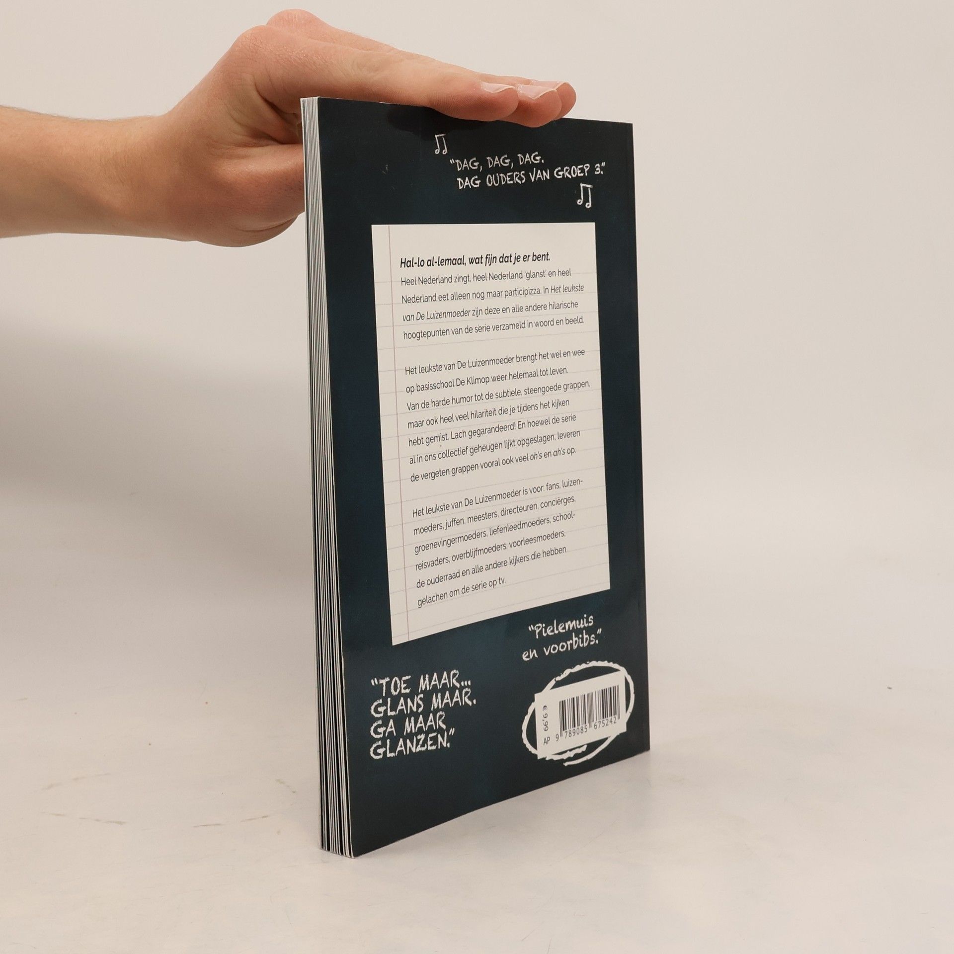 Hal-lo al-lemaal, wat fijn dat je er bent. De Luizenmoeder is zo’n televisieserie die blijft hangen. Heel Nederland zingt, heel Nederland eet alleen nog maar participizza en dikke kans dat we straks Winterklaas vieren. In The best of De Luizenmoeder zijn de hilarische hoogtepunten van de serie verzameld in woord en beeld. The best of… De Luizenmoeder brengt het wel en wee op basisschool De Klimop in de vorm van lachwekkende fotostrips weer helemaal tot leven. (glim)lach gegarandeerd! En hoewel de serie al in ons collectief geheugen lijkt opgeslagen leveren de vergeten grappen vooral ook veel oh’s en ah’s op.