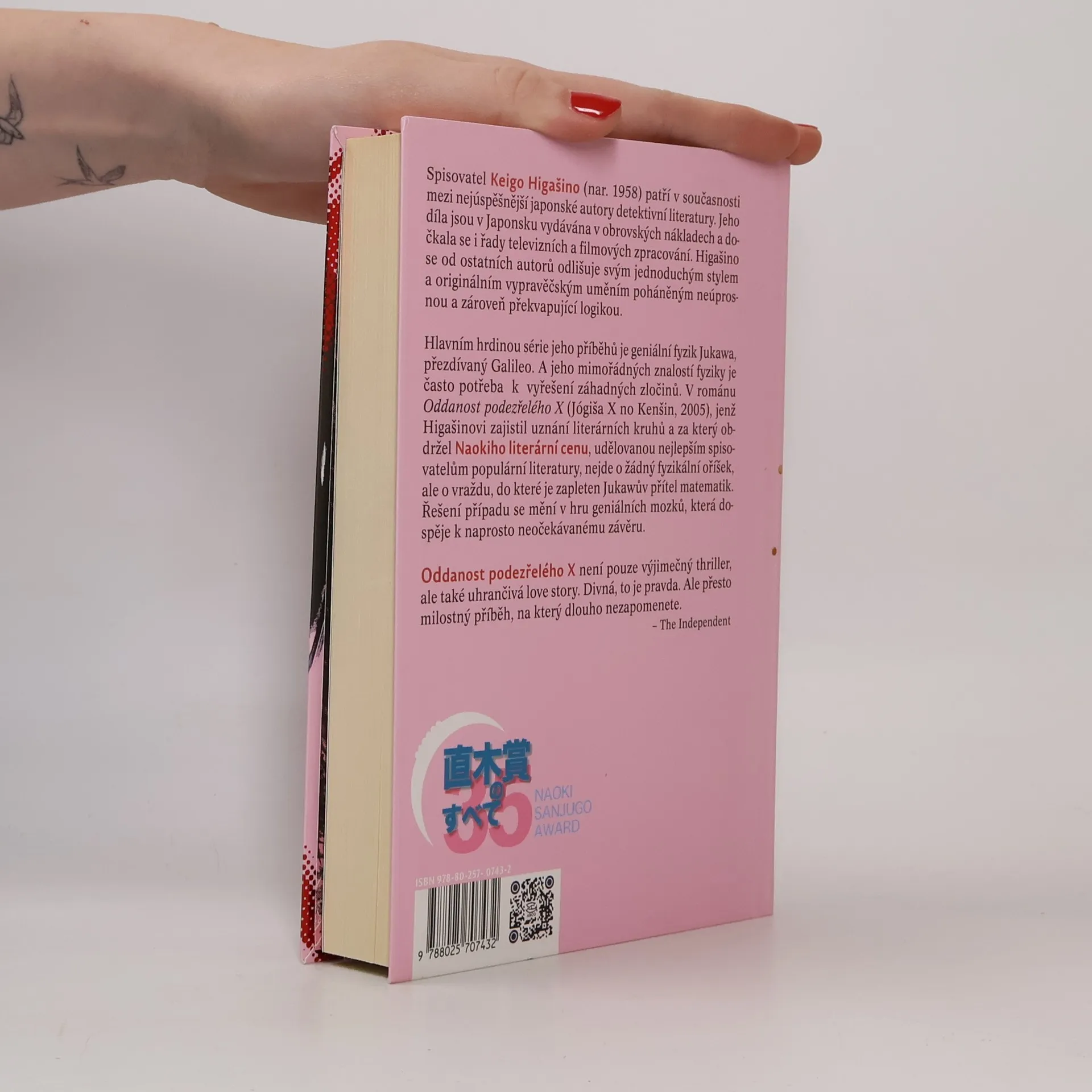 Román Oddanost podezřelého X prozaika Keiga Higašina vypráví příběh Jasuko, která v sebeobraně zavraždila svého bývalého manžela. Všechny stopy se jí snaží pomoci zahladit soused Tecuja Išigami, geniální matematik, jenž je do ní bezmezně zamilován. K vyšetřování zločinu je však přizván profesor Manabu Jukawa, Išigamiho přítel ze studií. Jukawa, známý též pod přezdívkou Galileo, postupně odkrývá pravdu, a to navzdory přerušenému vyšetřování ze strany policie. Román získal několik japonských literárních cen včetně prestižní Naokiho ceny pro spisovatele populární literatury. MEDAILONEK SPISOVATELE: Keigo Higašino (nar. 1958) patří v současnosti k nejčtenějším japonským spisovatelům. Proslavil se hlavně příběhy žánru "mystery", v nichž se často dotýká i společenské problematiky. Původně pracoval jako technik ve firmě Denso, avšak po úspěchu svého prvního románu Po škole (Hókago, 1985) se začal ve svých 27 letech naplno věnovat tvůrčímu psaní. Mezi jeho neznámější romány patří díla Tajemství (Himicu, 1998), Bílá noc (Bjakujakó, 1999) nebo Oddanost podezřelého X (Jógiša X no kenšin, 2005), za který Higašino získal významnou Naokiho cenu, udělovanou spisovatelům populární literatury. Za svá díla obdržel i mnohá jiná ocenění a důkazem jeho oblíbenosti je rovněž fakt, že většina jeho románů a povídek se dočkala filmového nebo televizního zpracování.