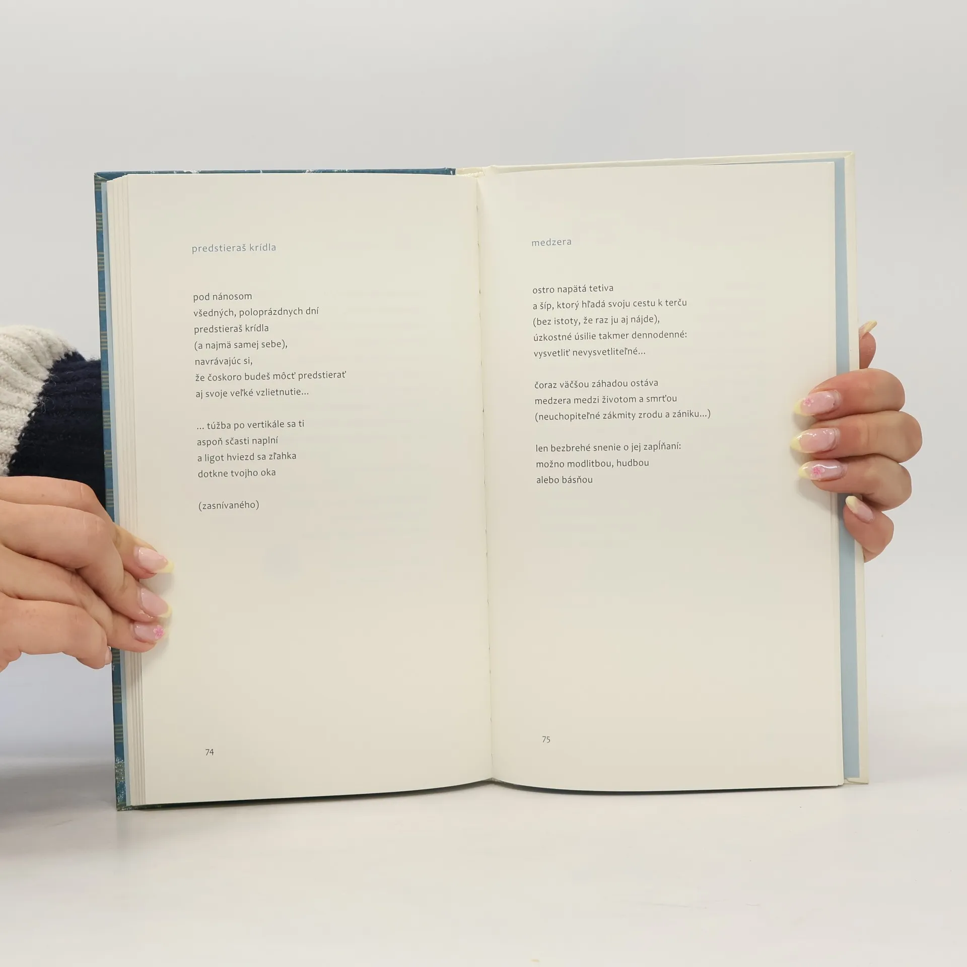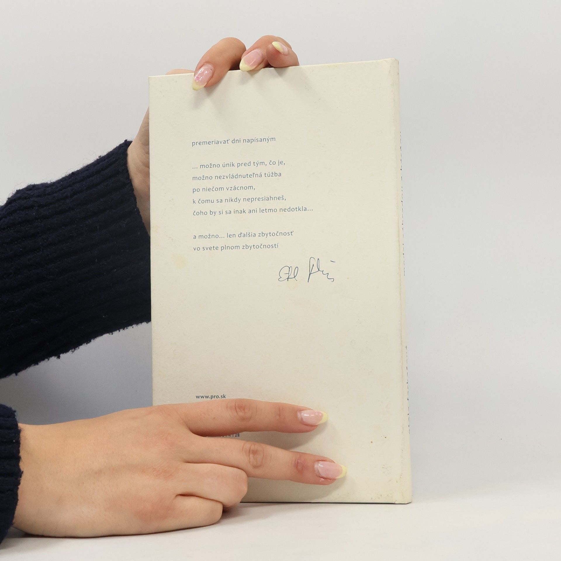 Vo štvrtej samostatnej zbierke veršov prozaičky, poetky, esejistky Etely Farkašovej sú hlavnými témami lyrických textov príroda, jej premeny v podobe konkrétnej záhrady, inšpirácie, ktoré navodzuje, a poézia ako spôsob autorského sebavyjadrenia, ako aj všetko to, čo zapĺňa každodenný priestor medzi nimi. Farkašovej reflexívne texty už tradične výtvarne sprevádzajú krehké a sugestívne ilustrácie Květy Fulierovej.