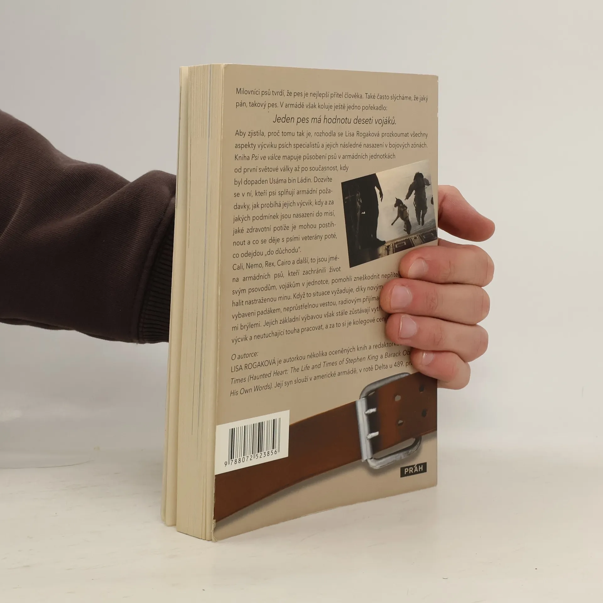 Milovníci psů tvrdí, že pes je nejlepší přítel člověka. Také často slýcháme, že jaký pán, takový pes. V armádě však koluje ještě jedno pořekadlo: Jeden pes má hodnotu deseti vojáků. Aby zjistila, proč tomu tak je, rozhodla se Lisa Rogak prozkoumat všechny aspekty výcviku psích specialistů a jejich následné nasazení v bojových zónách. Kniha Psi ve válce mapuje působení psů v armádních jednotkách od první světové války až po současnost, kdy byl dopaden Usáma bin Ládin. Dozvíte se v ní, kteří psi splňují armádní požadavky, jak probíhá jejich výcvik, kdy a za jakých podmínek jsou nasazeni do misí, jaké zdravotní potíže je mohou postihnout a co se děje s psími veterány poté, co odejdou "do důchodu". Cali, Nemo, Rex, Cairo a další, to jsou jména armádních psů, kteří zachránili život svým psovodům, vojákům v jednotce, pomohli zneškodnit nepřítele nebo odhalit nastraženou minu. Když to situace vyžaduje, díky novým technologiím jsou vybaveni padákem, neprůstřelnou vestou, radiovým přijímačem nebo speciálními brýlemi. Jejich základní výbavou však stále zůstávají vytříbené smysly, tvrdý výcvik a neutuchající touha pracovat, a za to si je kolegové cení nejvíce.