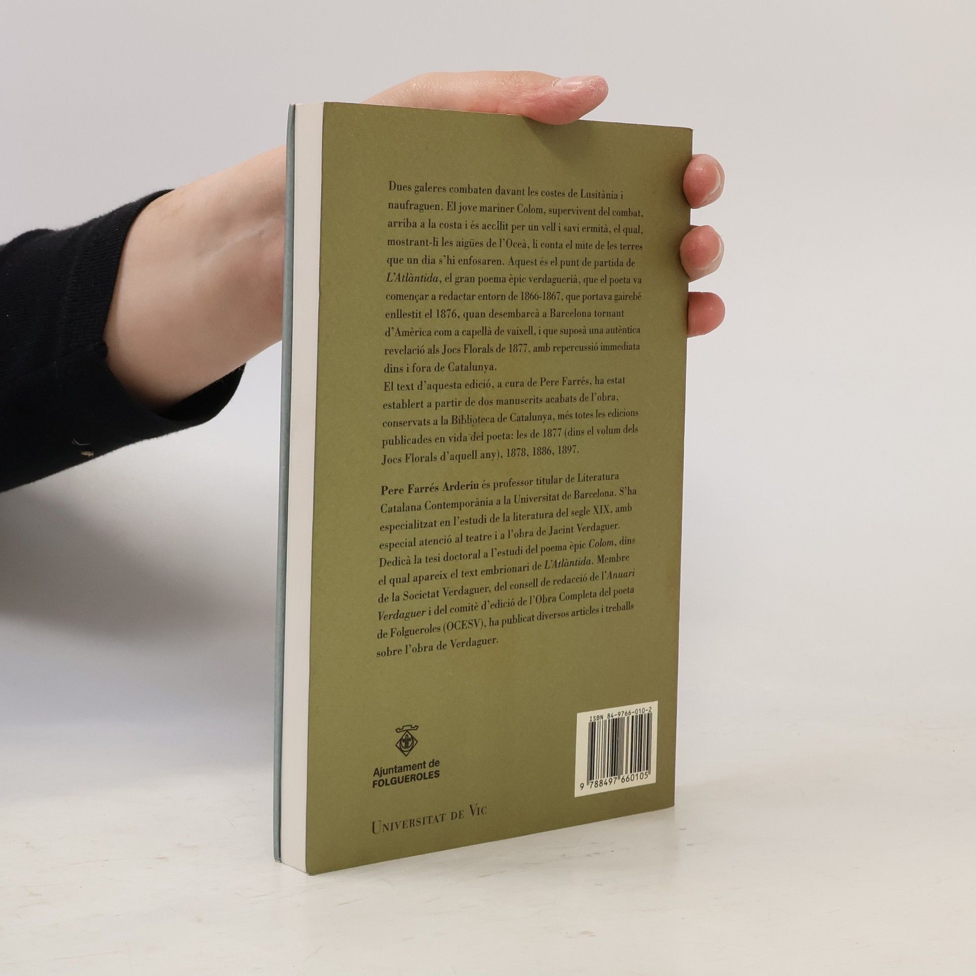 El text d’aquesta edició és establert a partir de dos manuscrits acabats de l’obra, conservats a la Biblioteca de Catalunya, més totes les edicions publicades en vida del poeta: les de 1877 (dins el volum dels Jocs Florals d’aquell any), 1878, 1886, 1897 i, només en poquíssims casos, es té en compte l’edició de 1902, que Verdaguer ja no controlà. El volum consta d’un estudi introductori, el text del poema, anotat, un aparat de variants que té en compte els testimonis esmentats, i un apèndix que reprodueix manuscrits i documents d’interès per conèixer el procés de redacció de L’Atlàntida. L’es-tu-di introductori s’ocupa de la gènesi i el procés de creació del poema; asse-nyala les fonts lite-rà-ries, mitològiques, històriques i geogràfiques; dóna notícies sobre la recepció immediata de l’obra; i conté notes sobre llengua, mètrica i estil.