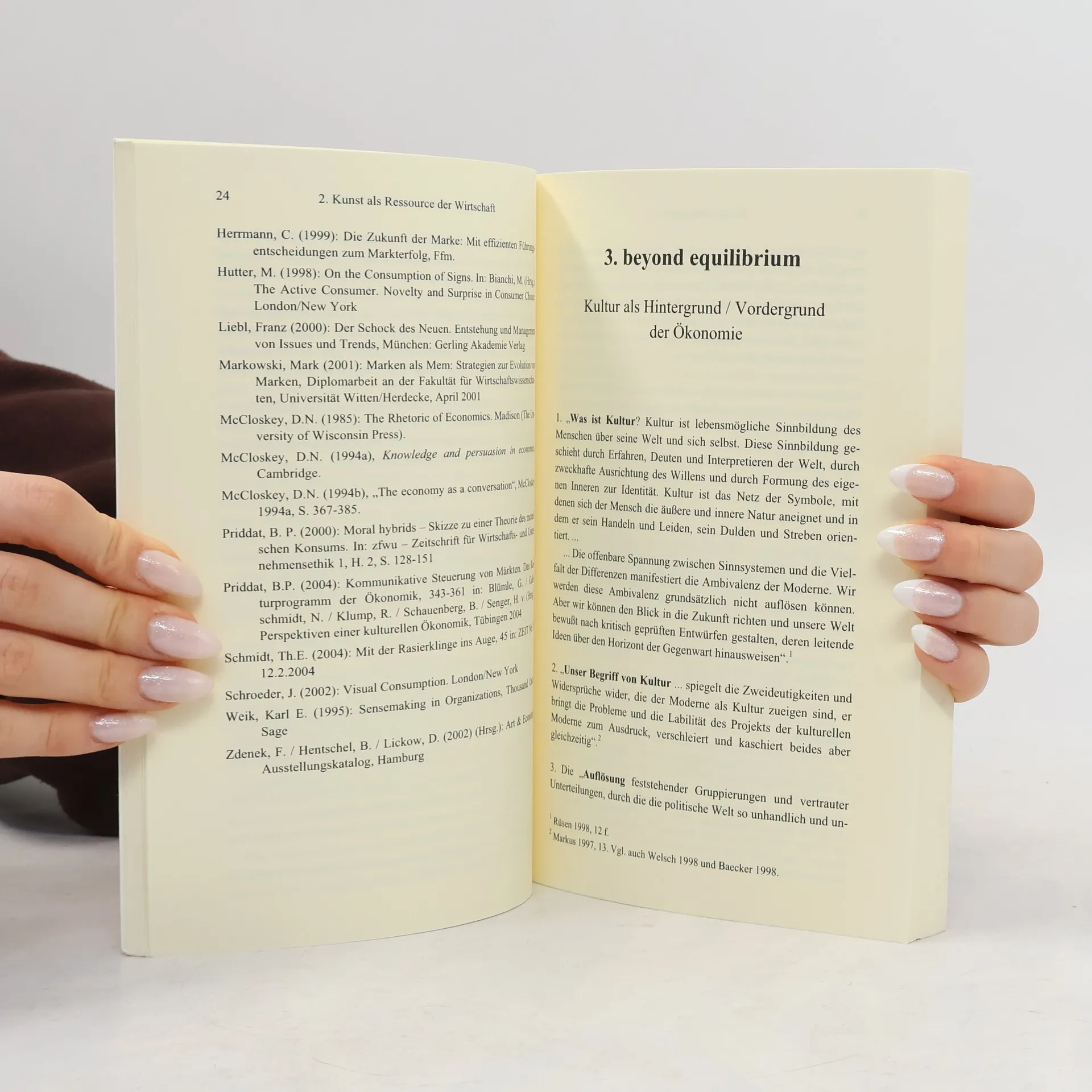 Natürlich vermuten wir, dass Kreativität (in der Kunst) mit der Ökonomie insoweit etwas zu tun hat, als unternehmerisches Handeln nach ähnlichen Mustern verlaufen kann. Von den Innovationen ganz abgesehen. Doch über die Vermutung hinaus sind wir systematischen Gründen für die Analogie kaum begegnet. Die ersten drei Abschnitte dieses Buches sind diesem Thema, aus unterschiedlichen Perspektiven, gewidmet. Insbesondere der dritte Aufsatz geht dem Interface zwischen Kunst und Ökonomie nach. Der zweite stellt eine bestimmte Relation zwischen Kultur und Ökonomie her. Der erste Aufsatz widmet sich dem Thema ‚Kunst als Ressource der Wirtschaft‘. Dabei wird immer mit erörtert, welcher Art Kunst und Kultur sind, um einer Analogie zupass zu kommen. Der vierte Aufsatz widmet sich einer besonderen Form des Theaters: Theater als Netzwerk und Markt. Hier wird die Ökonomie vom Theater selbst als Reflektionsgestalt eingebracht. Der fünfte und letzte Aufsatz behandelt Beethoven als Händler seiner eigenen Kompositionen: ein Apercu zum Verhältnis Kunst, Genie und Markt zu Beginn des 19. Jahrhunderts. Alle Aufsätze behandeln nicht die Ökonomisierung der Kunst, sondern die Interferenzen zwischen Kunst, Kultur und Ökonomie. Es geht nicht um die Arealisierung des Jeweiligen, sondern um wechselseitige Imputation. Das zu zeigen scheint mir fruchtbarer zu sein.